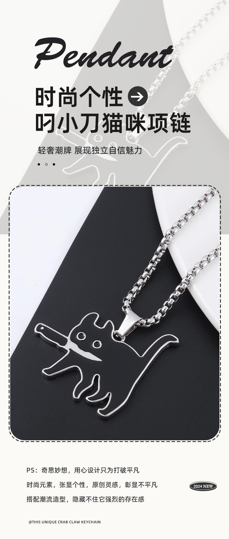 Nuevo collar con colgante de gato y cuchillo de estilo japonés y coreano con cadena de clavícula de estilo hip hop, estilo nicho creativo y distintivo.