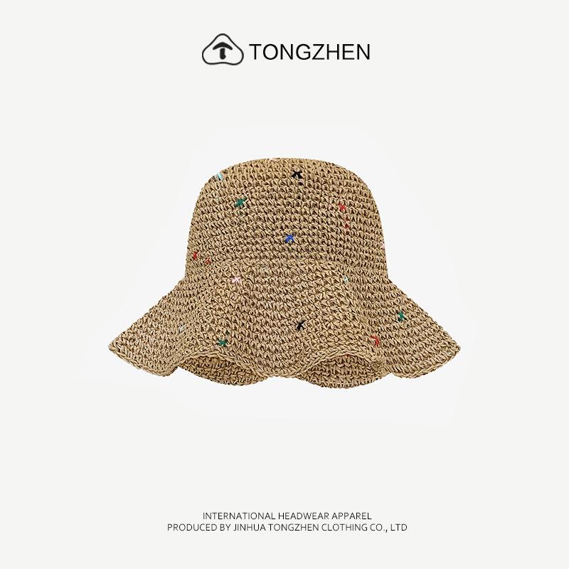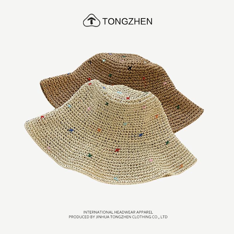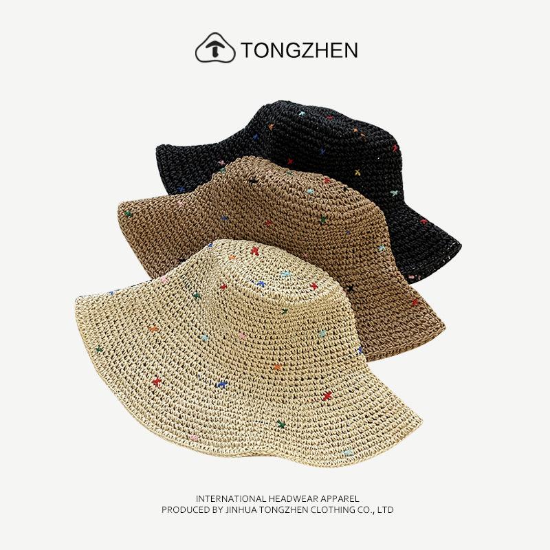 Sombrero de paja de ala ancha estilo coreano nuevo color parasol sombrero de paja para salidas de vacaciones combina con todo paja protector solar moda sombrero de playa