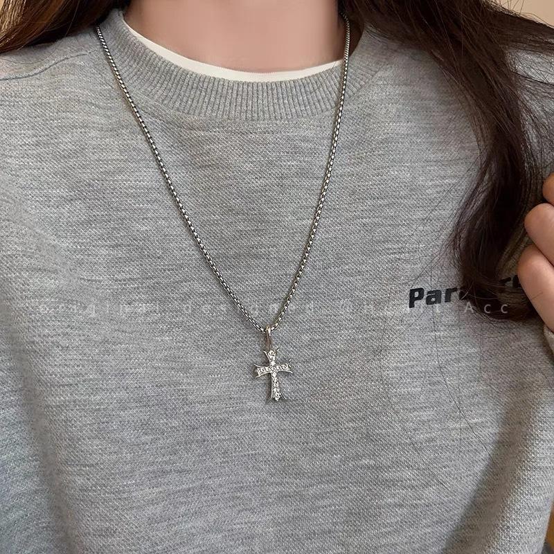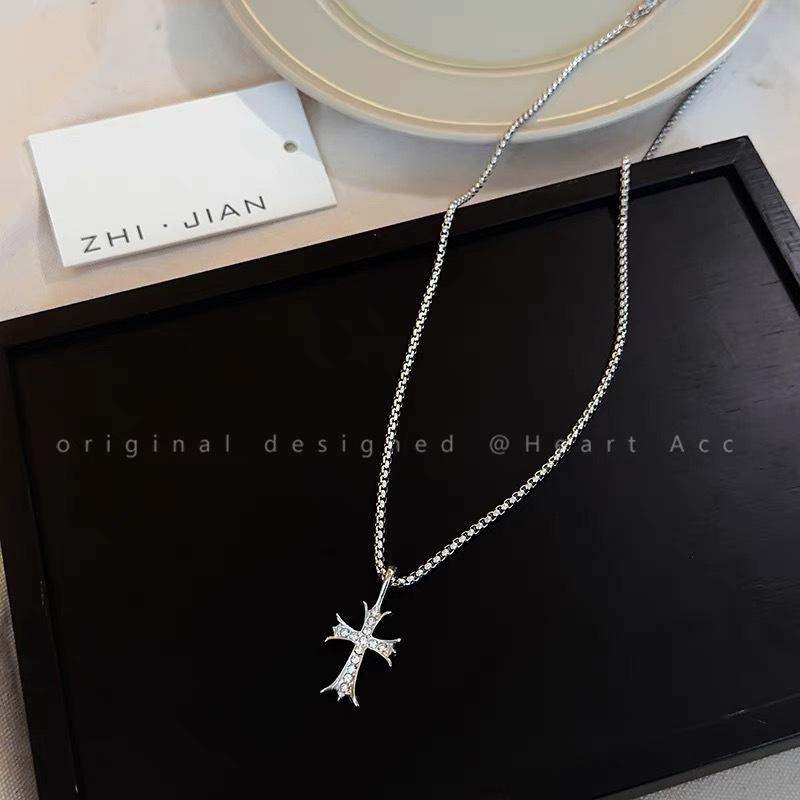 Collar cruzado con micro incrustaciones hip hop para mujer, diseño de nicho, acero de titanio que no se desvanece, cadena suéter callejera, cadena suéter de internet