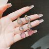 Pendientes de circonita rosa doble, bonitos y elegantes, con diseño de nicho para mujer, de alta calidad.