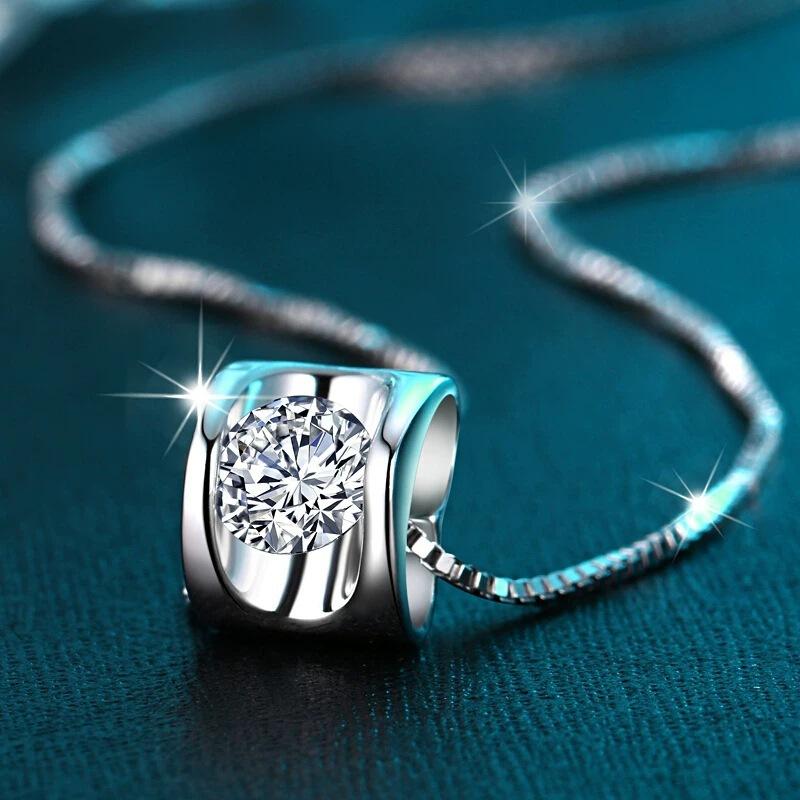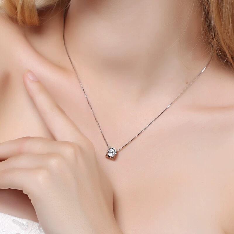 | Collar cuadrado de diamantes para mujer, cadena de clavícula con baño de hadas, colgante cuadrado de diamantes en plata de ley S925, simple y elegante, tendencia de temperamento de celebridades de Internet. |