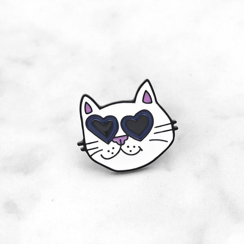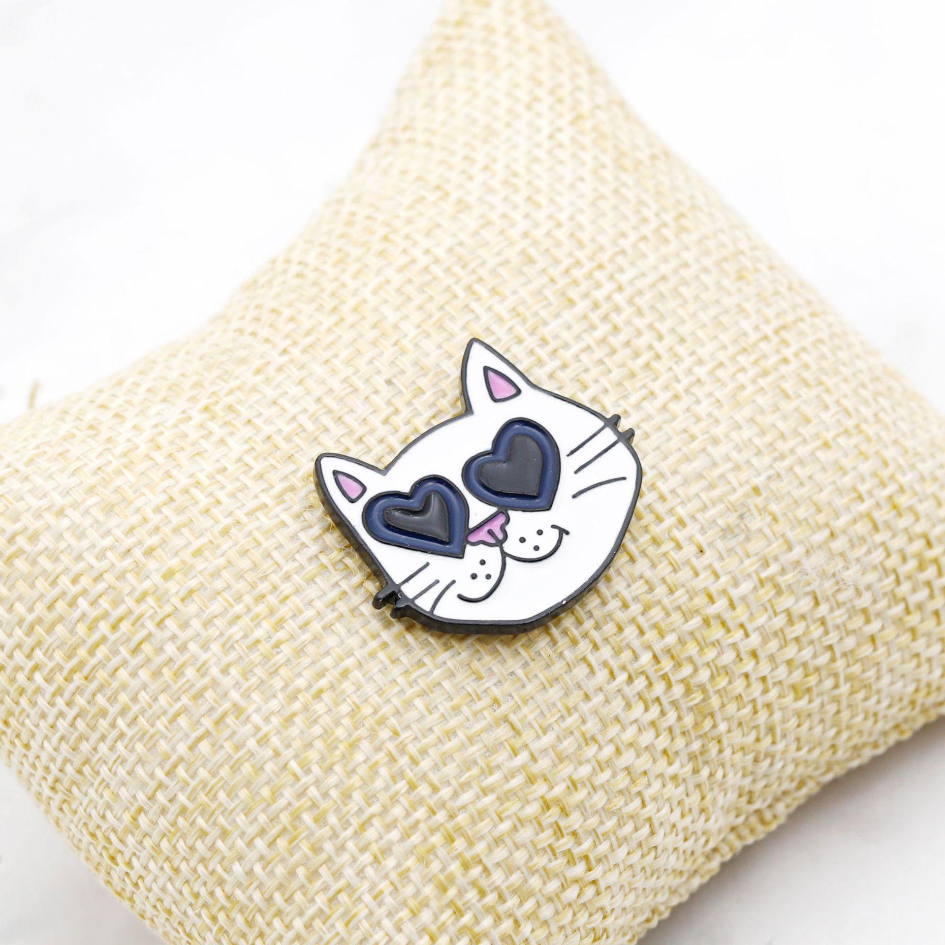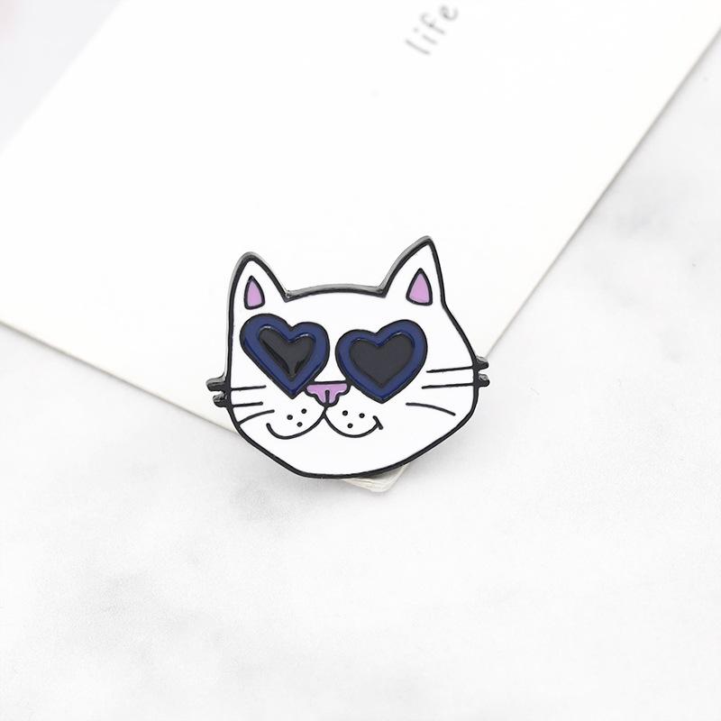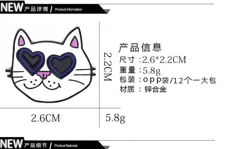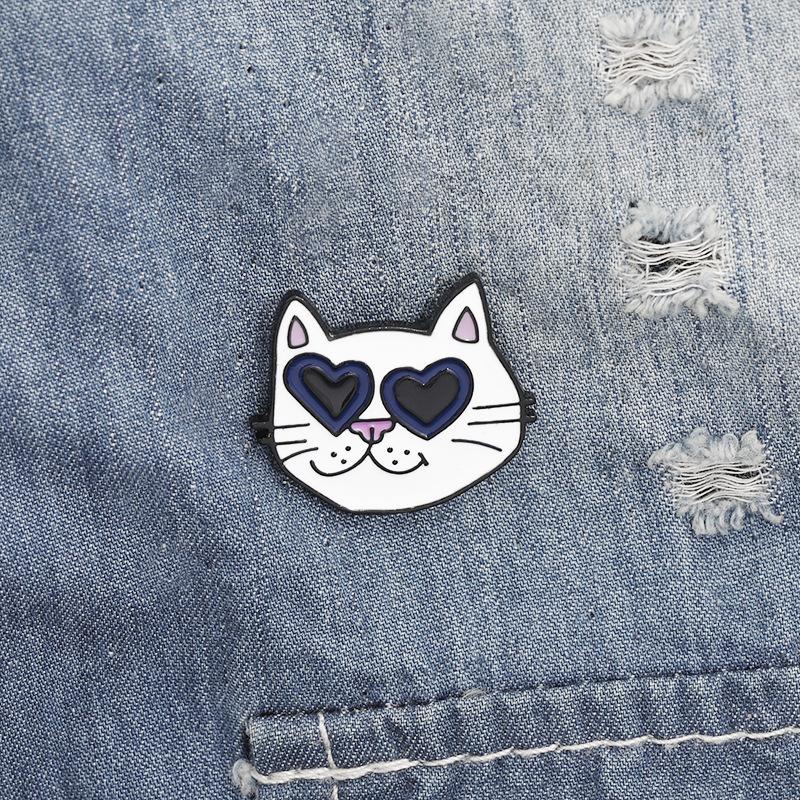 Moda Europea y Americana Accesorios Más Vendidos Broche Pin Gato de Dibujos Animados Elegante con Gafas de Sol Insignia Animal Gato