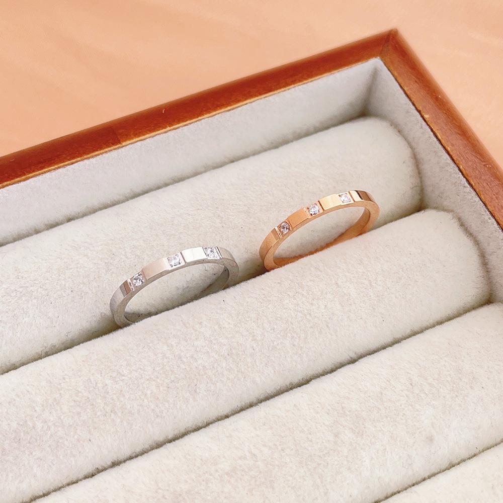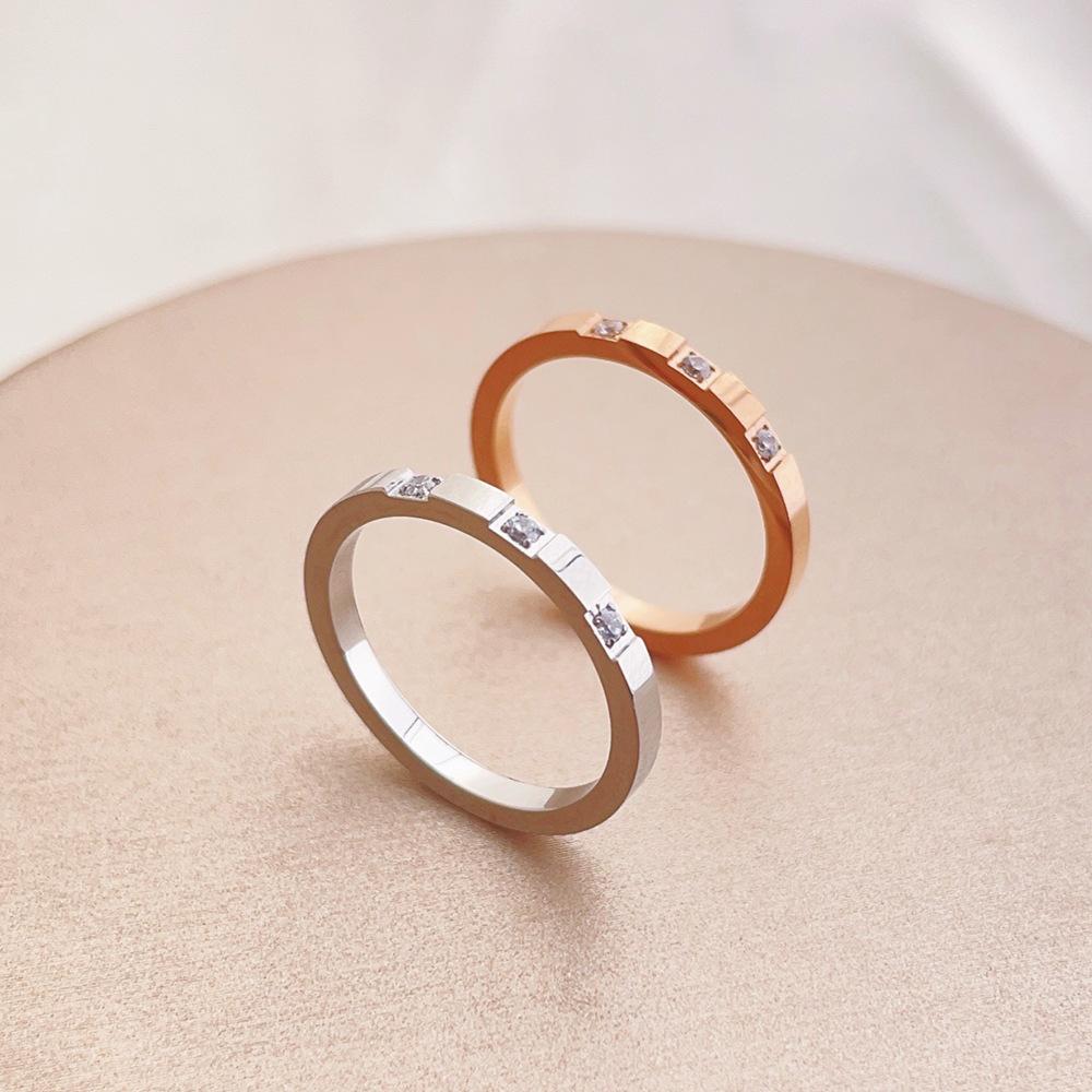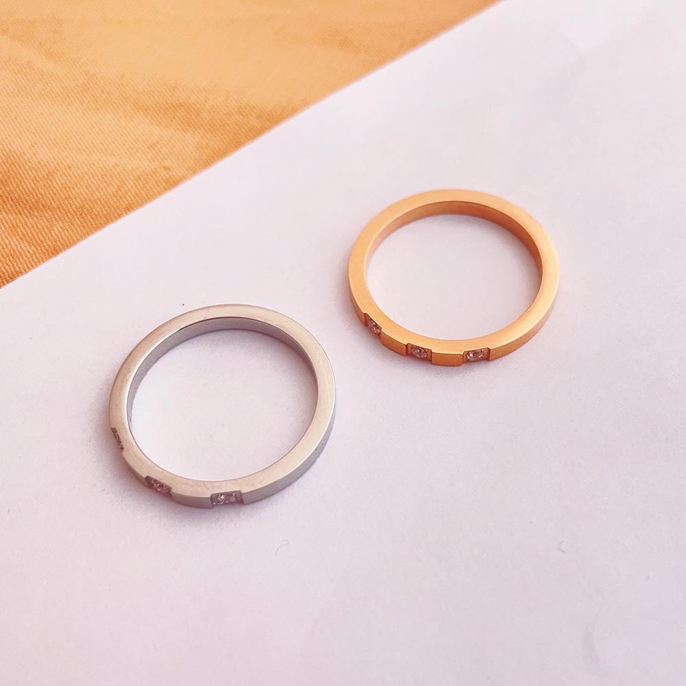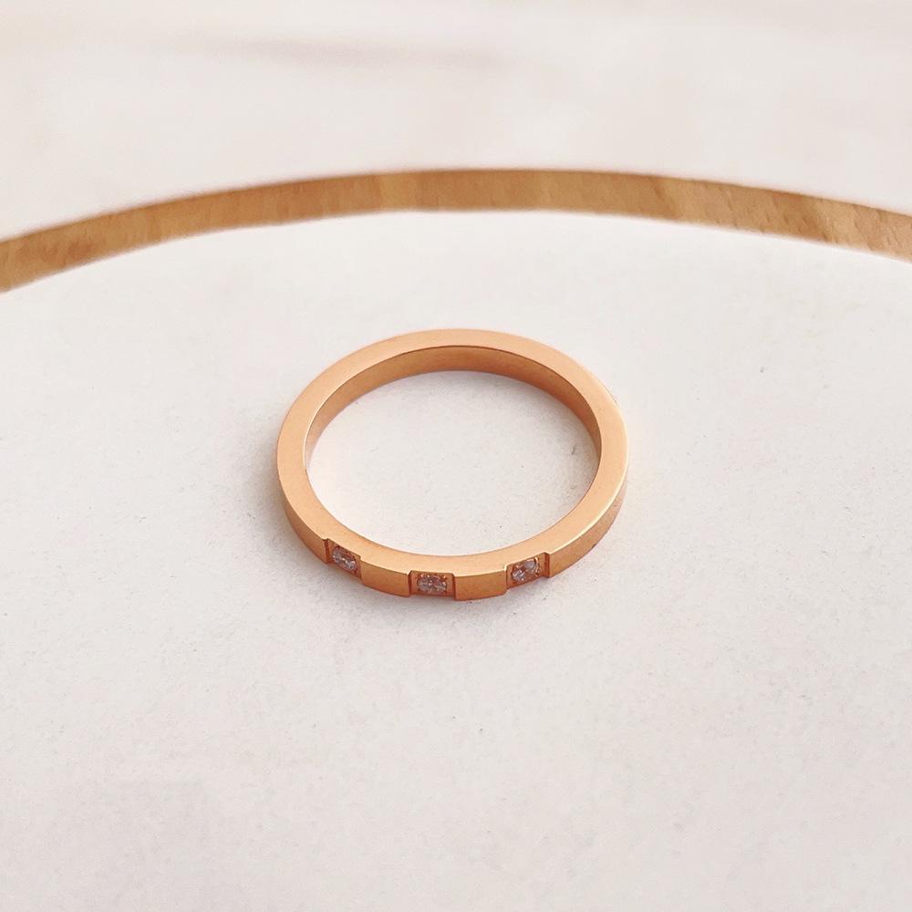 Three-diamond ring with rose gold J22, Three-diamond ring in steel J23
