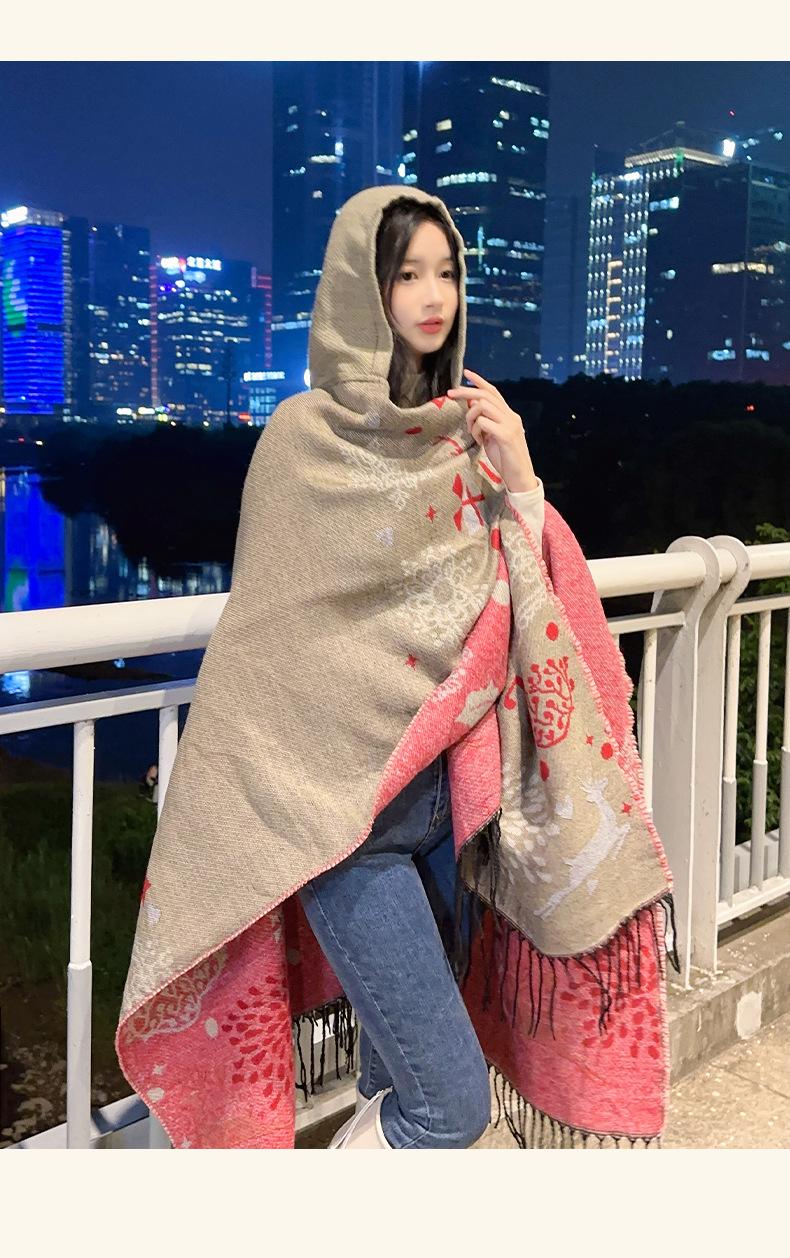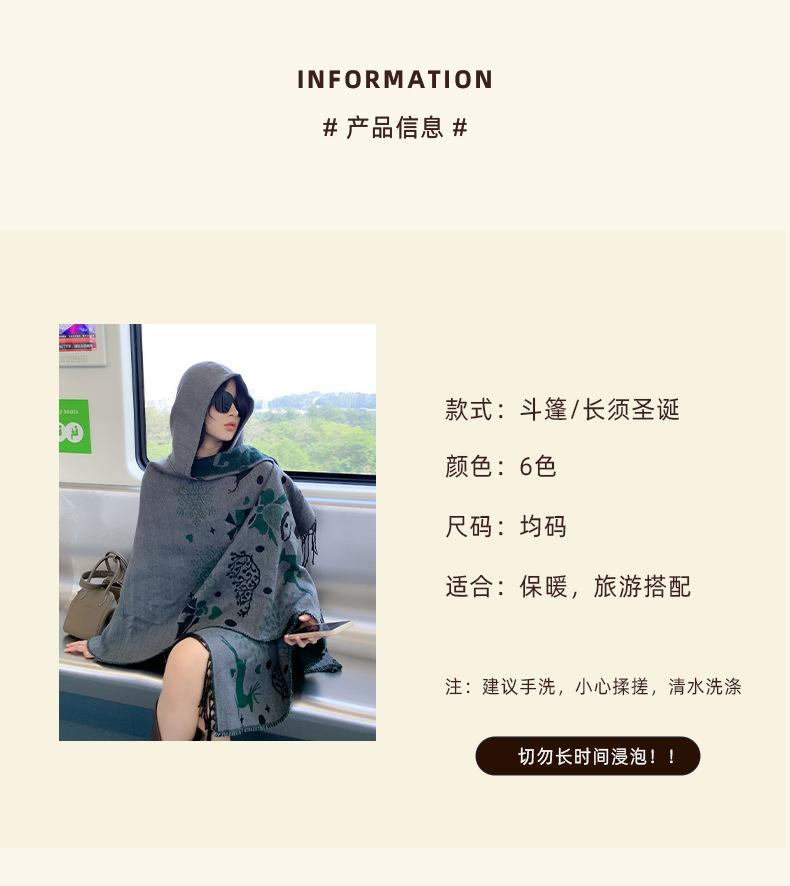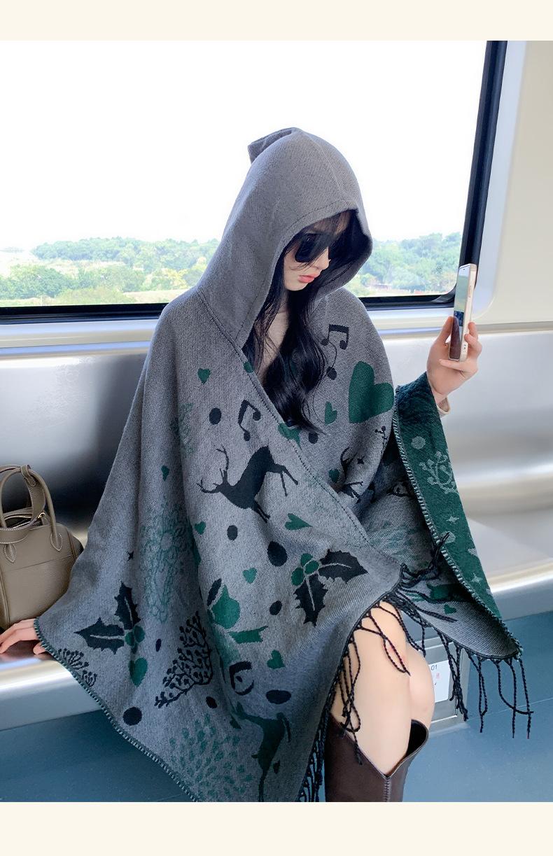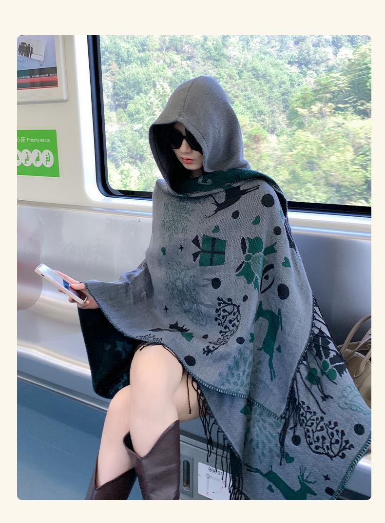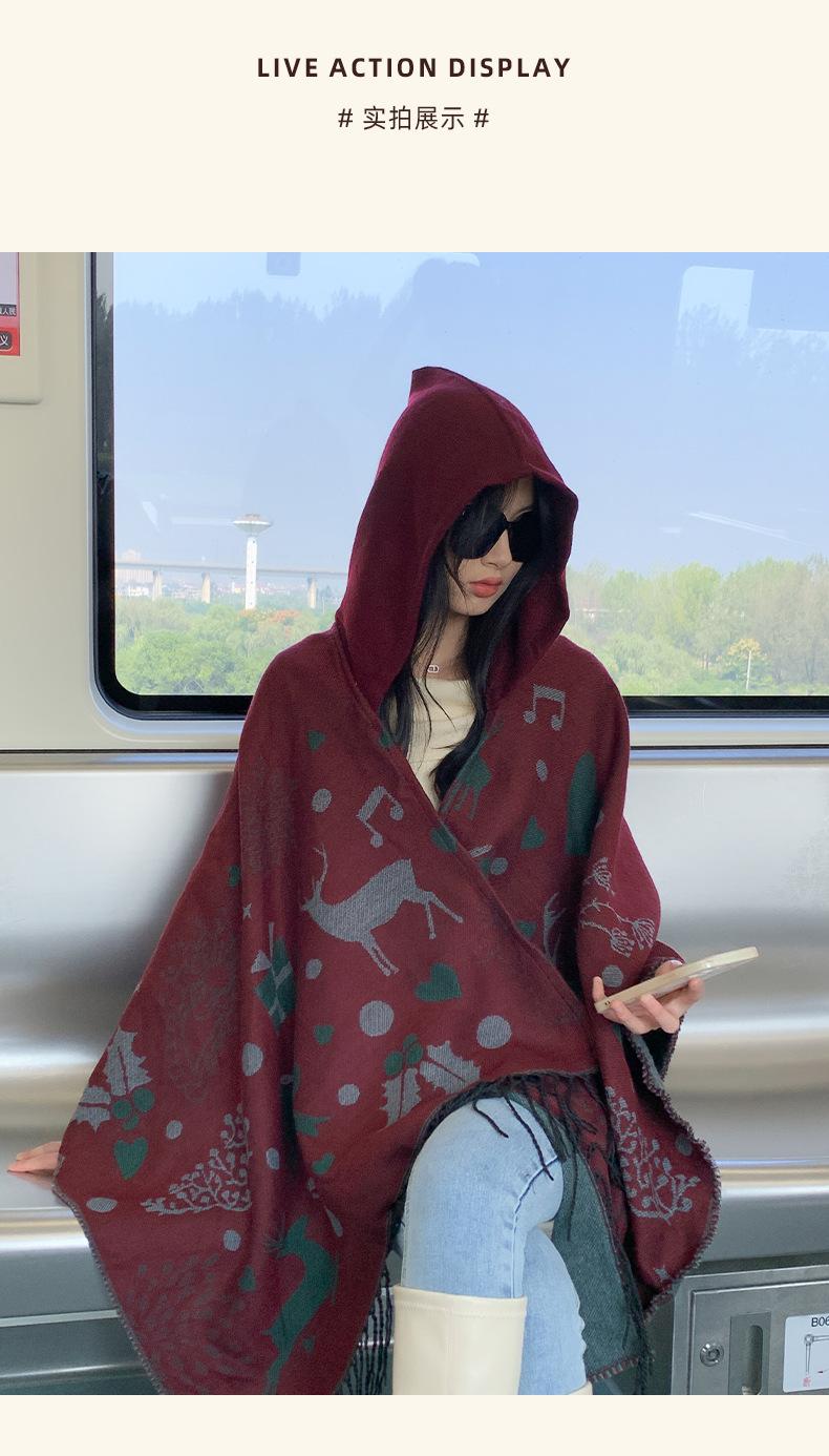 Bufanda con capucha de invierno, a prueba de frío, cómoda, cálida, personalizada, con estampado de alce navideño, para exteriores, informal, combinable, capa de barba larga