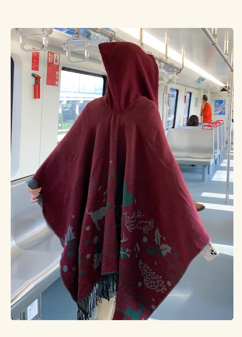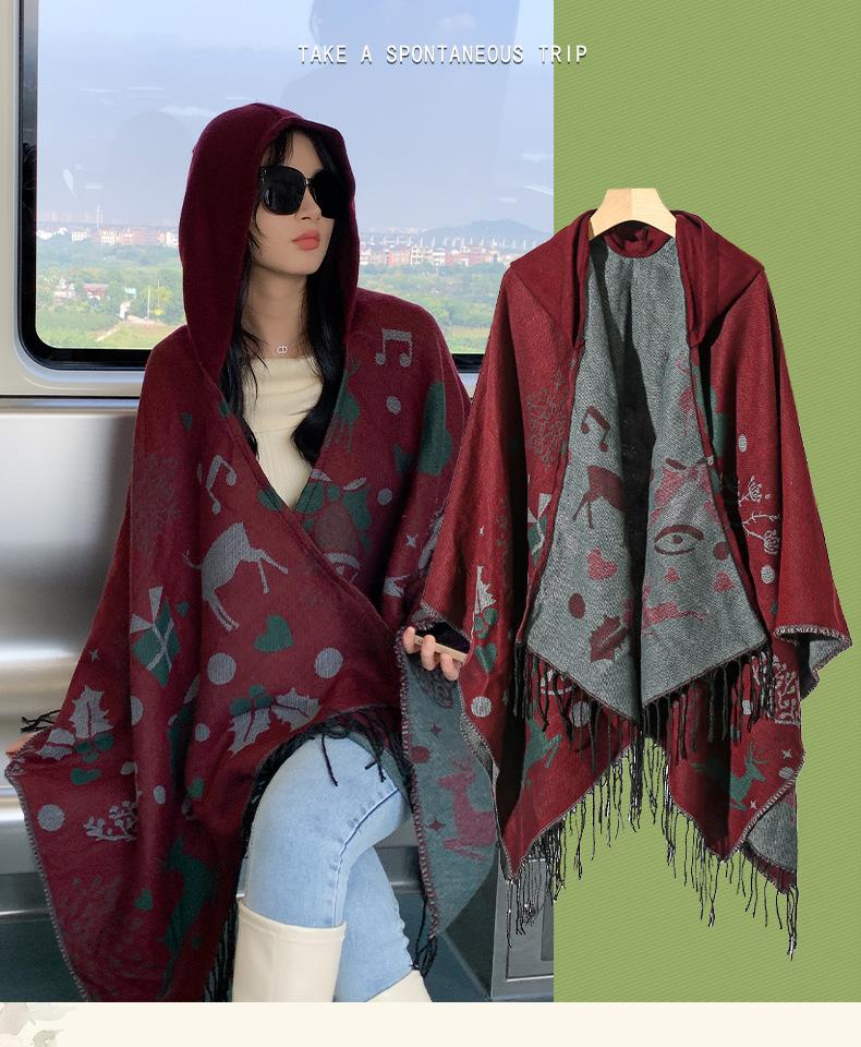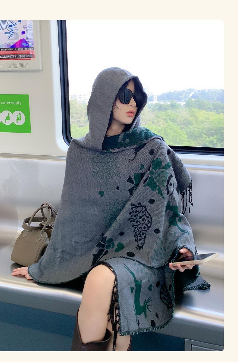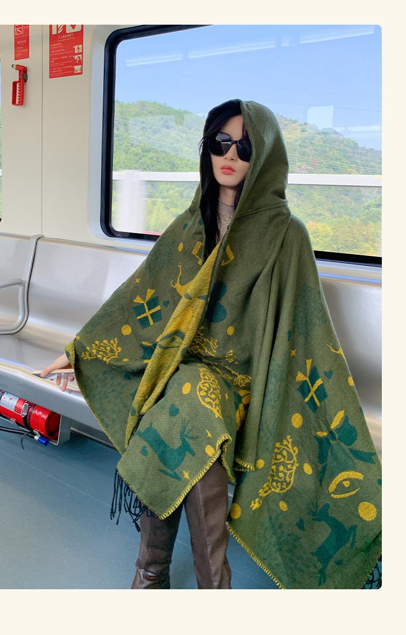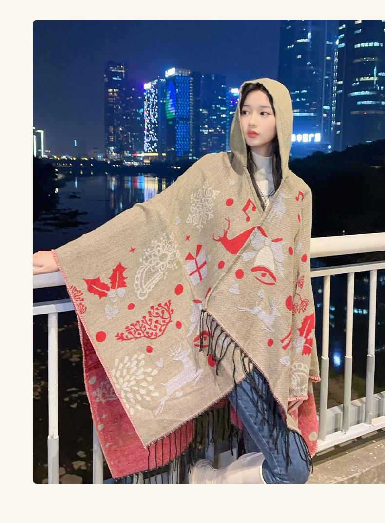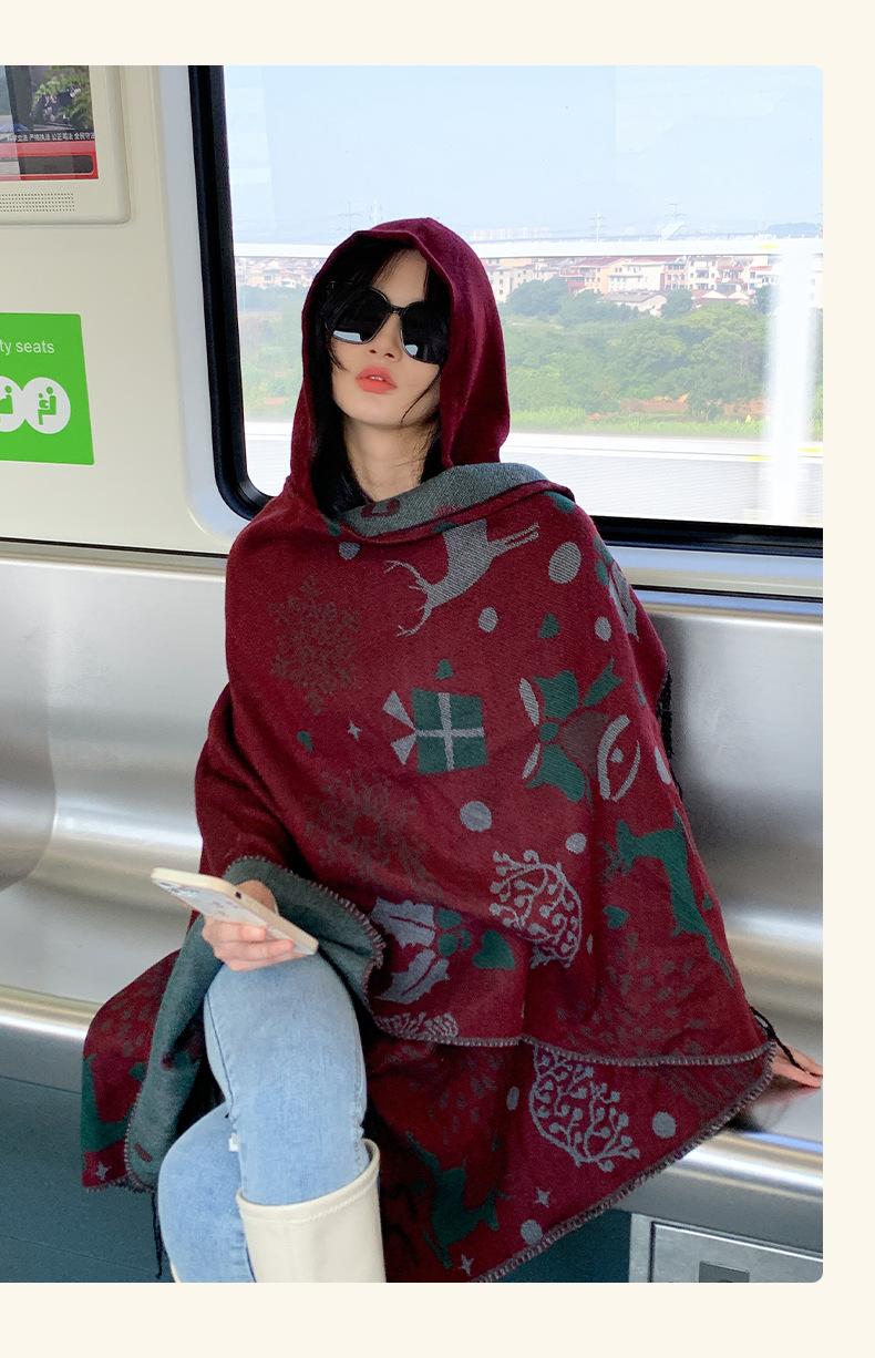 Bufanda con capucha de invierno, a prueba de frío, cómoda, cálida, personalizada, con estampado de alce navideño, para exteriores, informal, combinable, capa de barba larga