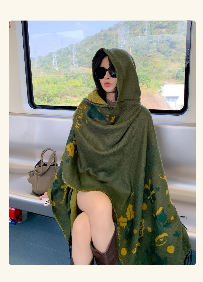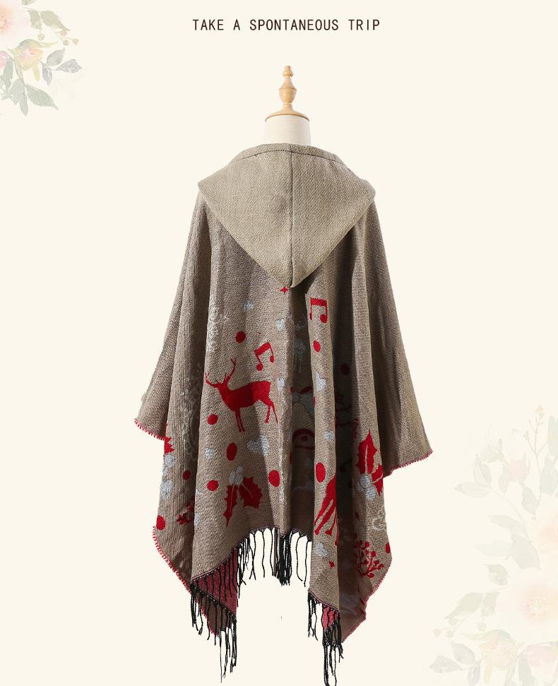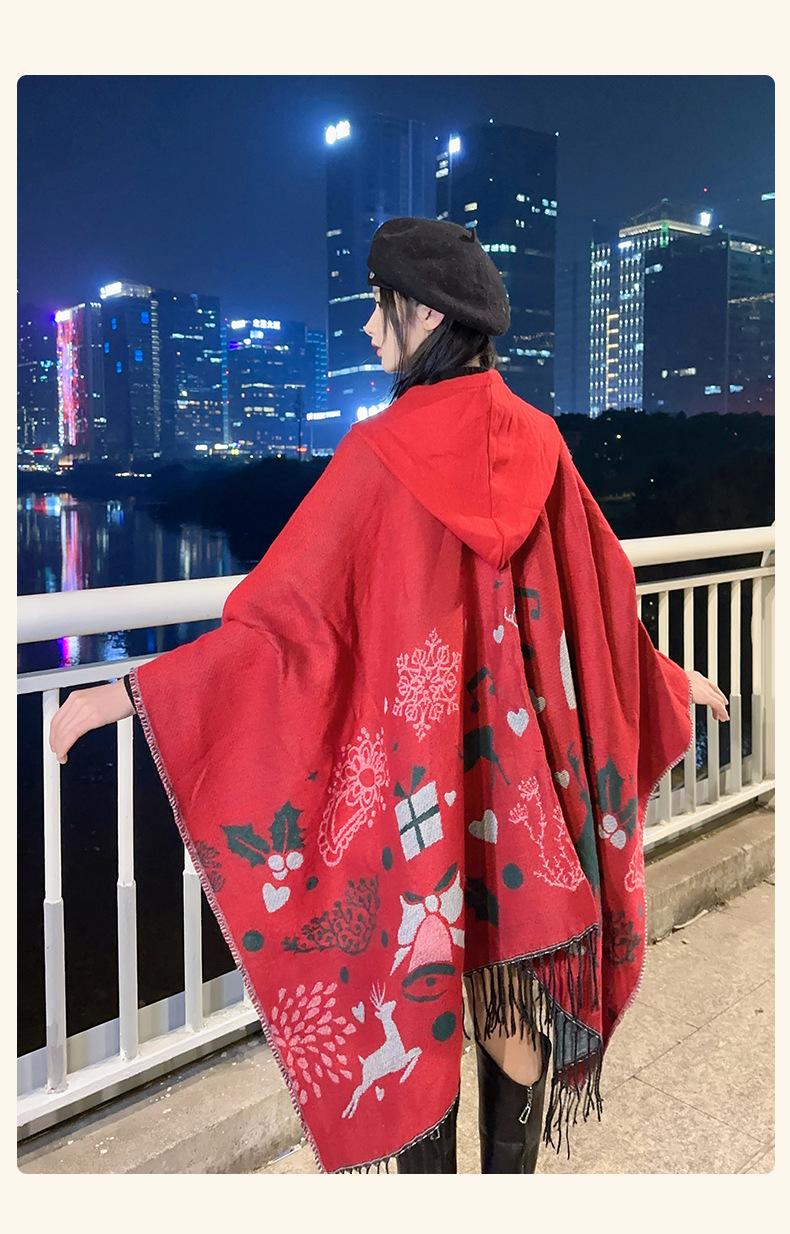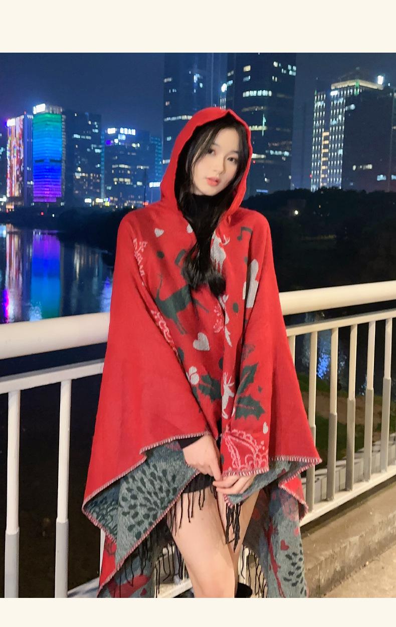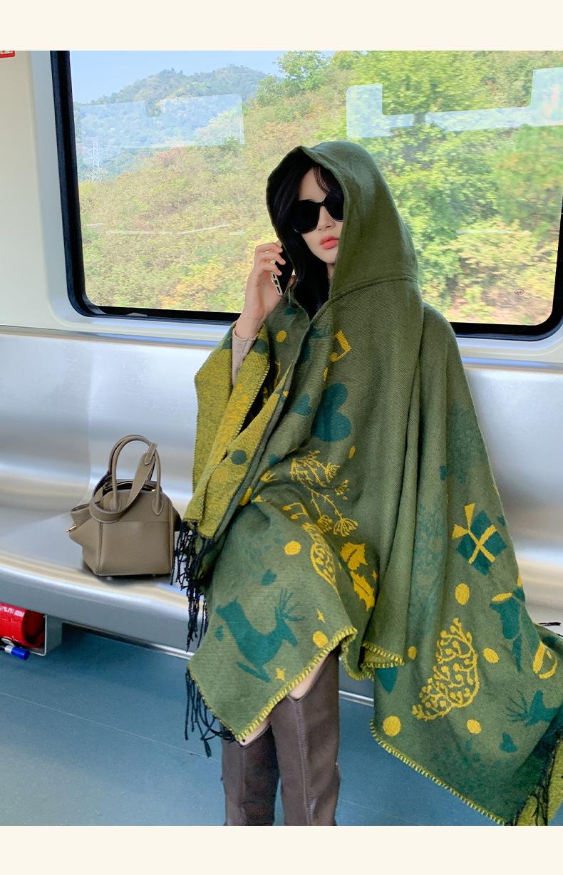 Bufanda con capucha de invierno, a prueba de frío, cómoda, cálida, personalizada, con estampado de alce navideño, para exteriores, informal, combinable, capa de barba larga