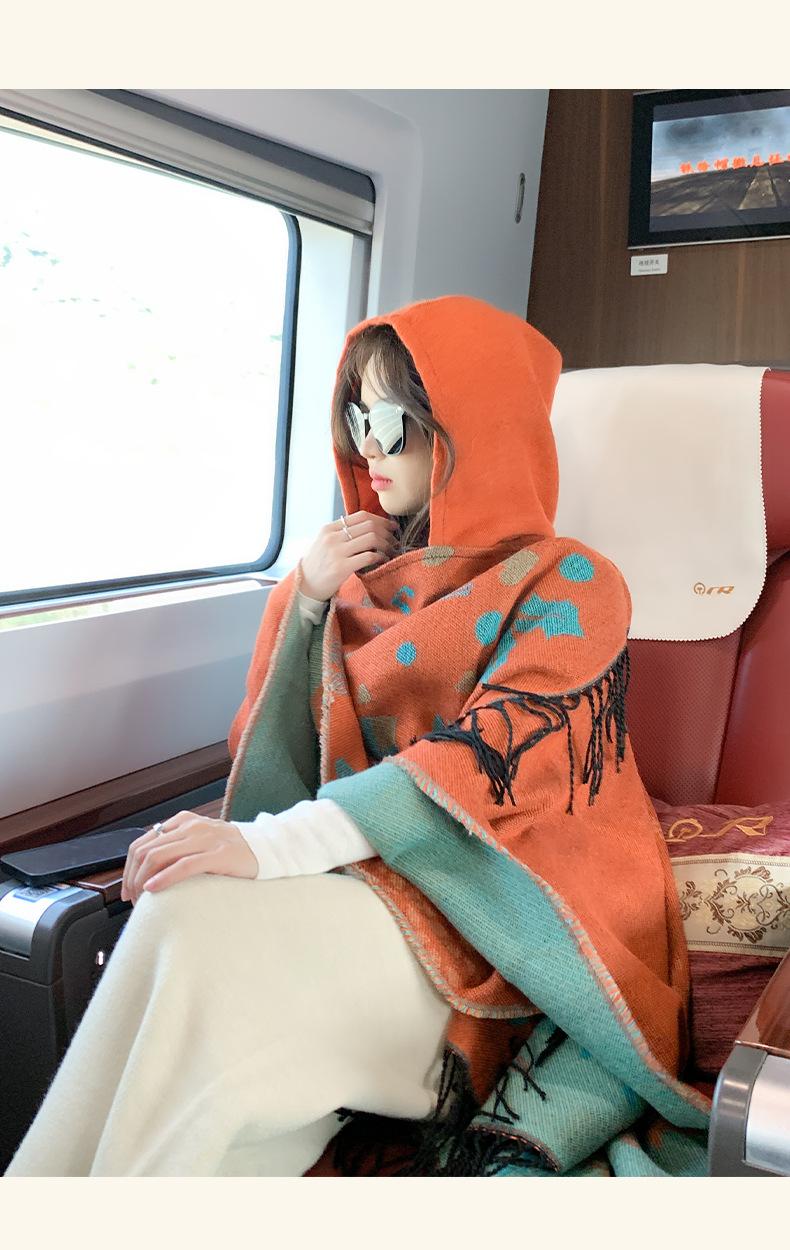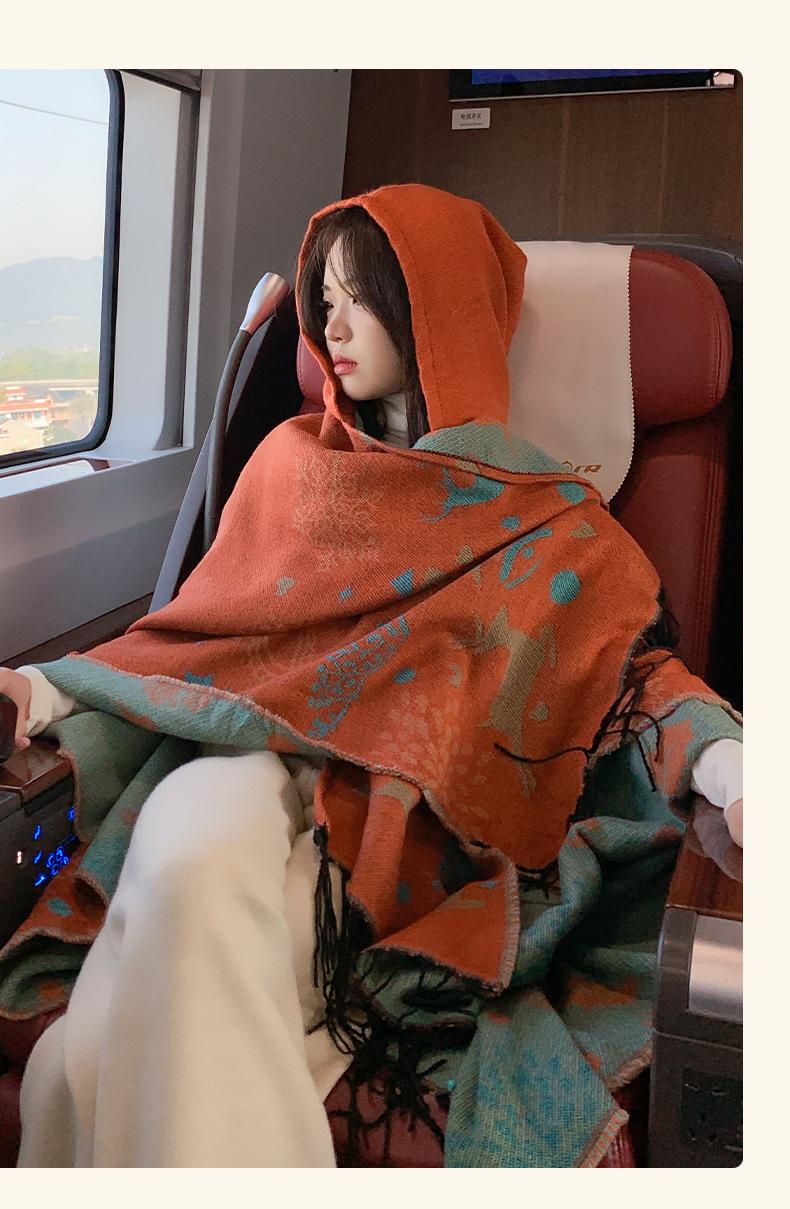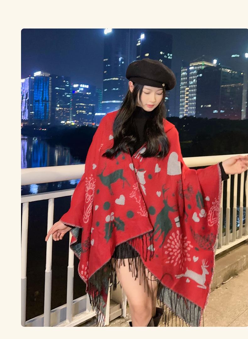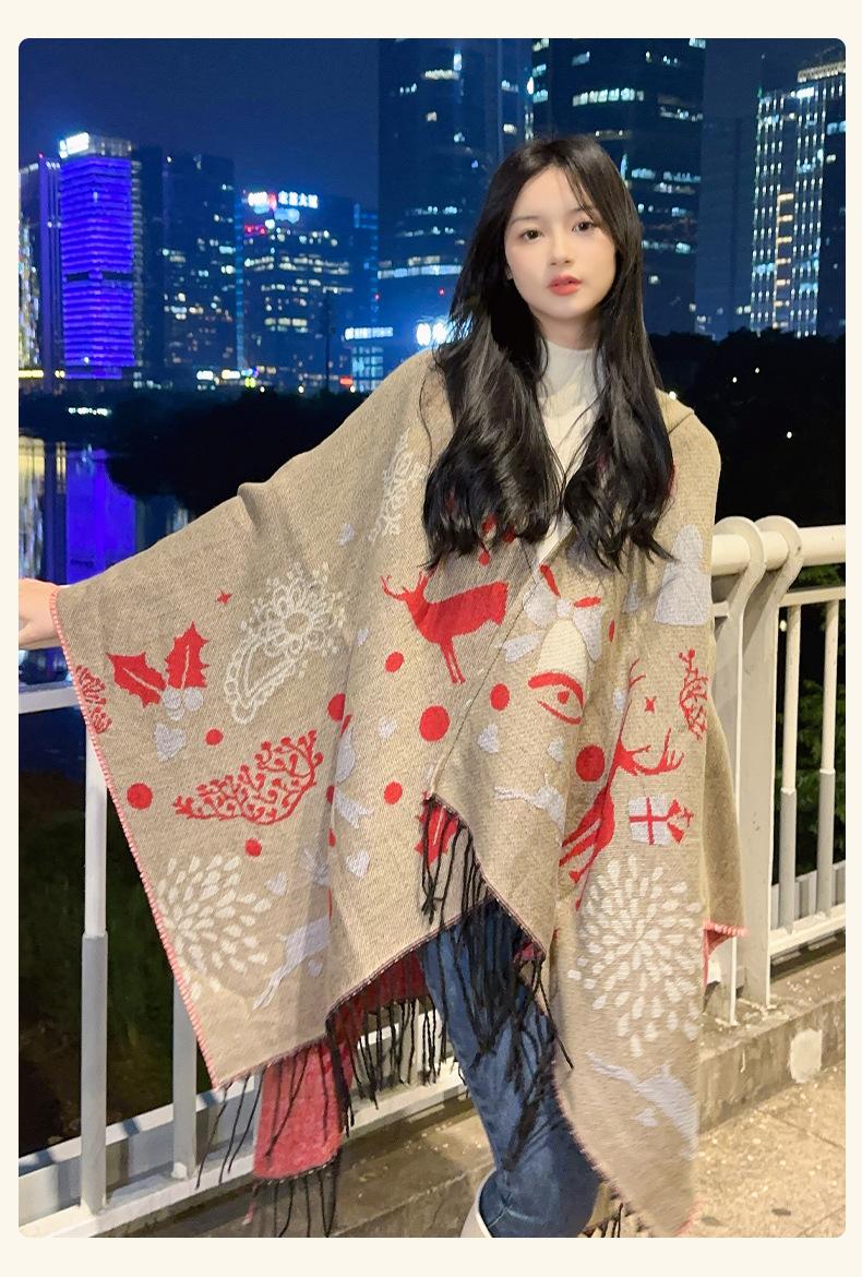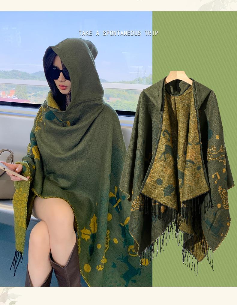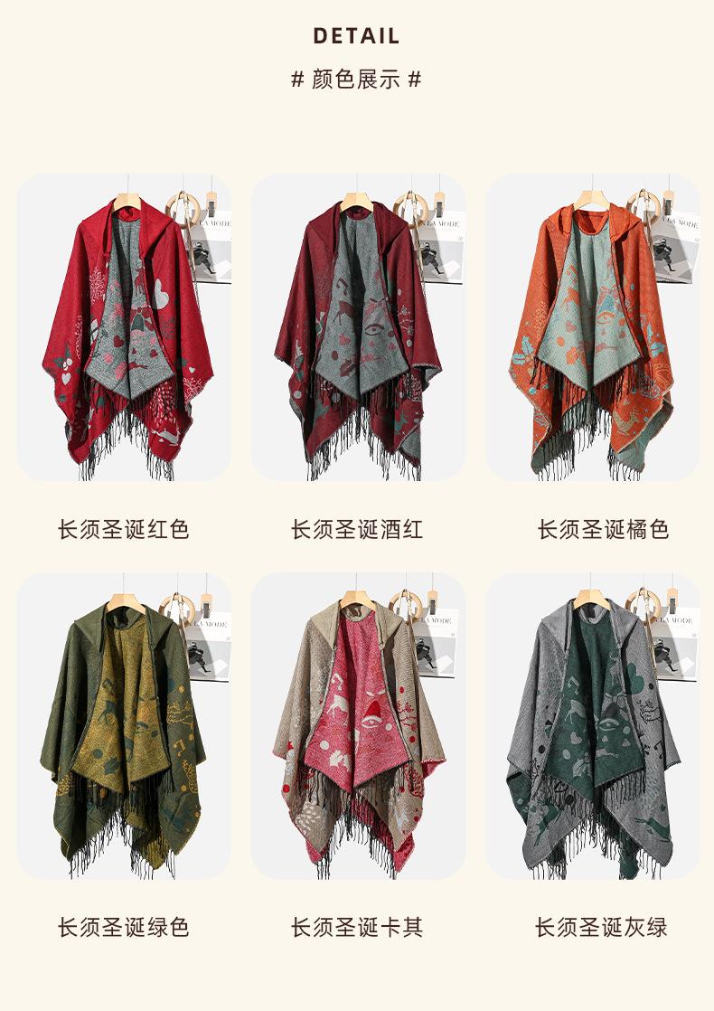 Bufanda con capucha de invierno, a prueba de frío, cómoda, cálida, personalizada, con estampado de alce navideño, para exteriores, informal, combinable, capa de barba larga