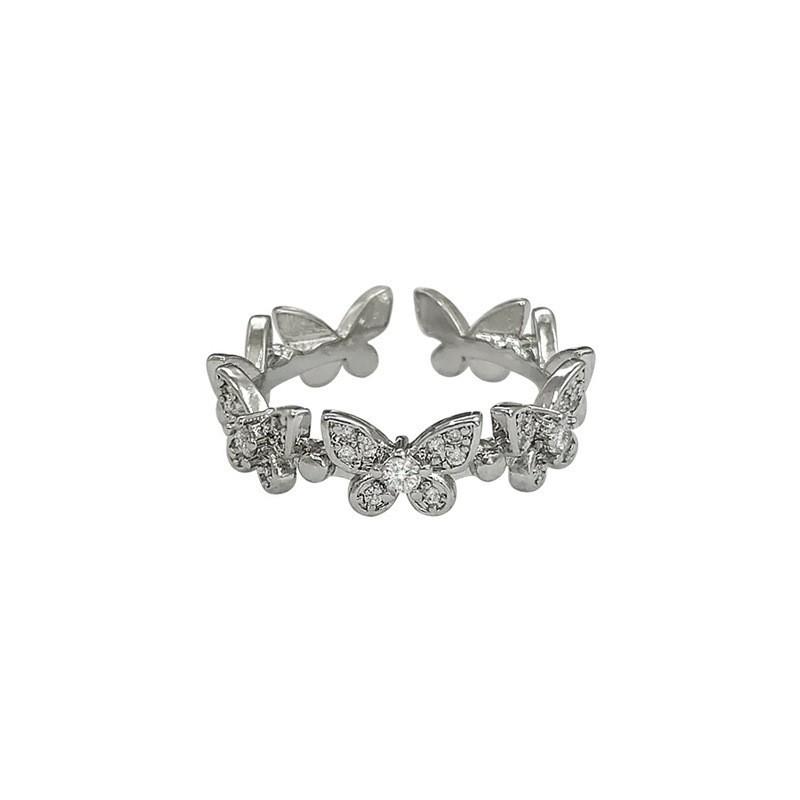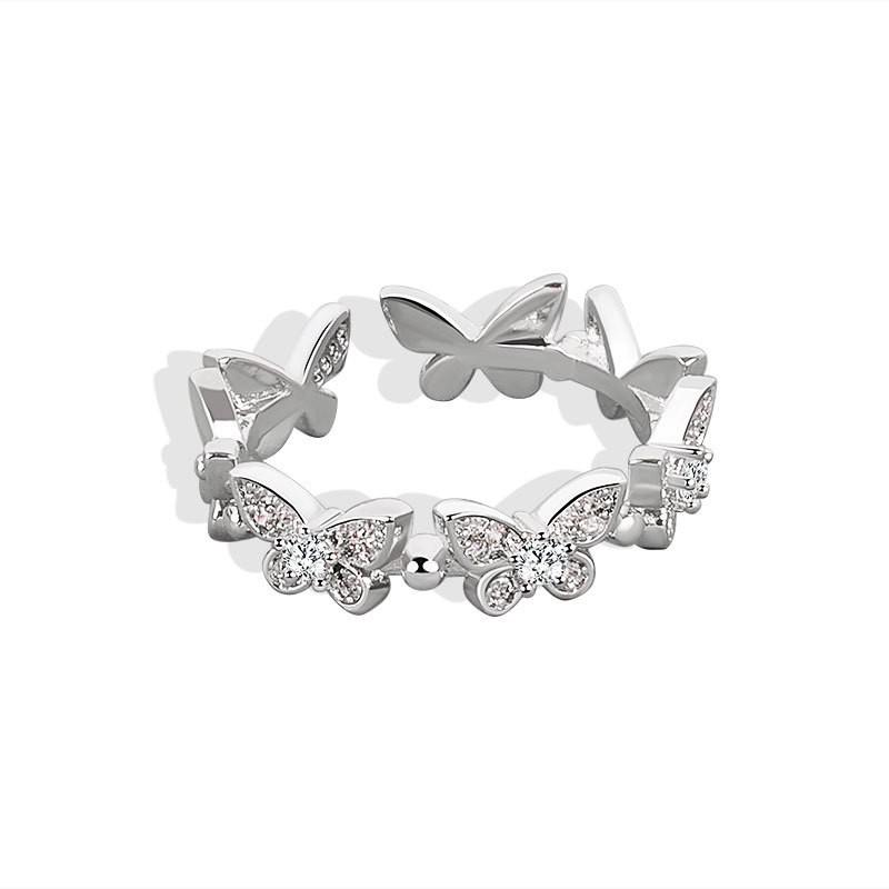 Anillo de Mariposa de Diamantes Plateados Estilo Similar de Xiaohongshu para Mujer, Diseño Original de Nicho, Super Brillante, Estilo Suave y Frío Anillo Abierto