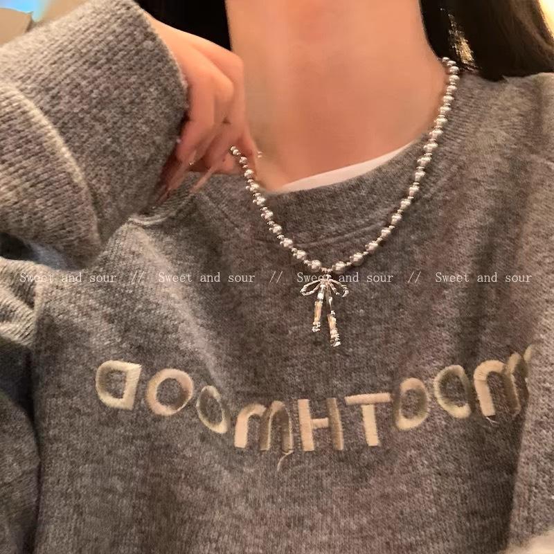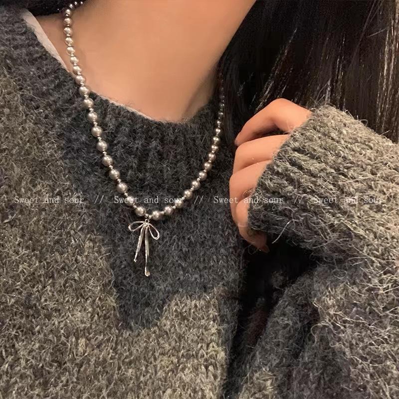 Collar de perlas con lazo, ligero, lujoso, con diseño de nicho, elegante y elegante cadena para clavícula (2024).