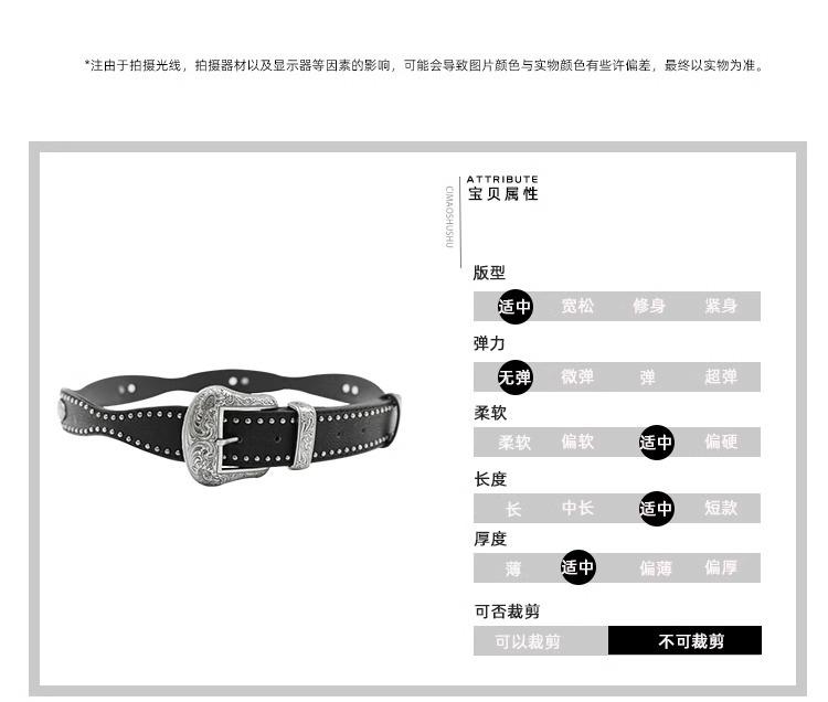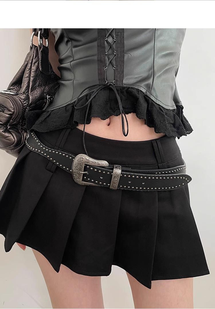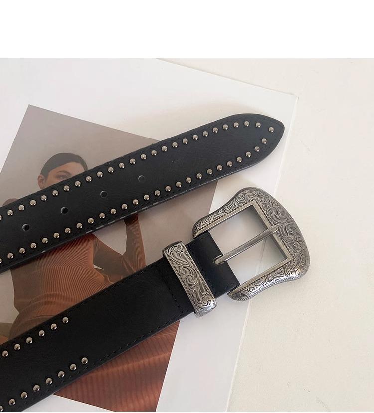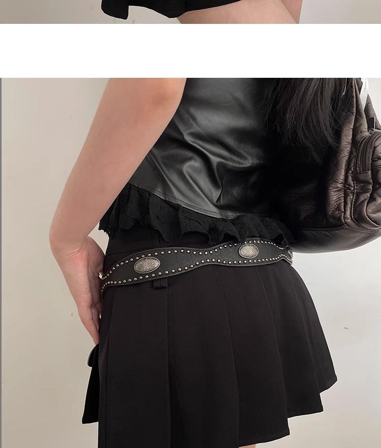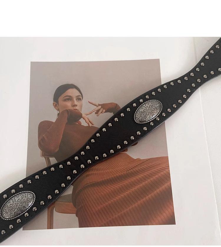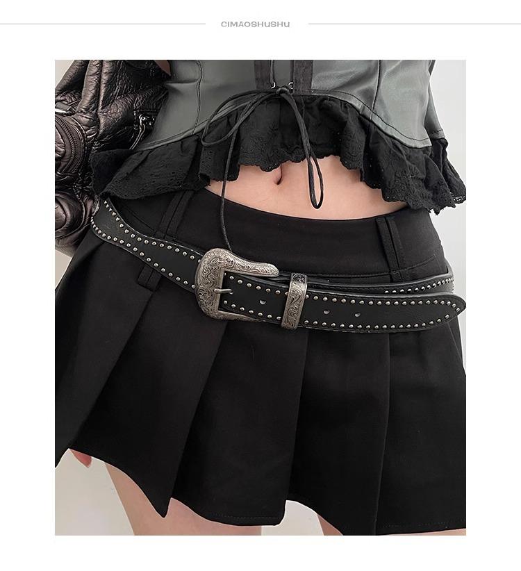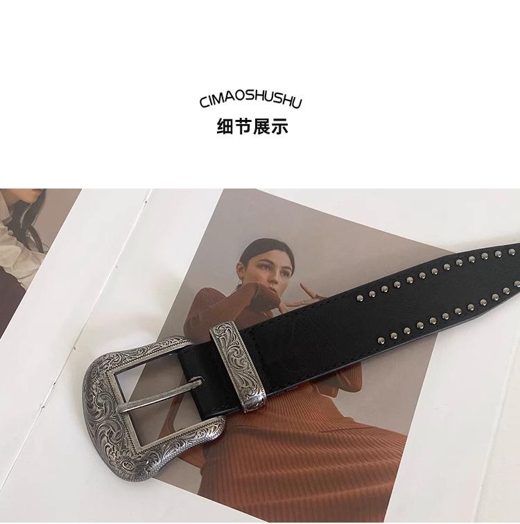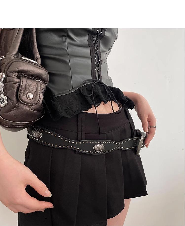 Cinturón retro americano para mujer, estilo punk con remaches, combina con todo, vaqueros con personalidad, Y2K, negro, 2024