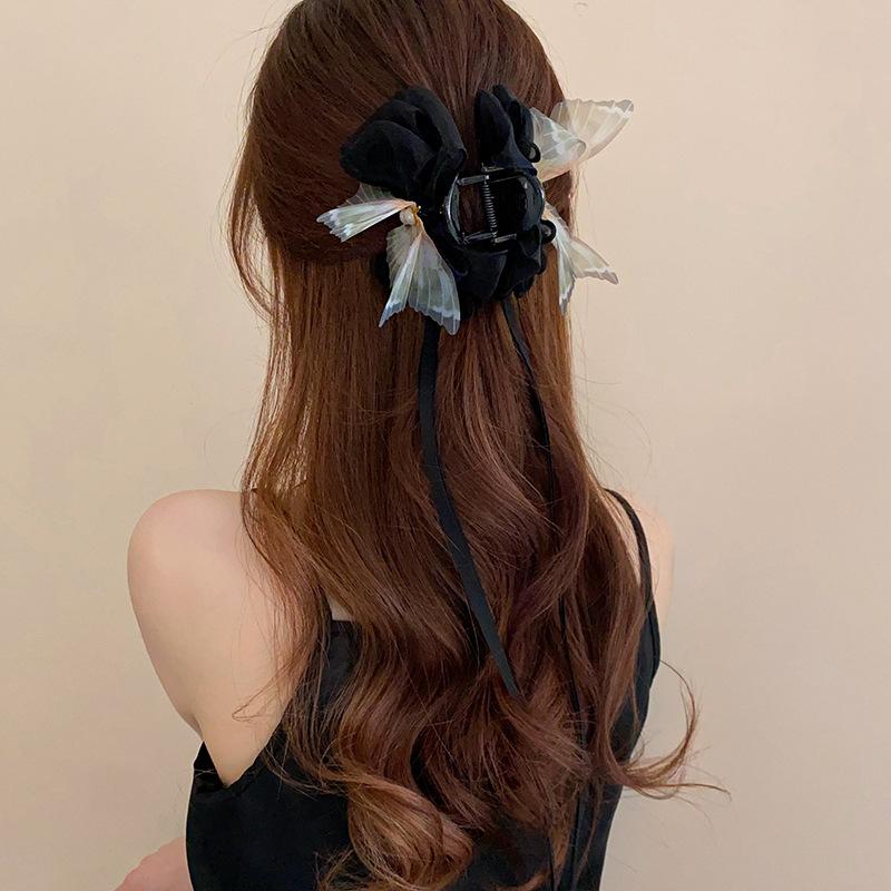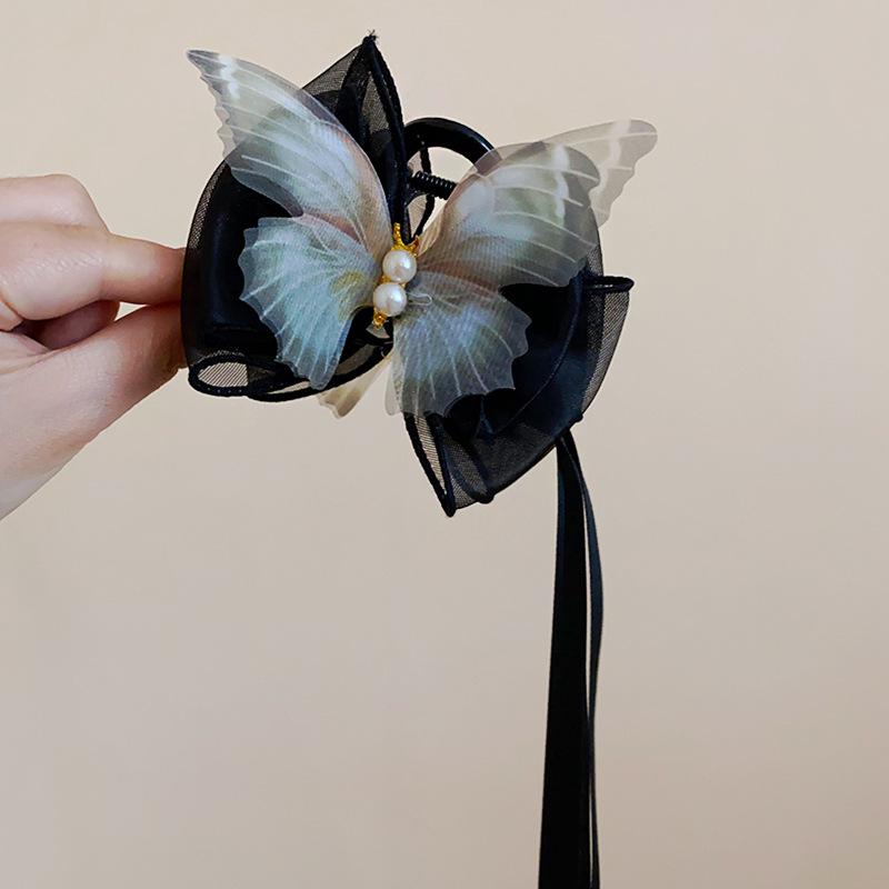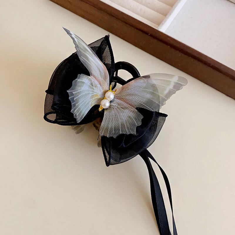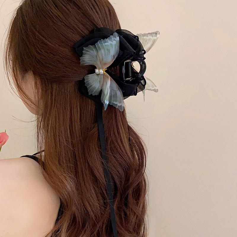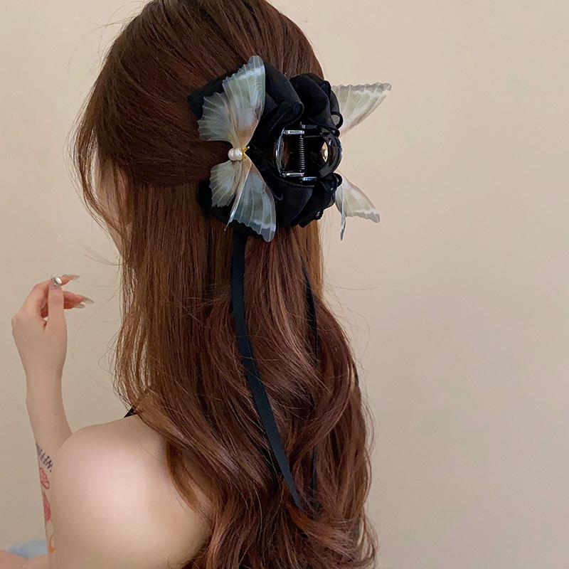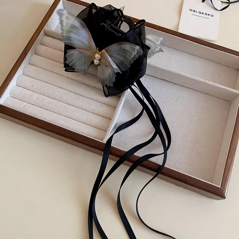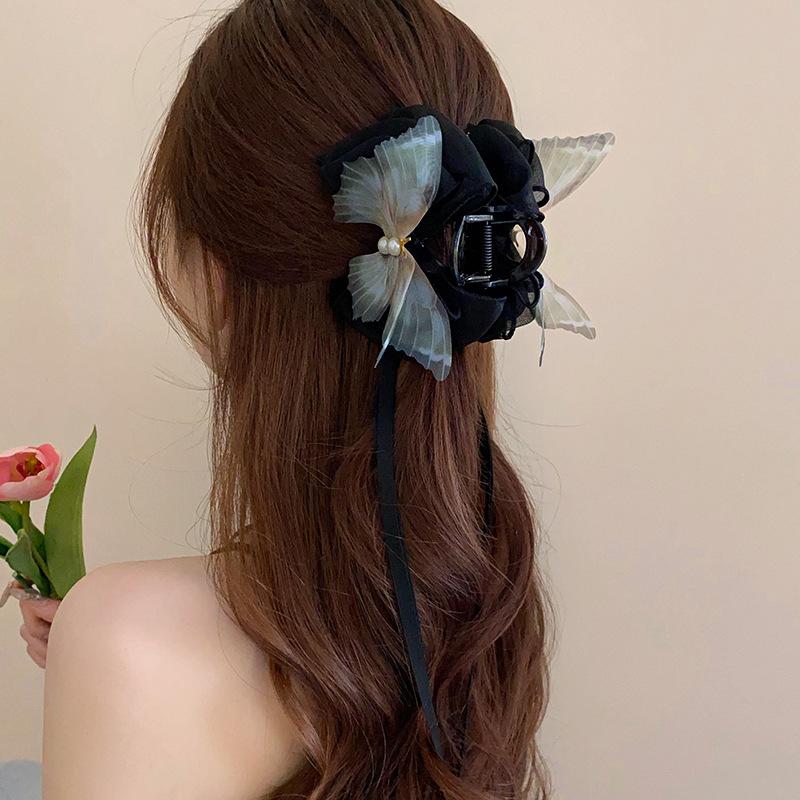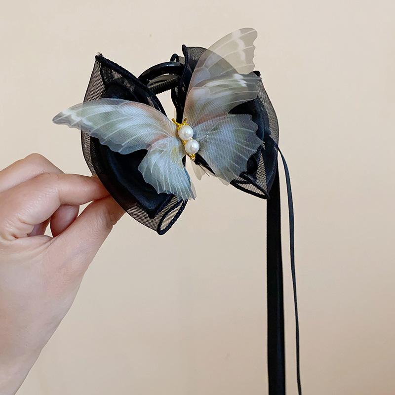 Horquilla de mariposa con perlas Mori, elegante horquilla para la nuca con forma de tiburón, accesorio de moda de alta gama para el cabello de mujer.