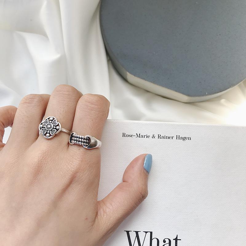 Kashite Corea del Sur estilo coreano S925 plata moda vintage cuerda retorcida personalidad anillo abierto anillo femenino Red Red