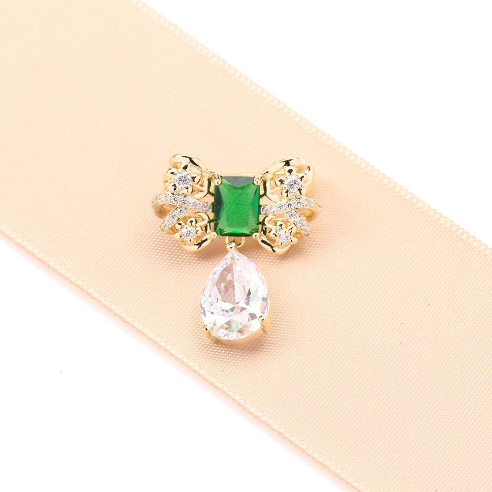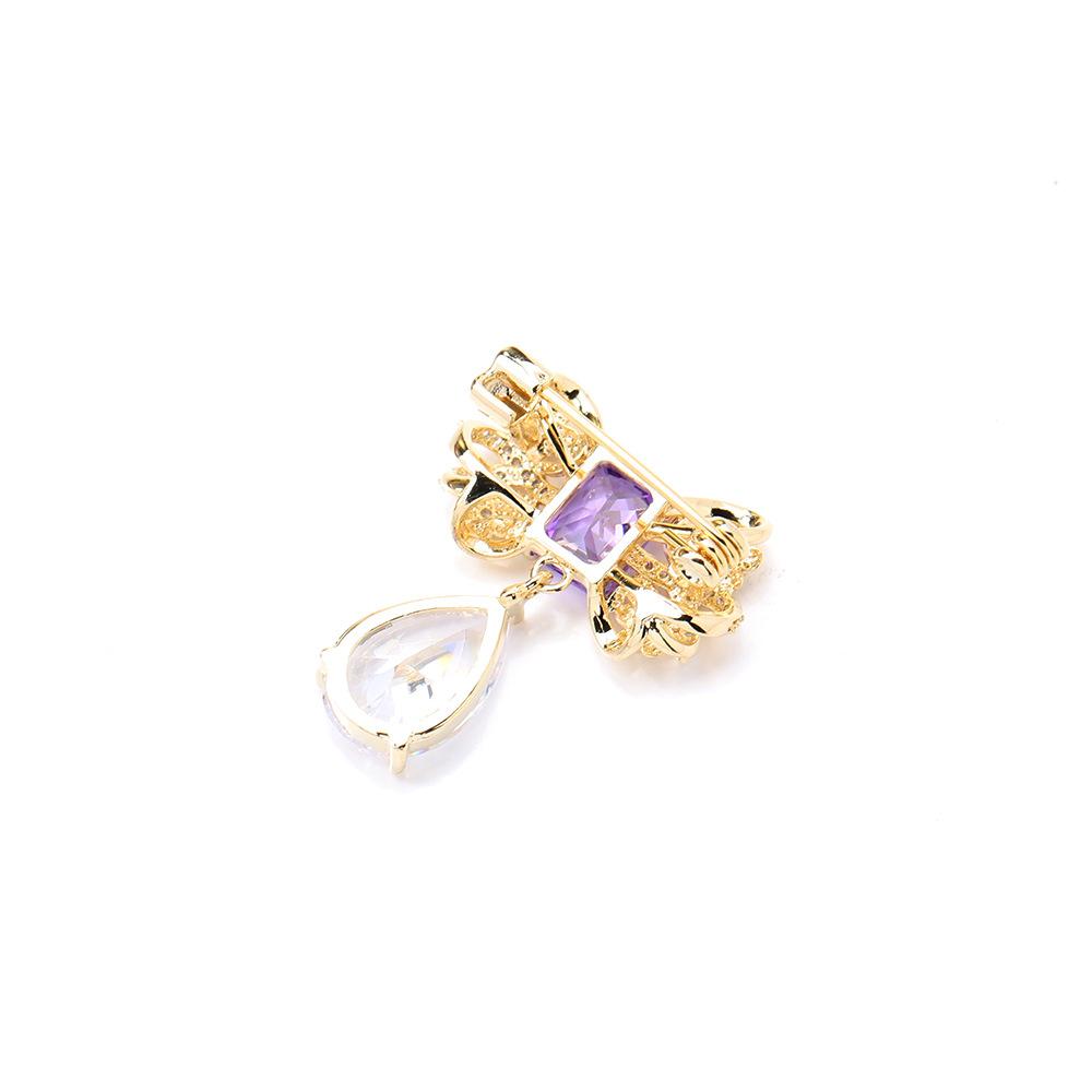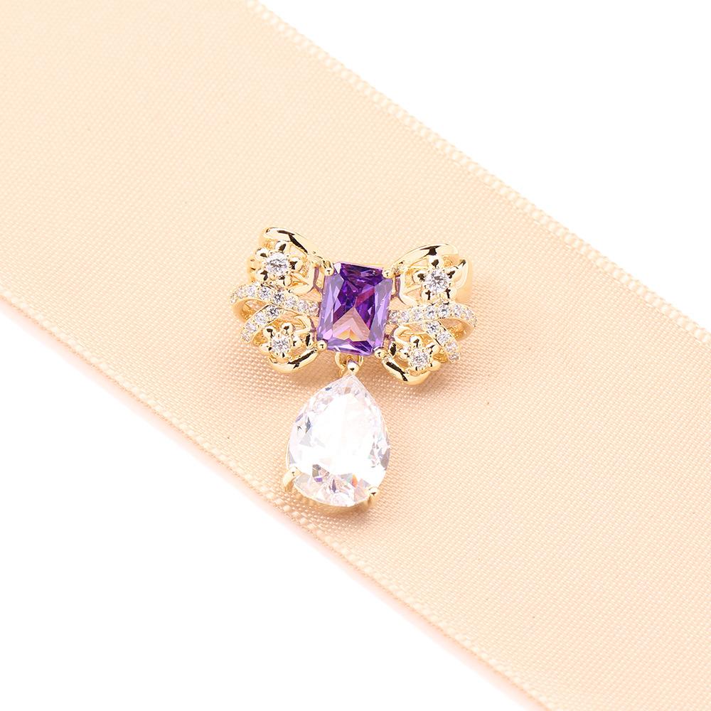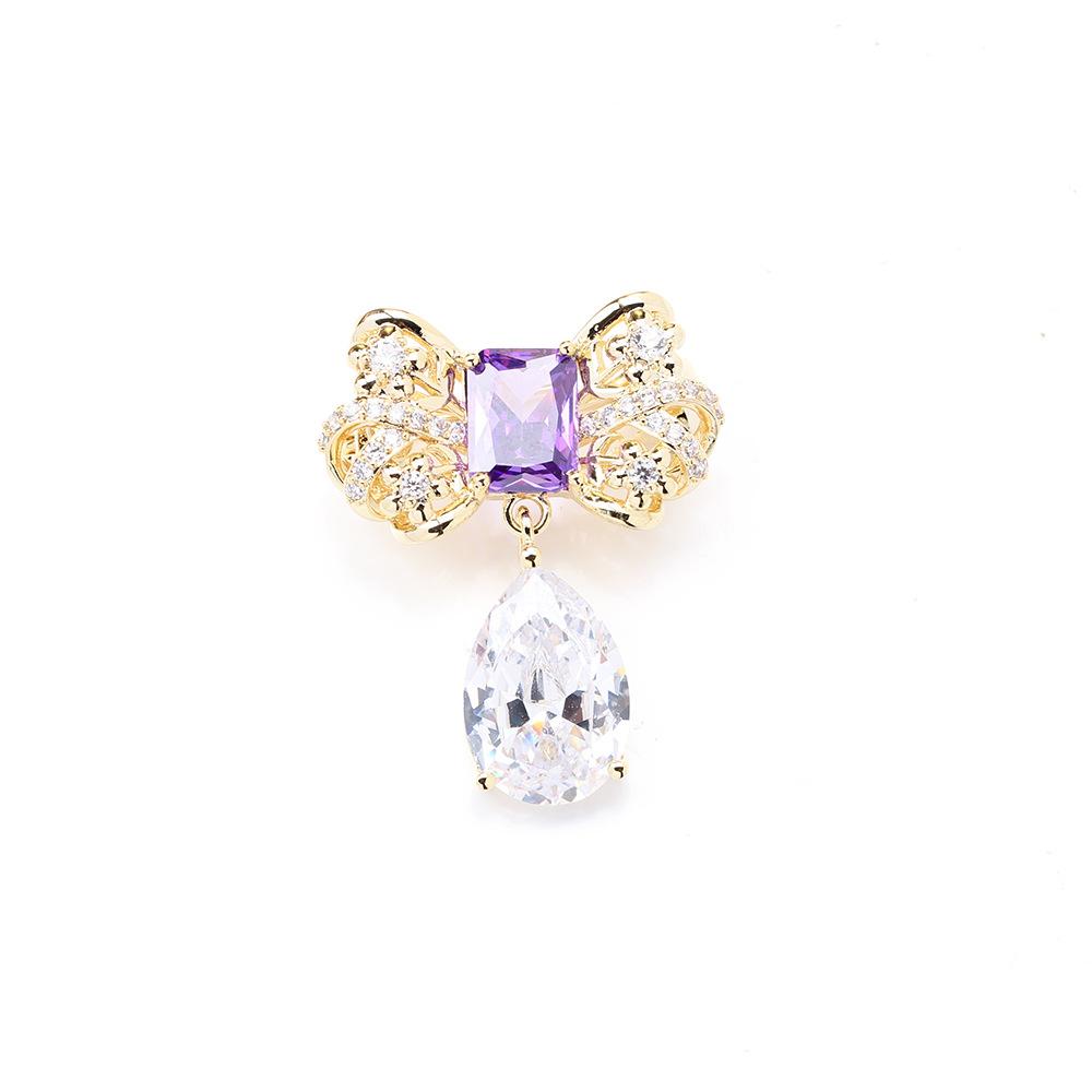 Nuevo y lindo broche con lazo morado y verde con diamantes, elegante, sencillo, chapado en oro, combina con todo, pequeño, antiexposición, para mujer