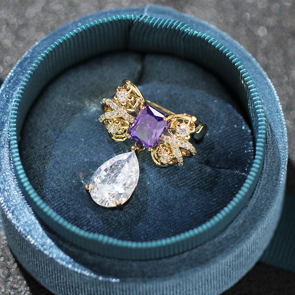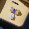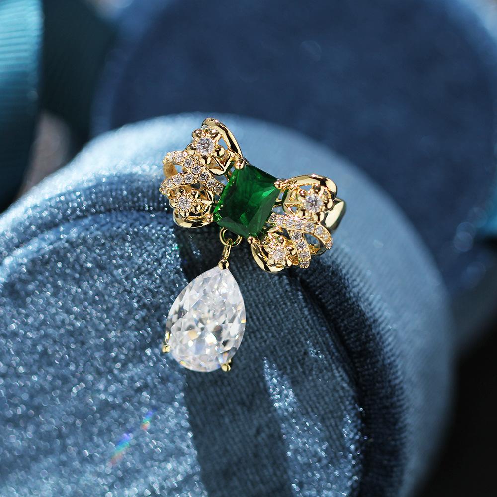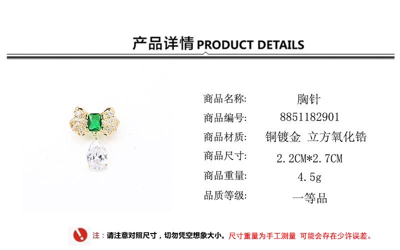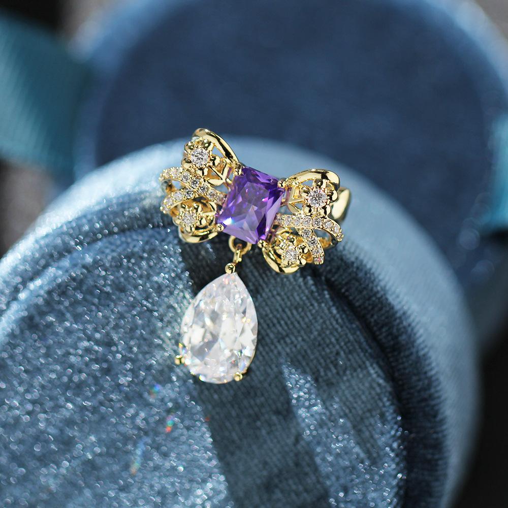 Nuevo y lindo broche con lazo morado y verde con diamantes, elegante, sencillo, chapado en oro, combina con todo, pequeño, antiexposición, para mujer