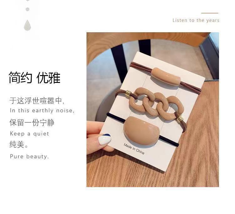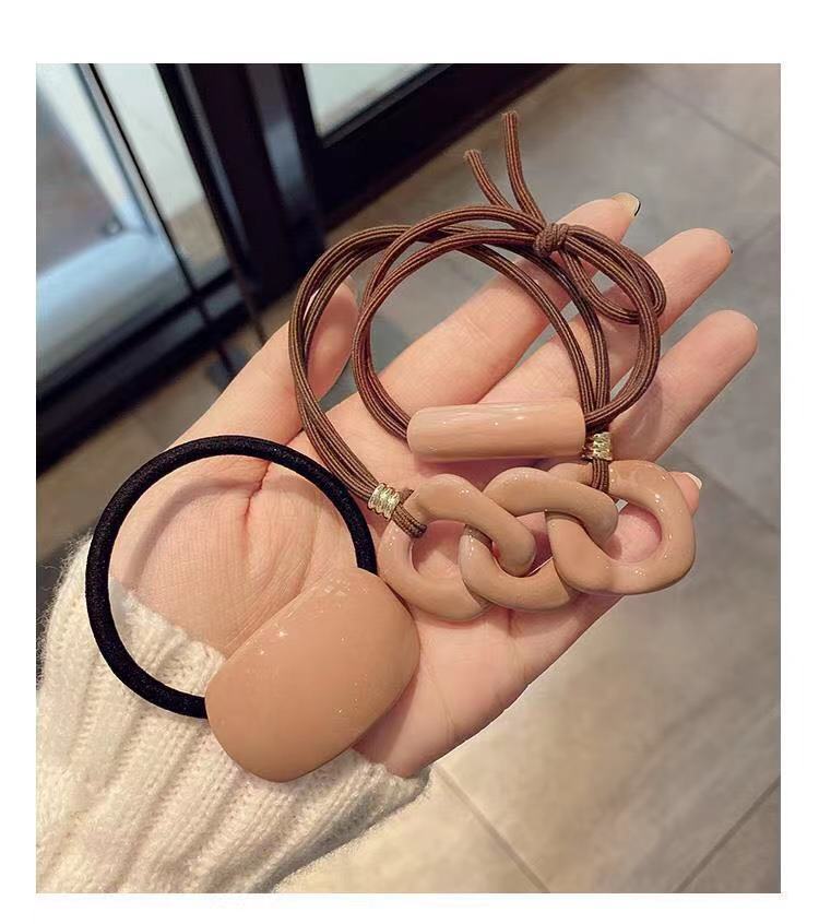 Set de nueve piezas de té con leche liga para el cabello banda para el cabello Estilo frío simple elegante cuerda para el cabello cubierta de cuero TikTok entrega rápida de una pieza