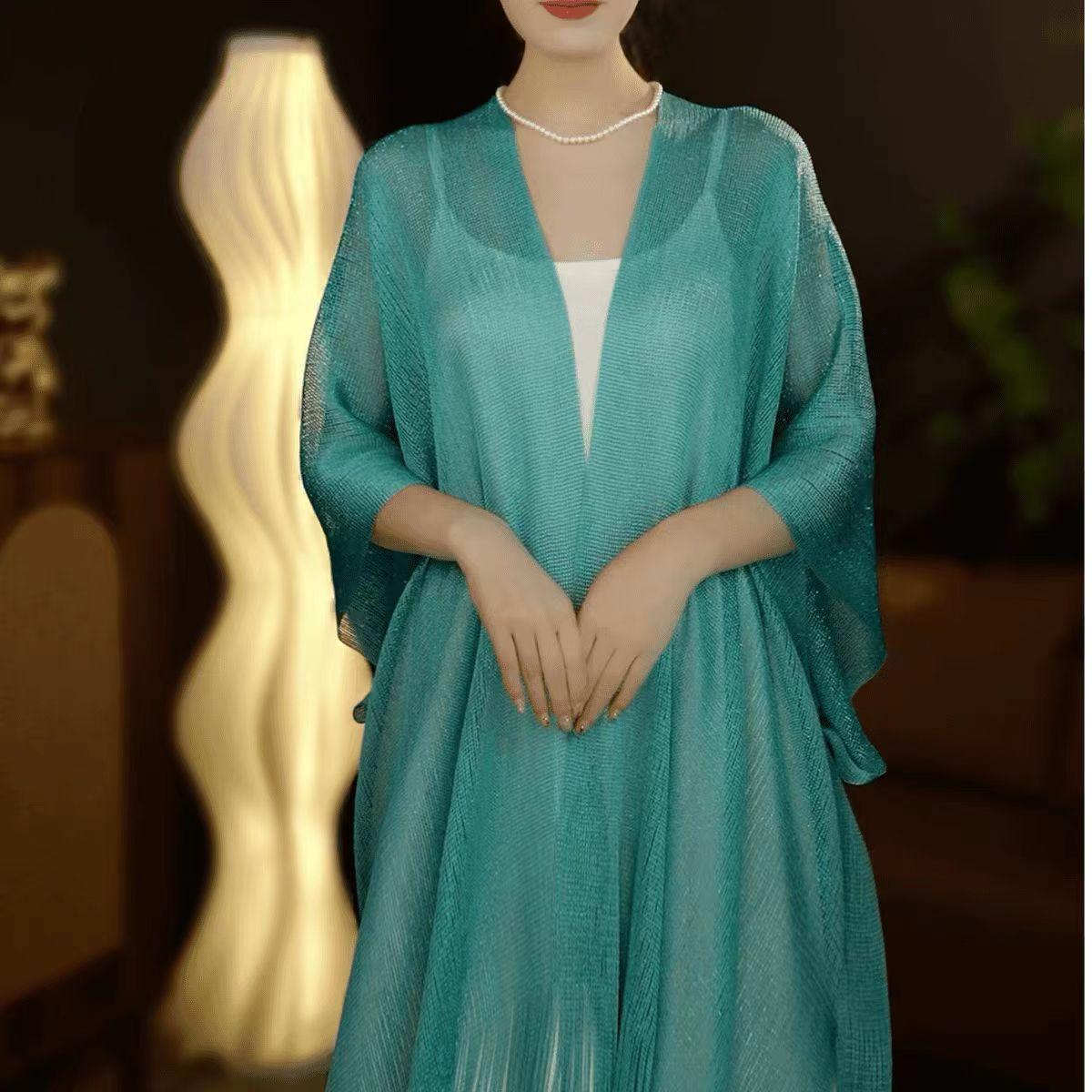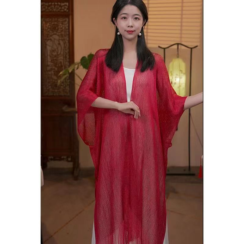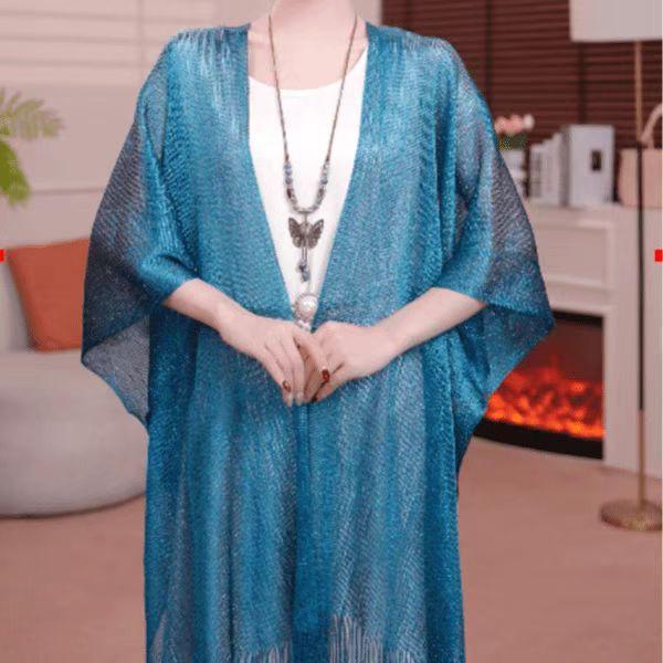Capa de borla decorativa exterior de verano, chal hueco protector solar tejido brillante para fiesta, viaje, chal para mujer