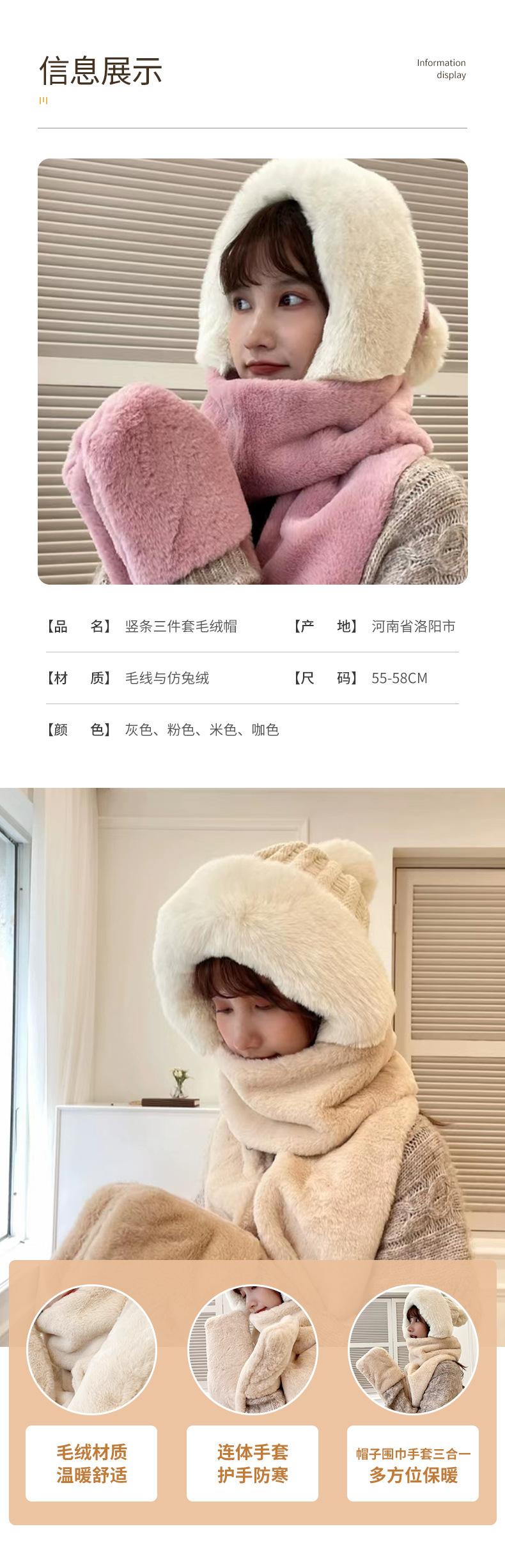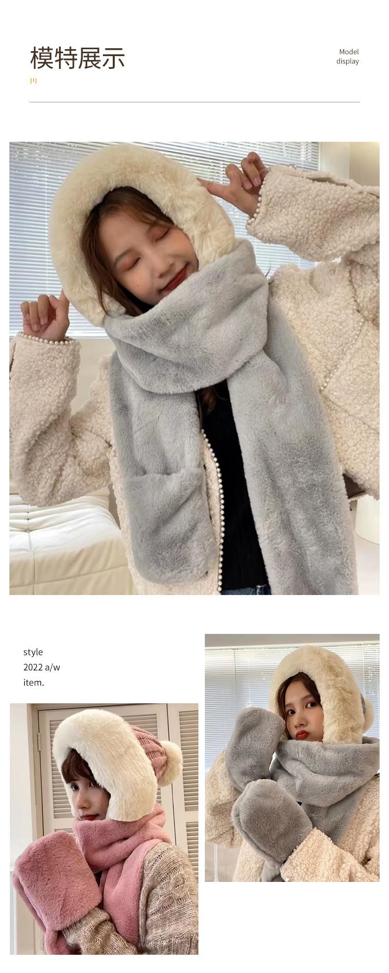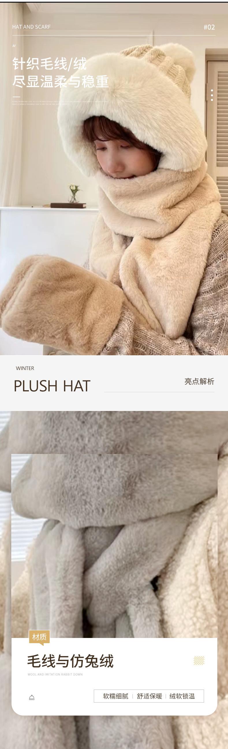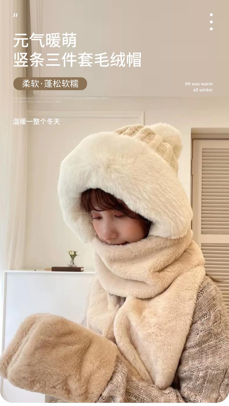 Invierno Cálido Adulto A Prueba de Frío Imitación Terciopelo de Conejo Tejido Lana Estilo Coreano Bufanda de Cuello Guantes Sombrero Conjunto de Tres Piezas