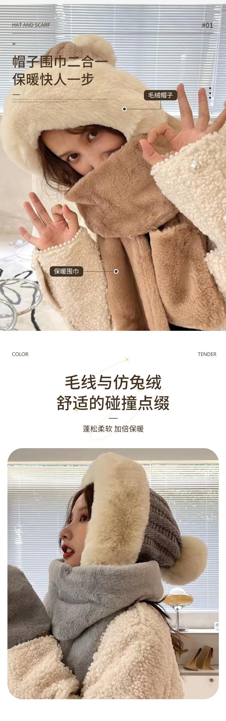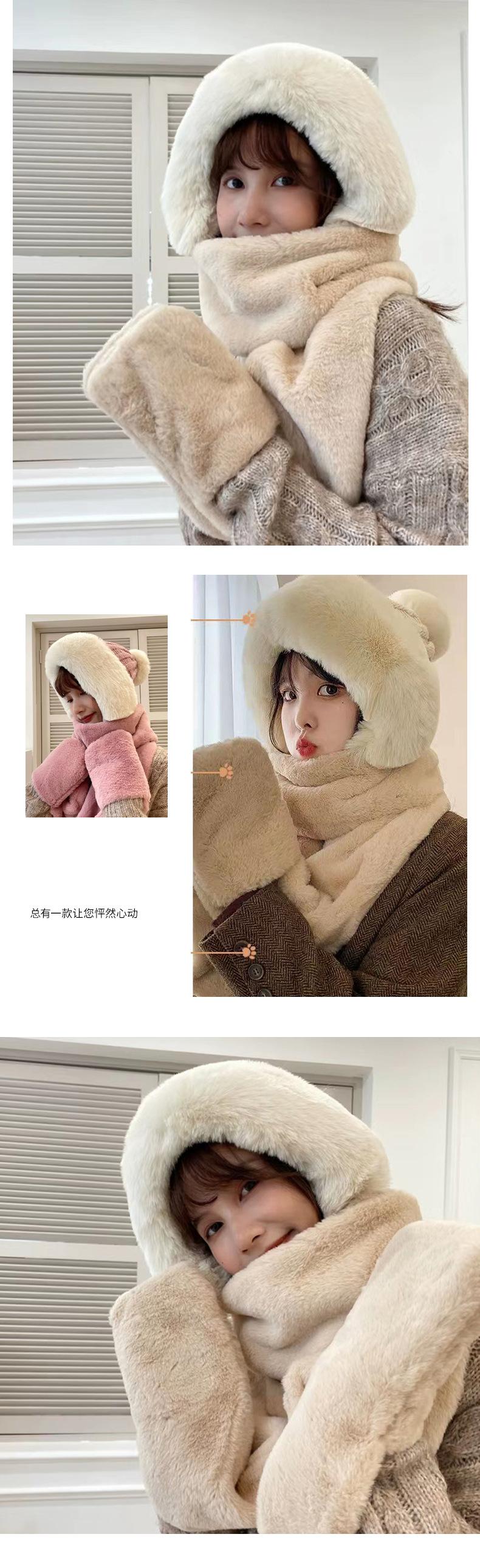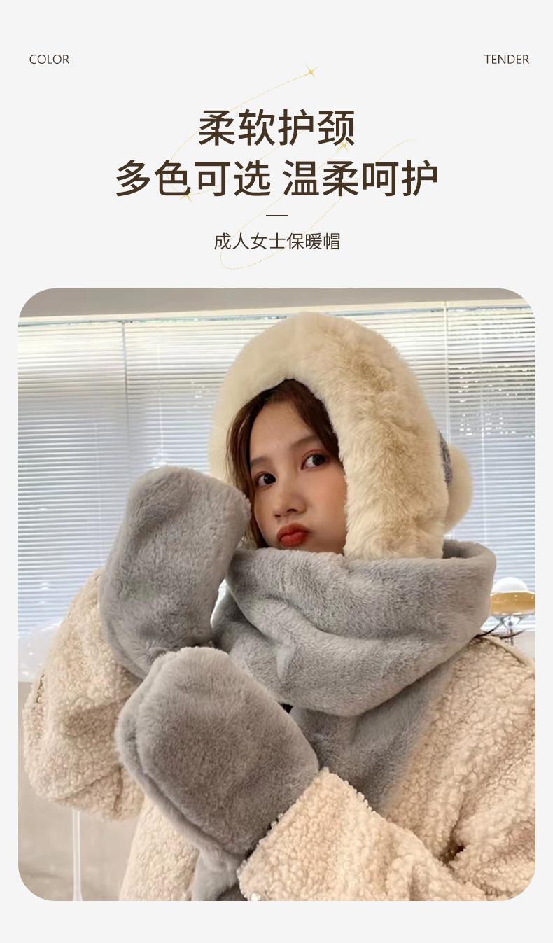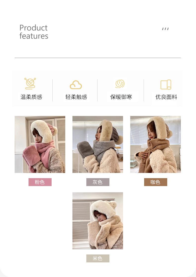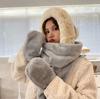 Invierno Cálido Adulto A Prueba de Frío Imitación Terciopelo de Conejo Tejido Lana Estilo Coreano Bufanda de Cuello Guantes Sombrero Conjunto de Tres Piezas