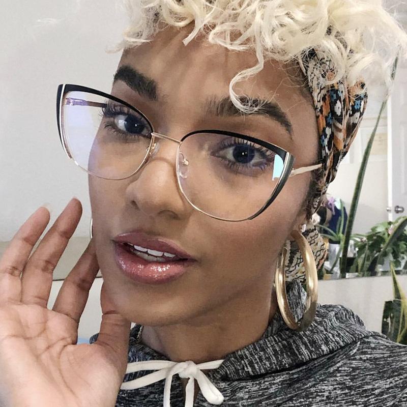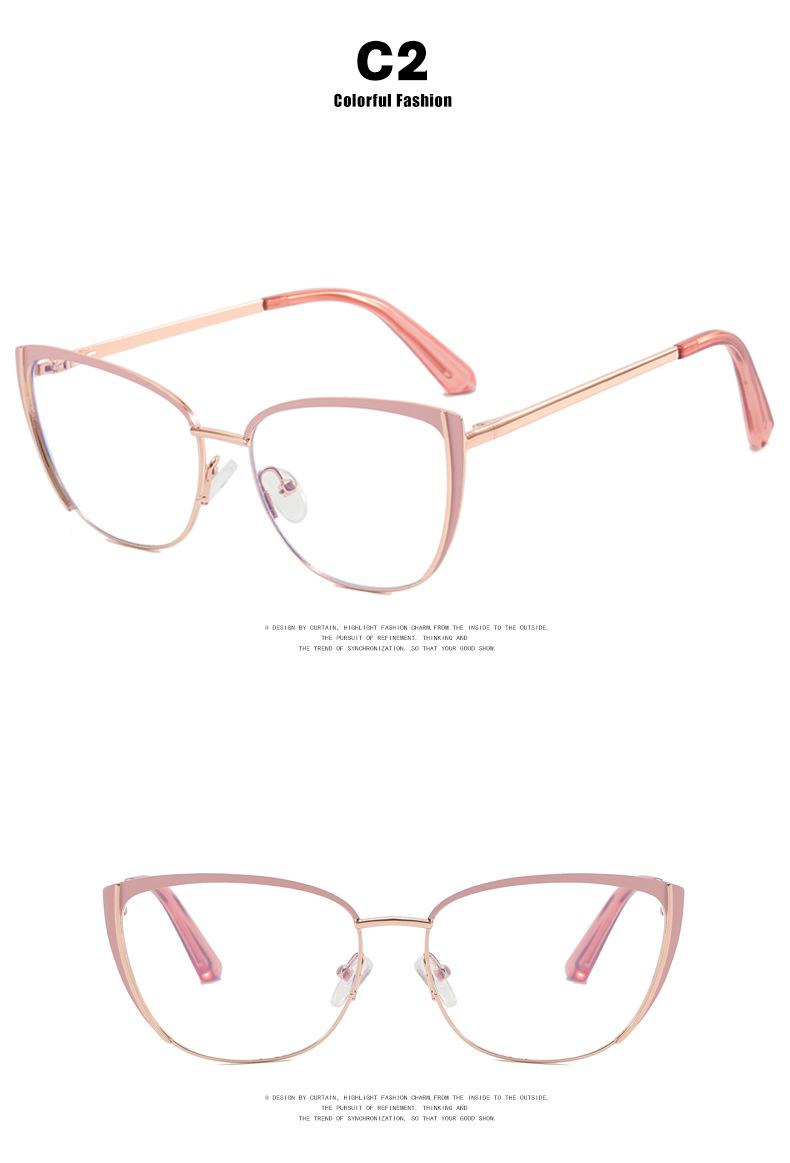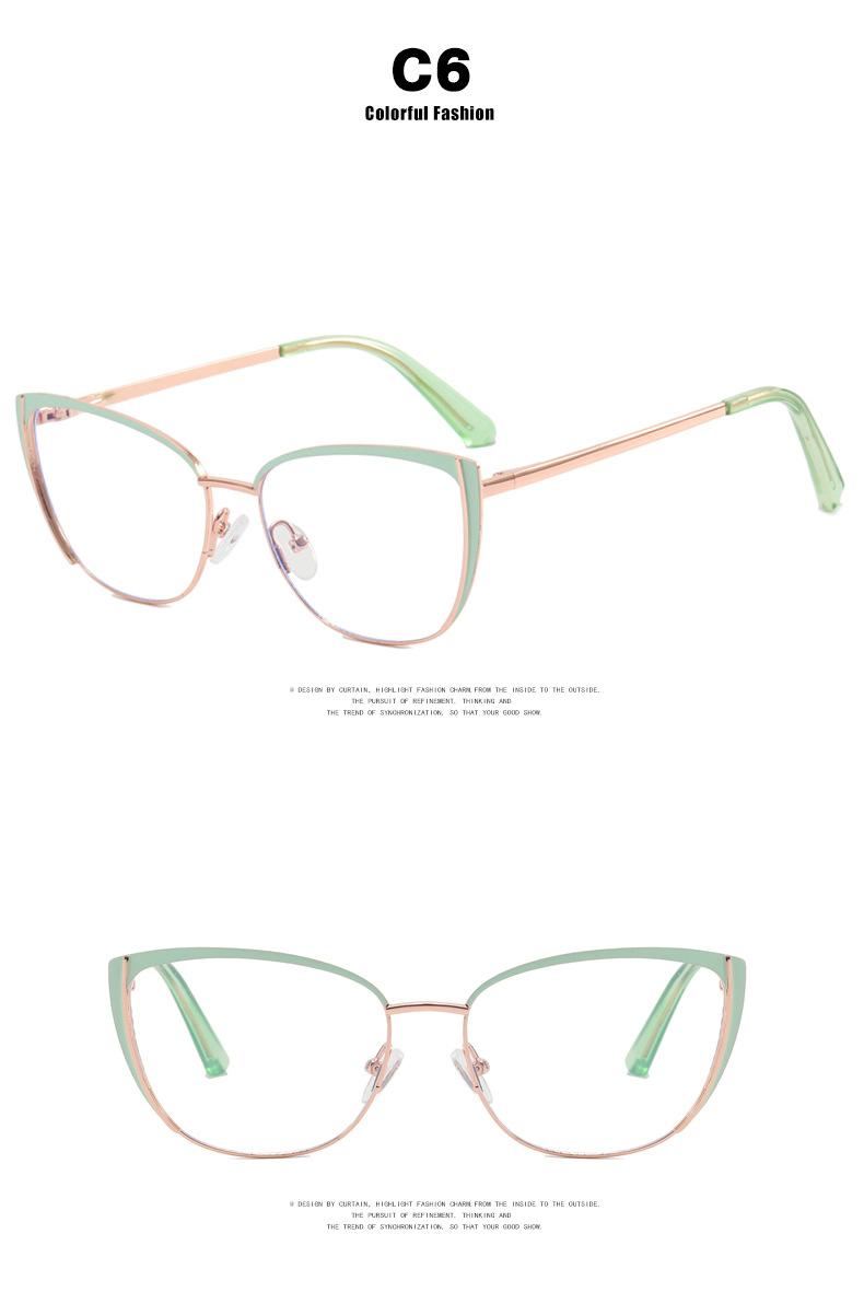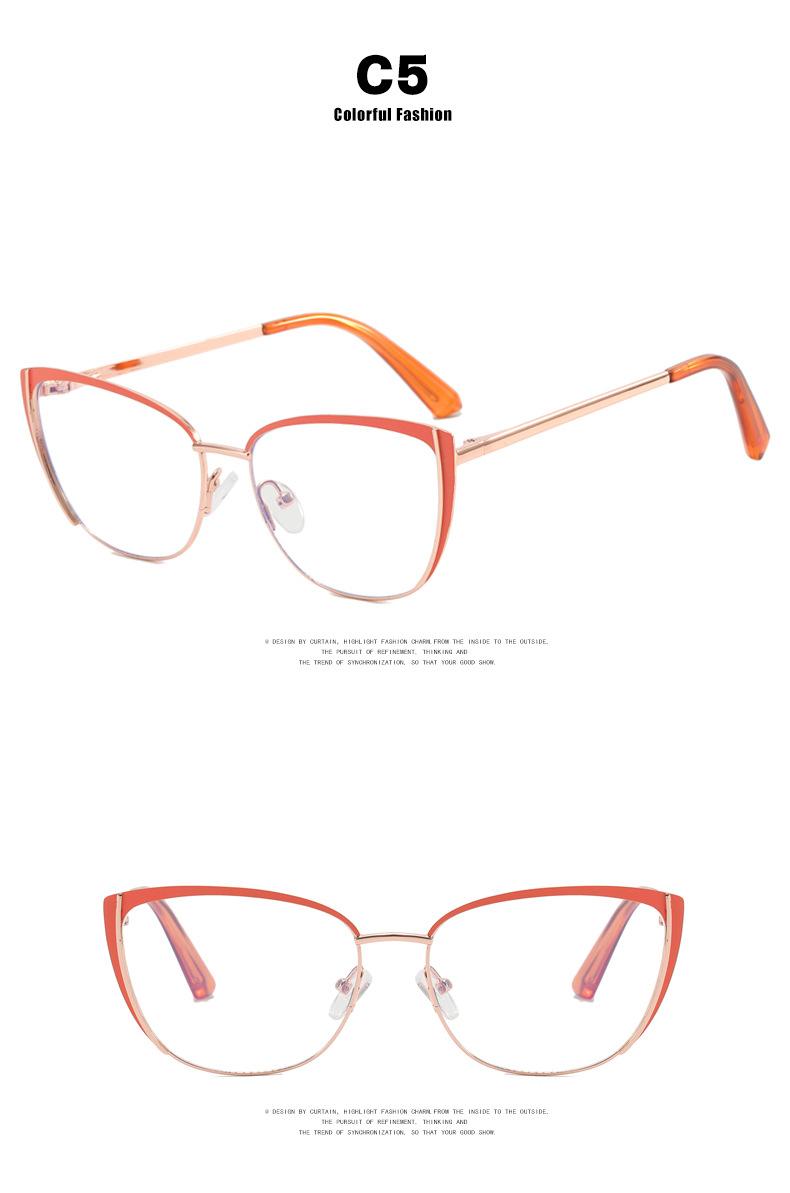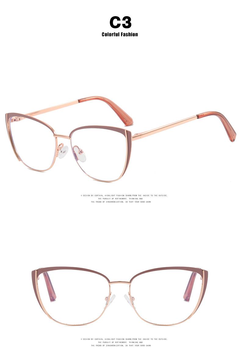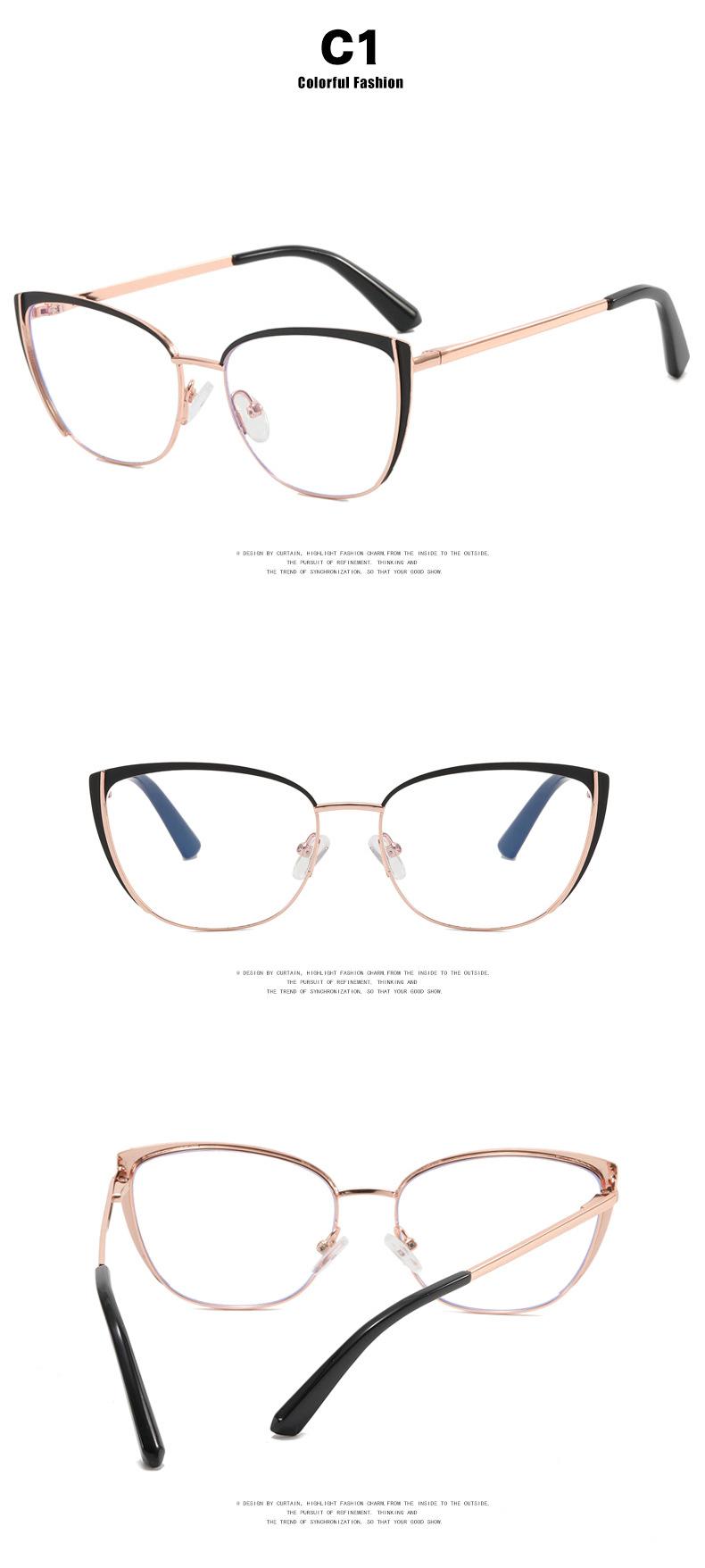 Gafas de metal ojo de gato transfronterizas Europa y Estados Unidos 2022 nuevo armazón de gafas de barniz al horno de lente plana anti-luz azul personalidad