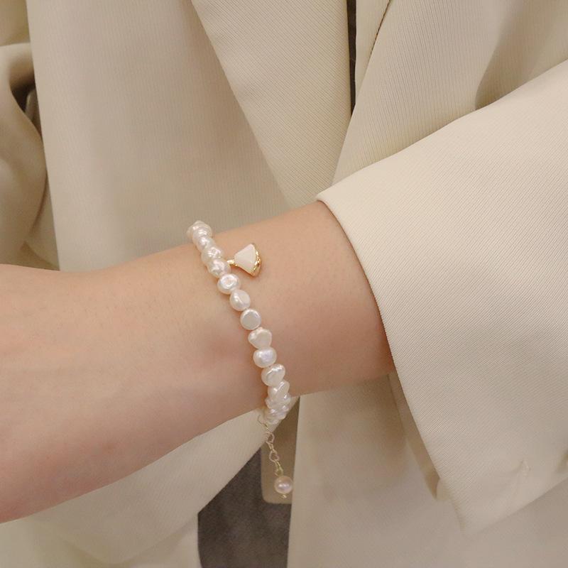 Pulsera de Fieltro a Mano Perla Natural Blanca Pulsera Niche de Lujo Ligero para Mujer Exquisita Pulsera Pulsera de Perlas Lunares de Alta Gama