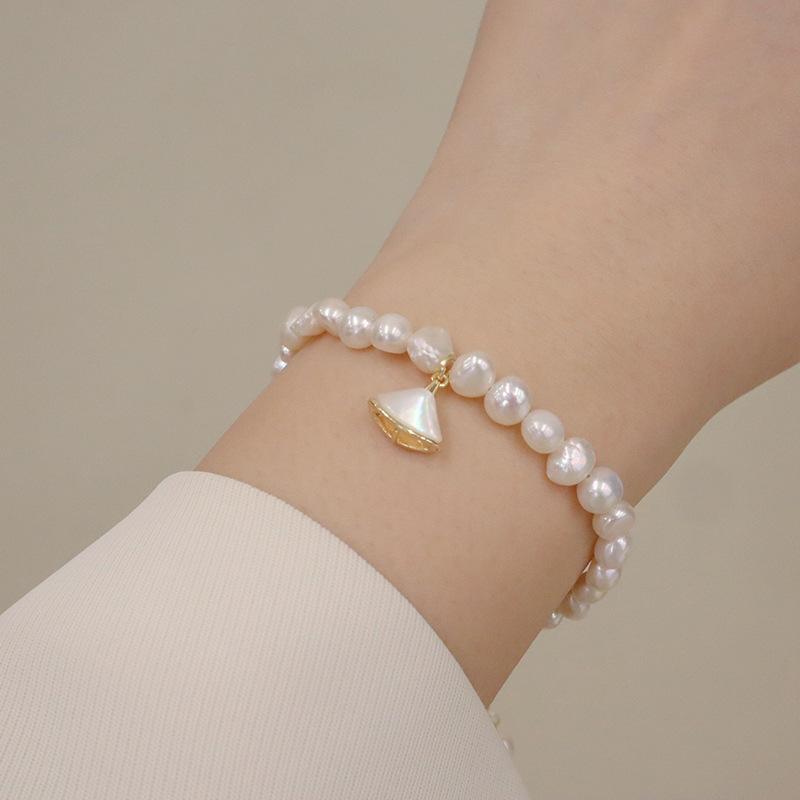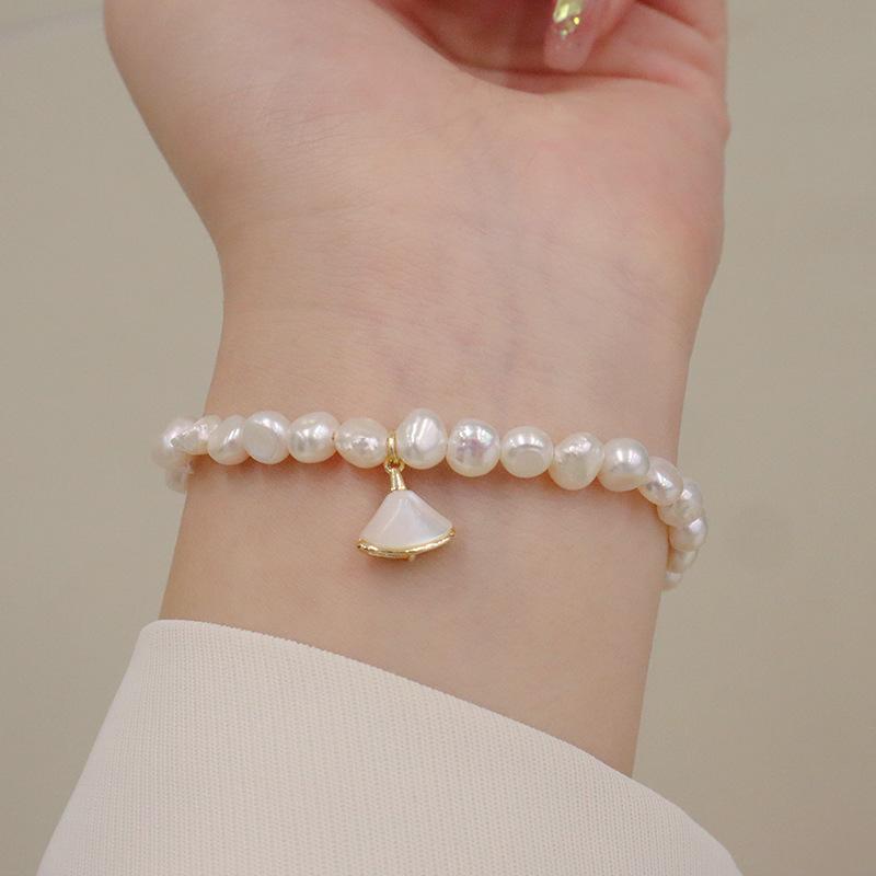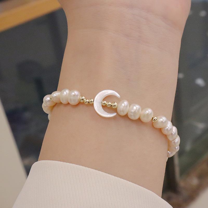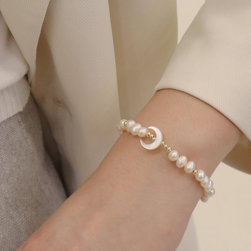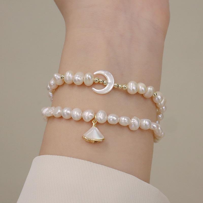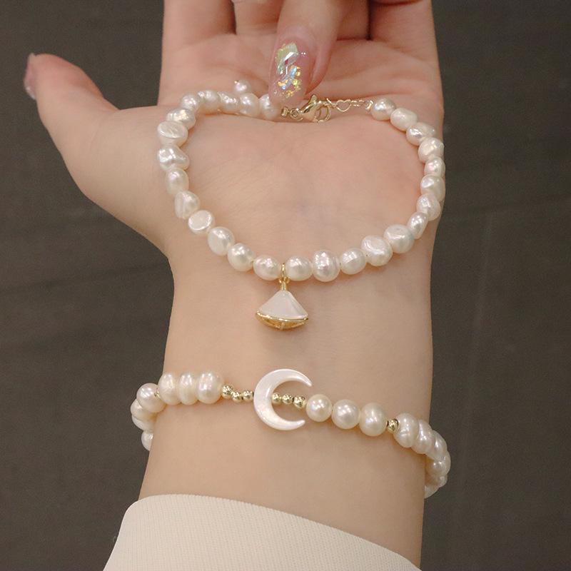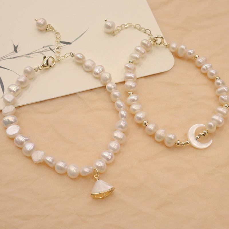 Natural Pearl Bracelet Shell Moon, Natural Pearl Bracelet Small Skirt Pendant