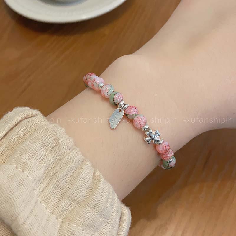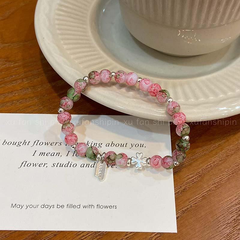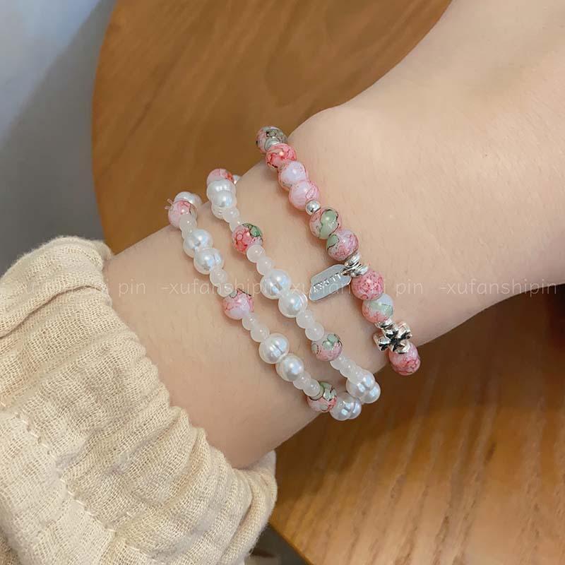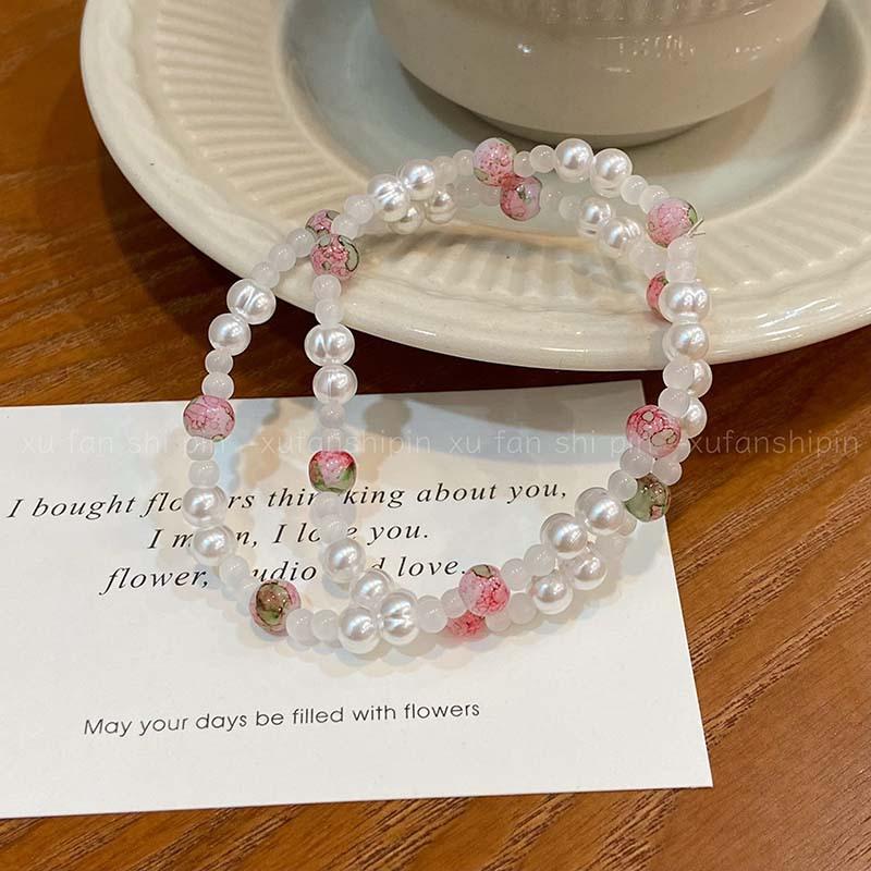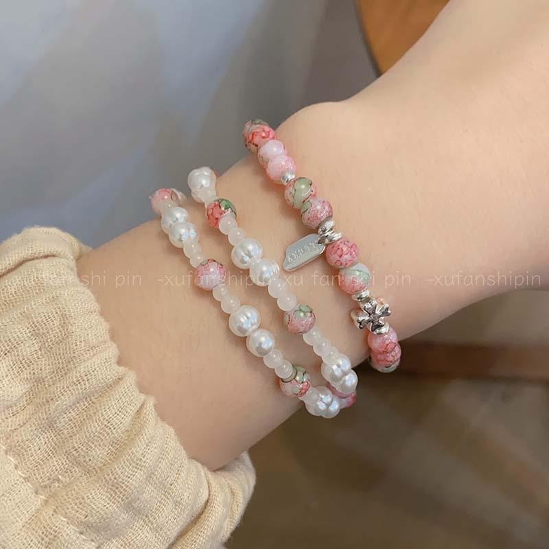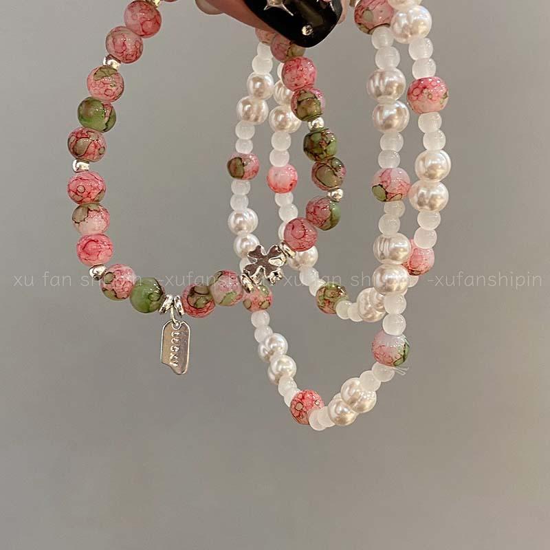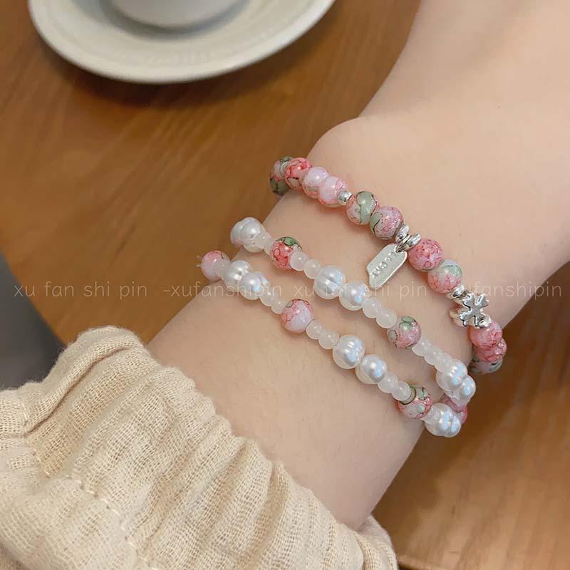 Pearl double-layer beaded bracelet, Four-Leaf Clover single-layer beaded bracelet