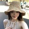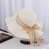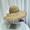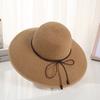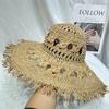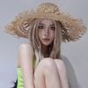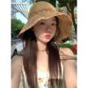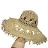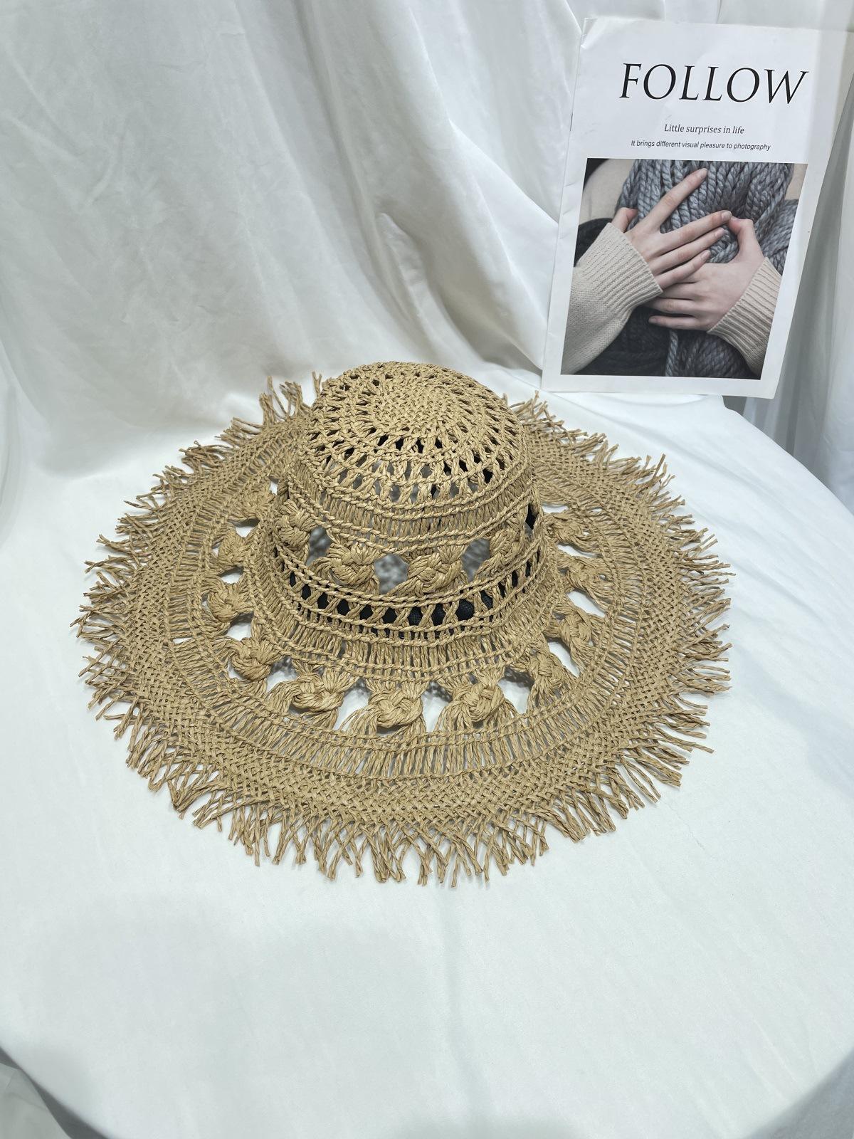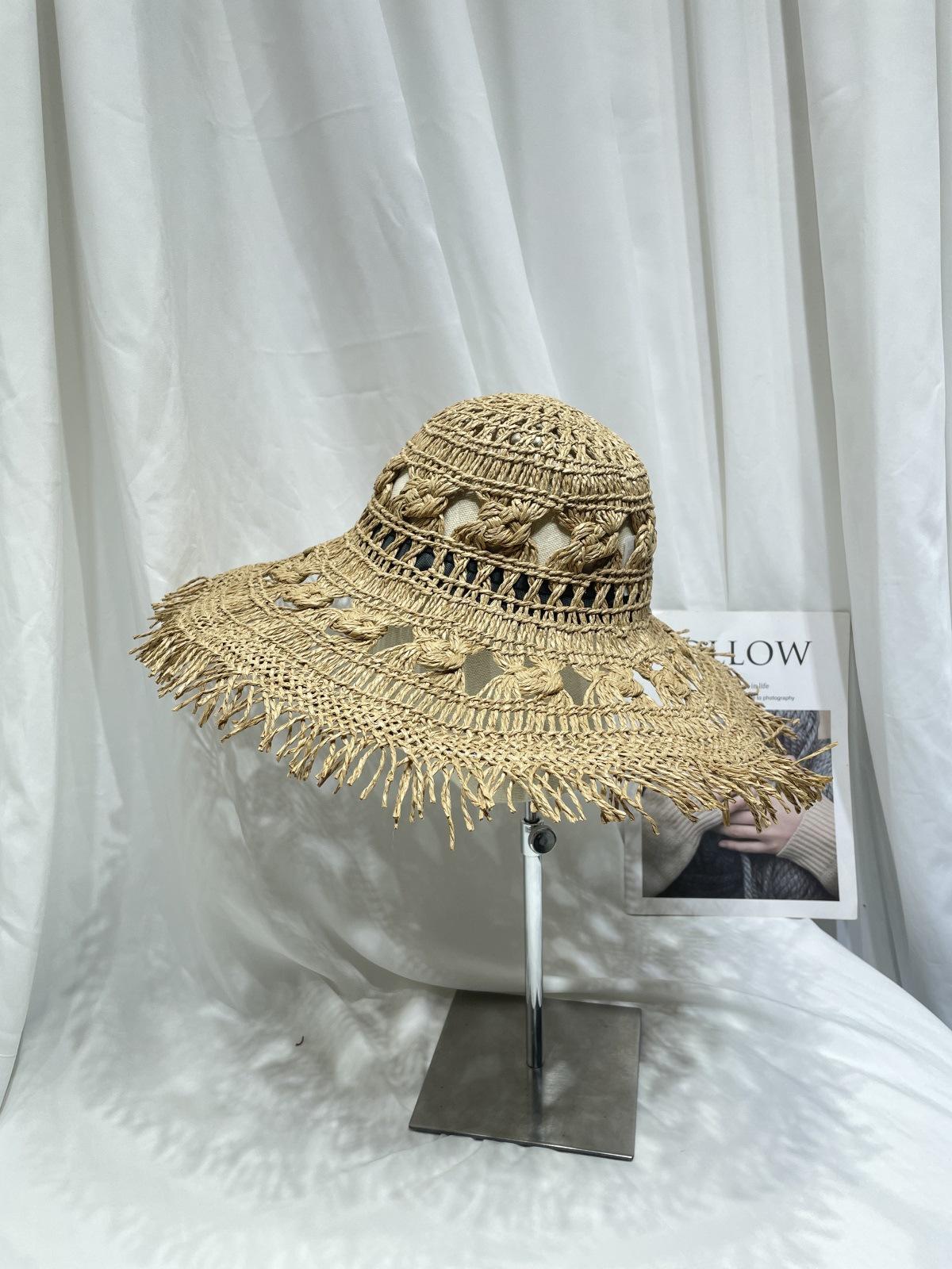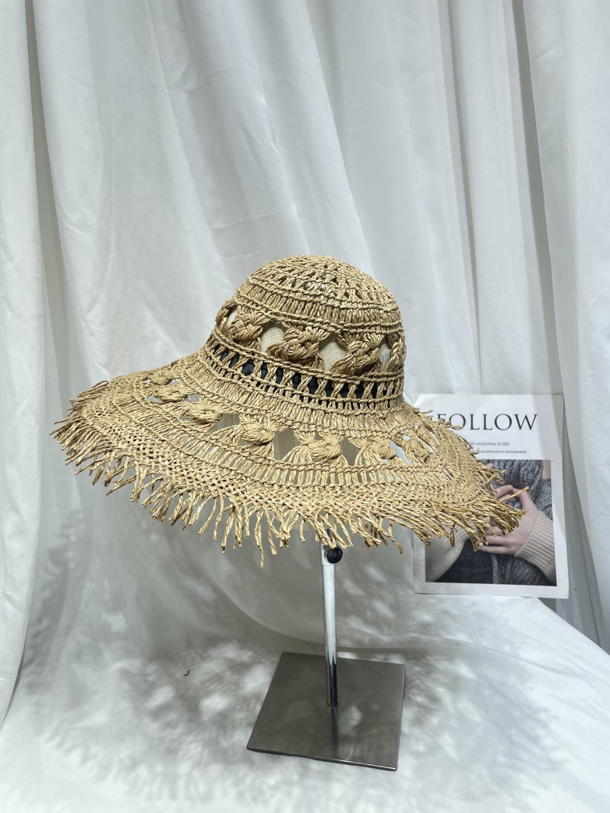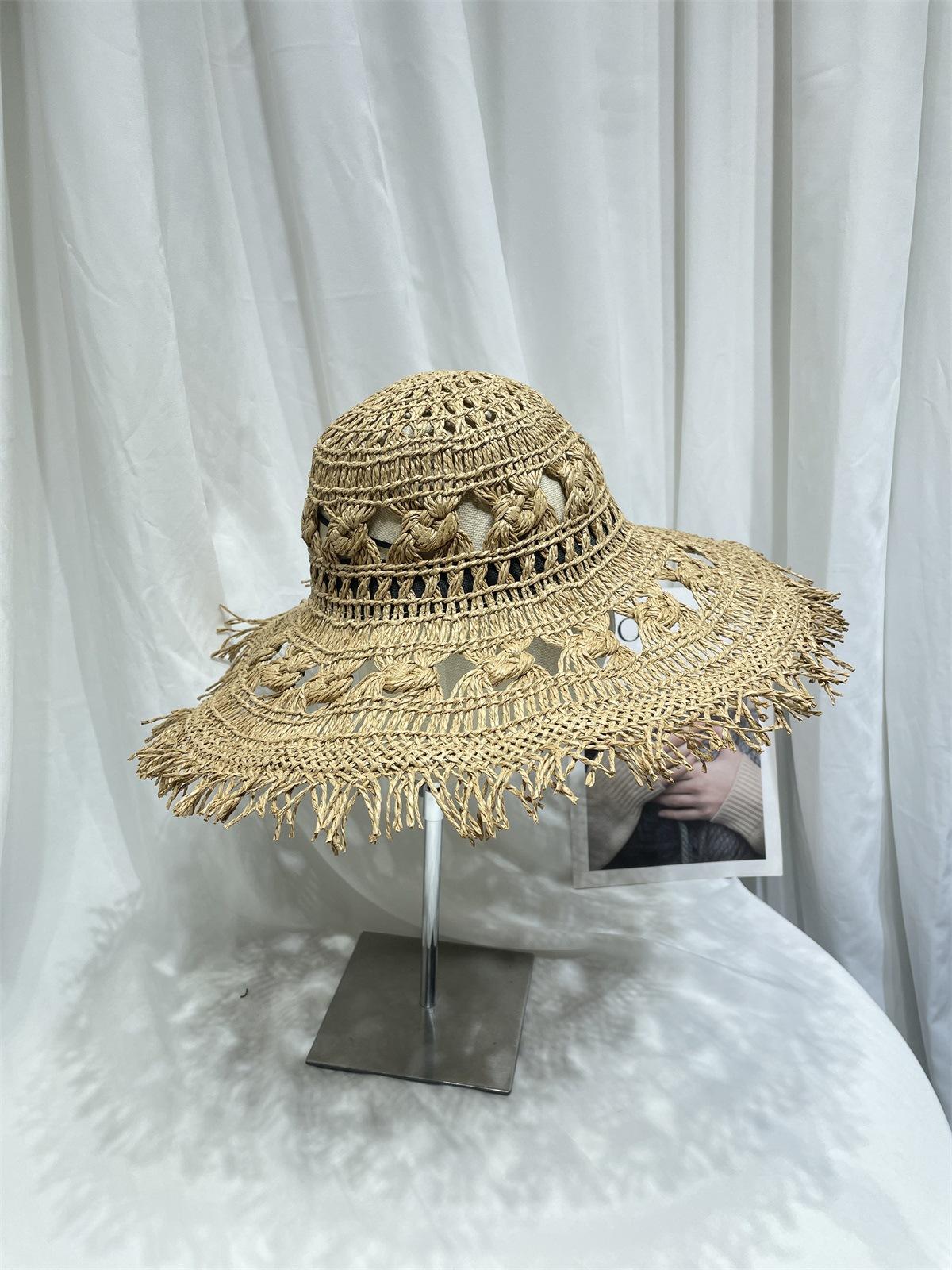 Sombrero de Paja de Ala Ancha Calado Transpirable Tejido a Mano de Estilo Europeo y Americano Sombrero de Playa Protector Solar de Verano para Mujer