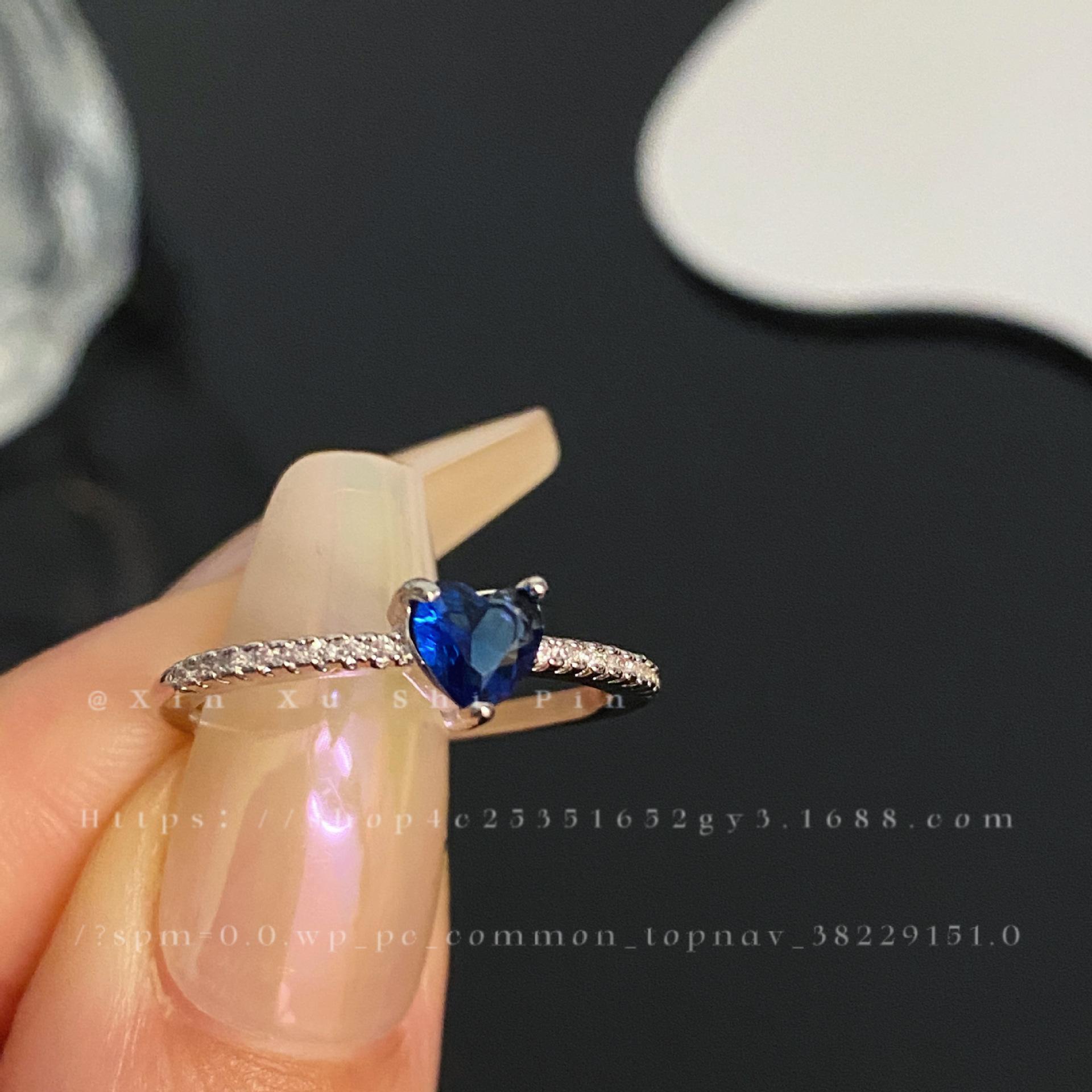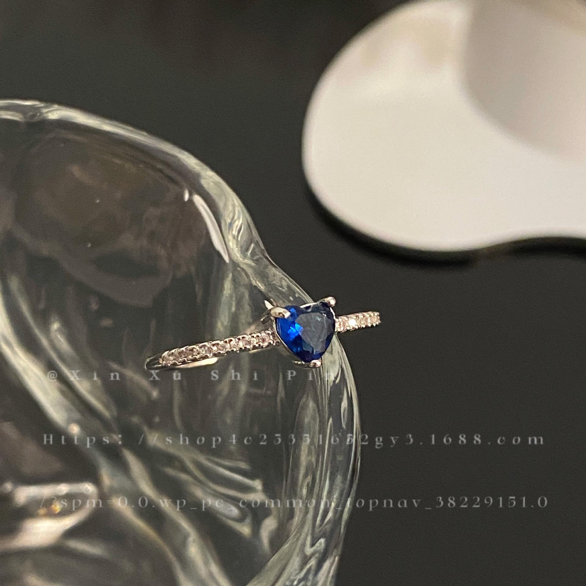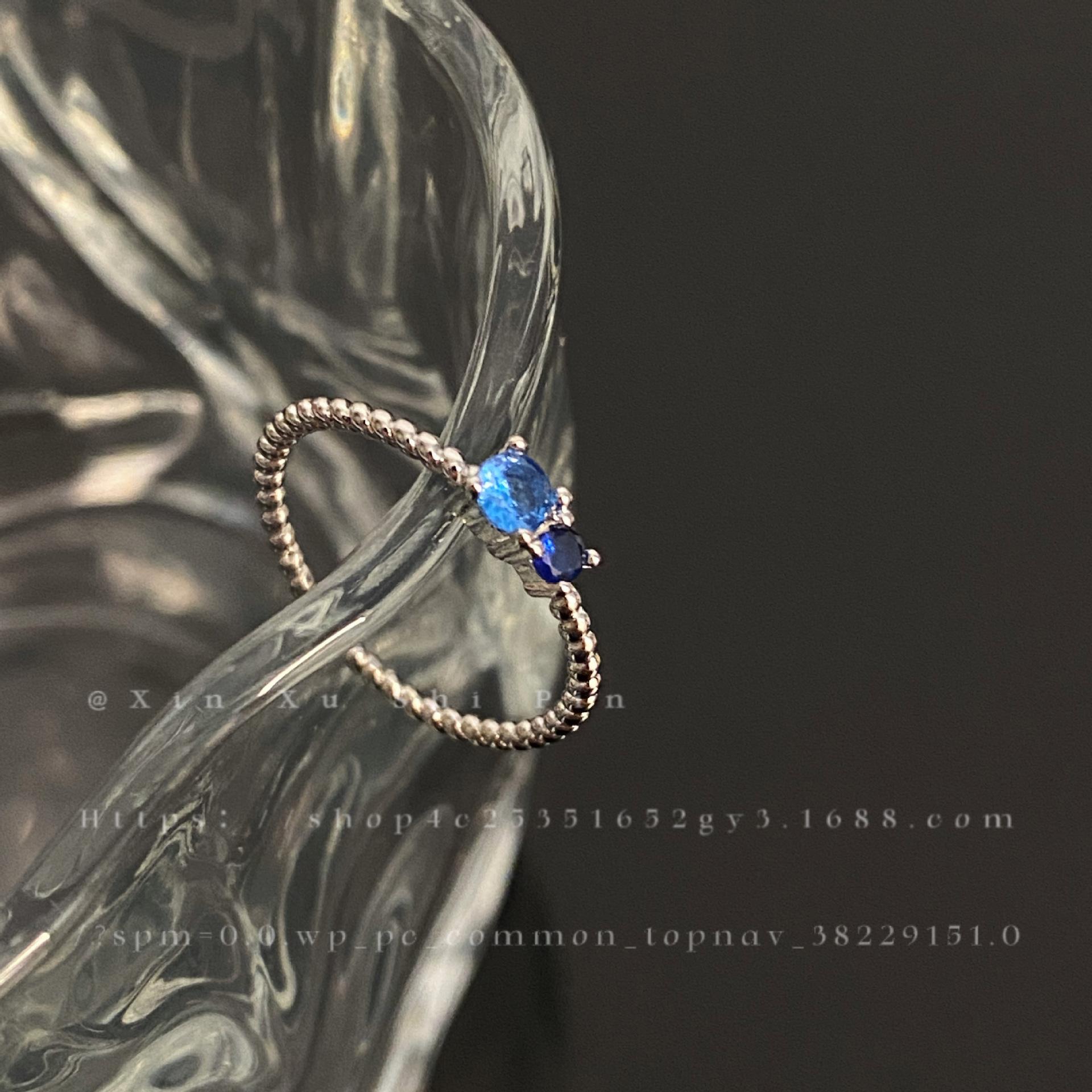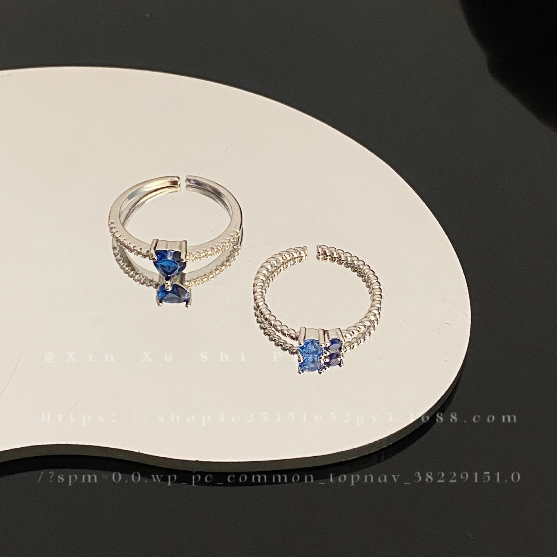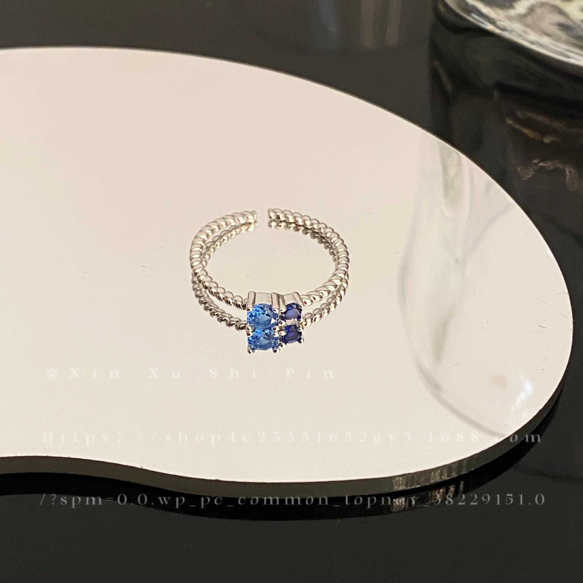 Anillo de circonita azul de estilo frío 2023, nuevo anillo de personalidad de nicho que combina con todo, joyería femenina al por mayor