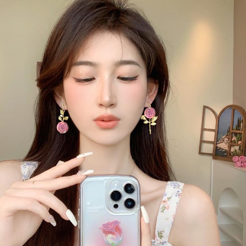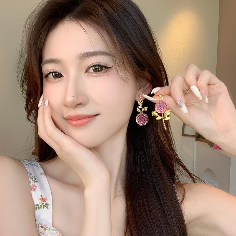Aretes con Diseño Único, Aretes de Moda Nuevos de Alta Gama para Mujer, Temperamento Súper de Hada, Sombra de Flor Púrpura Nuevos Accesorios de Moda