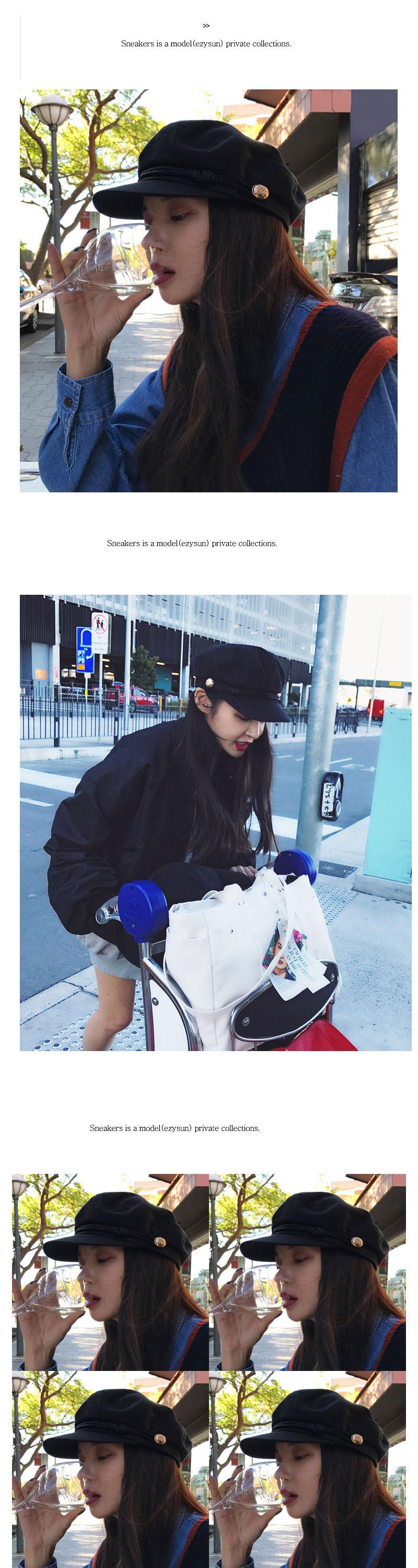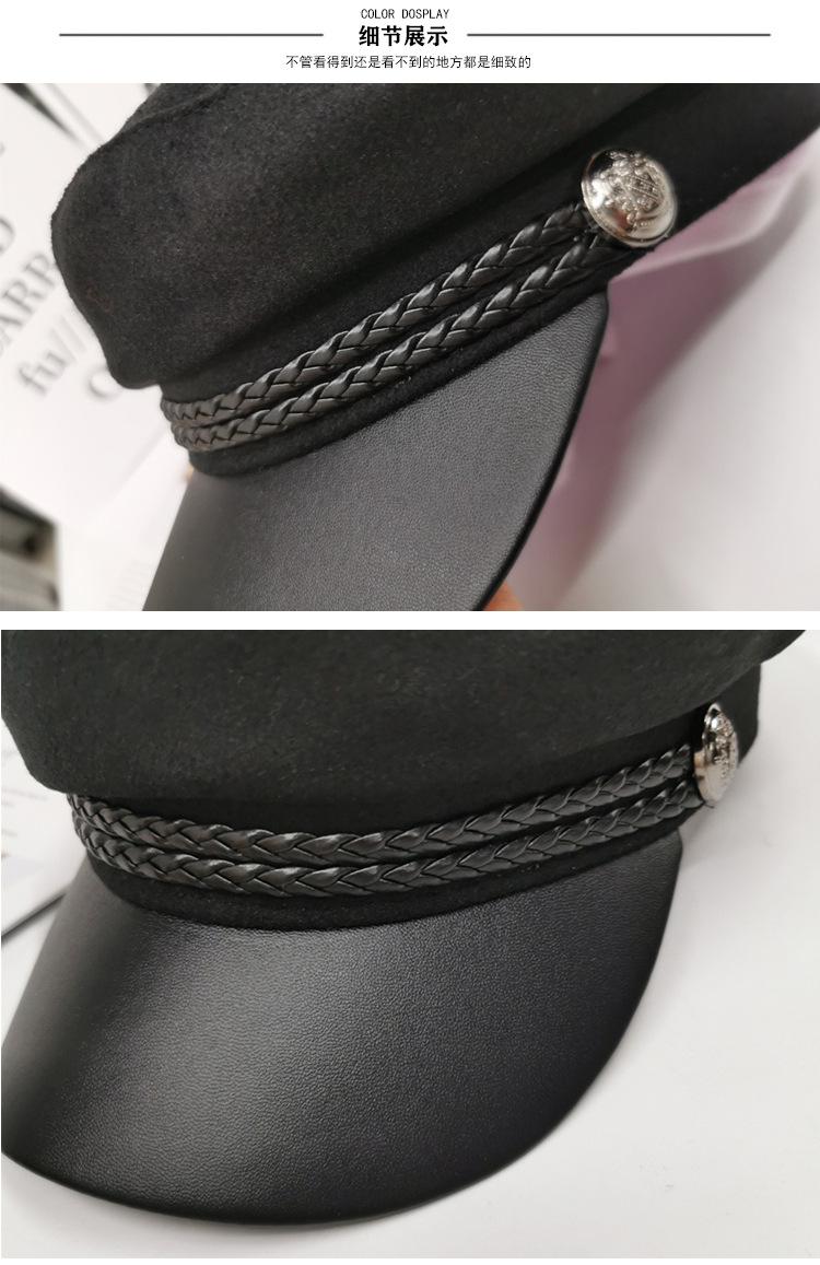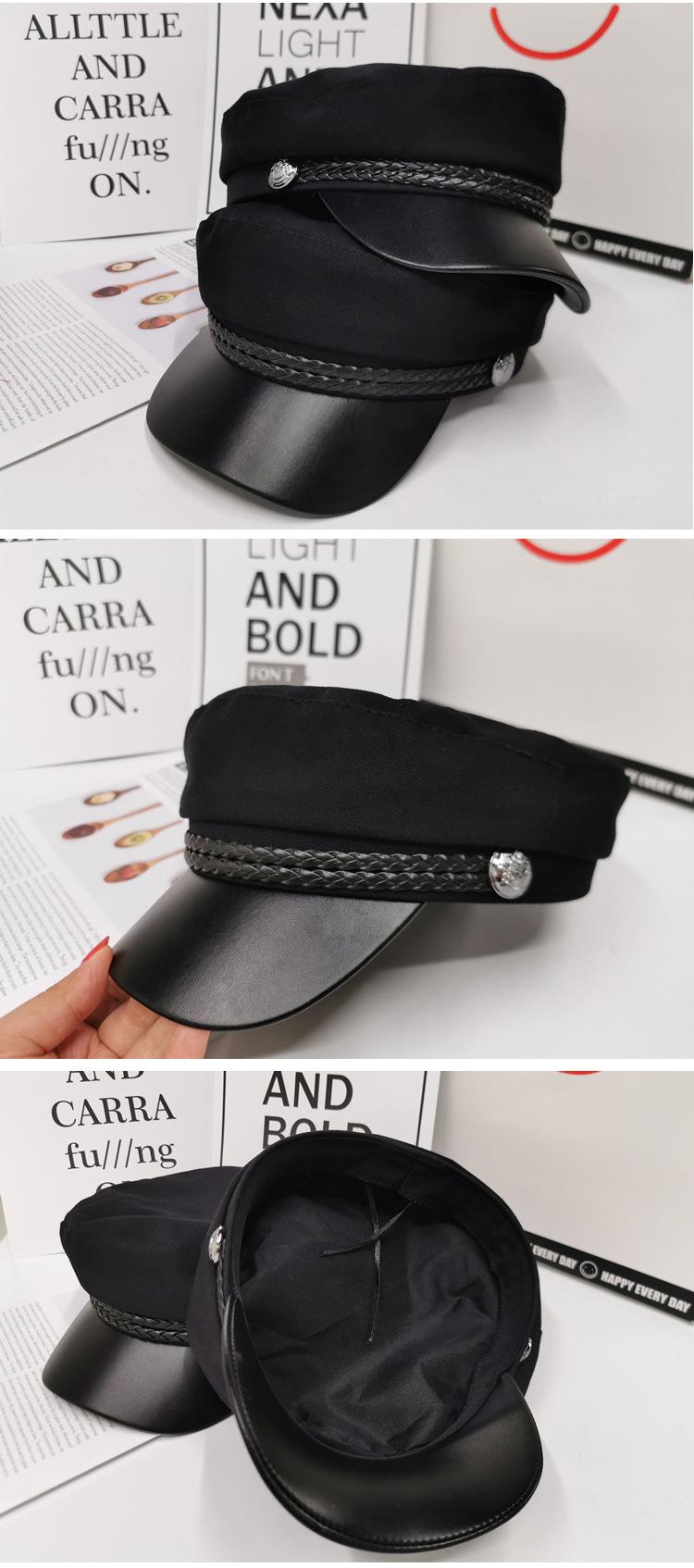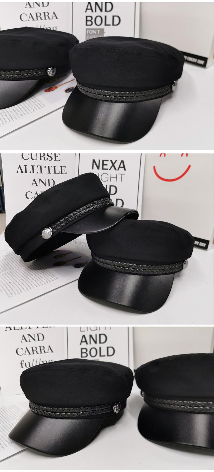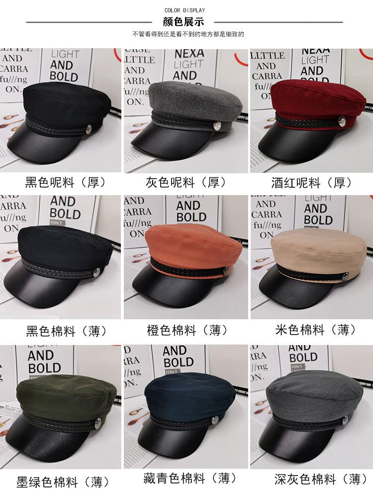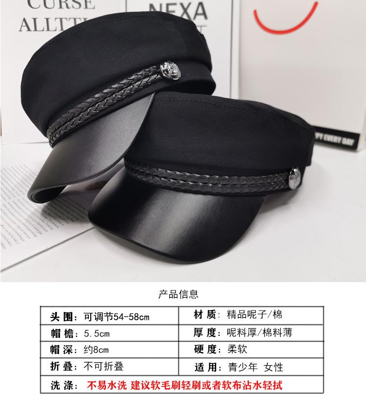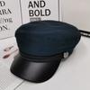 Boina de Otoño e Invierno Estilo Coreano para Mujer, Gorra Casual Versátil Azul Marino, Gorra de Béisbol Británica Retro de Copa Plana, Moderna y a la Moda