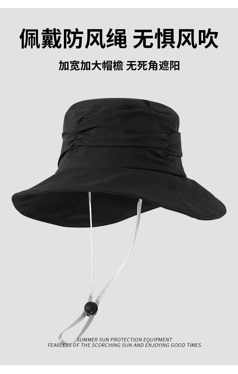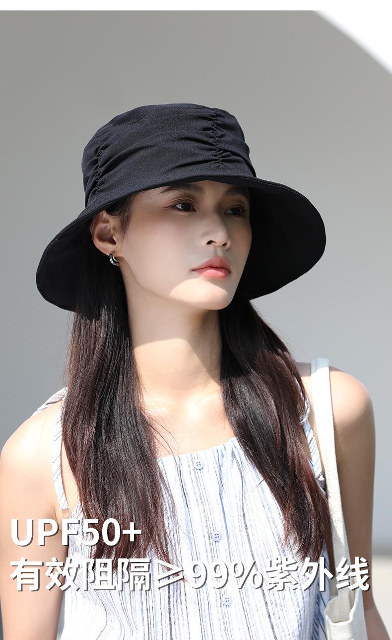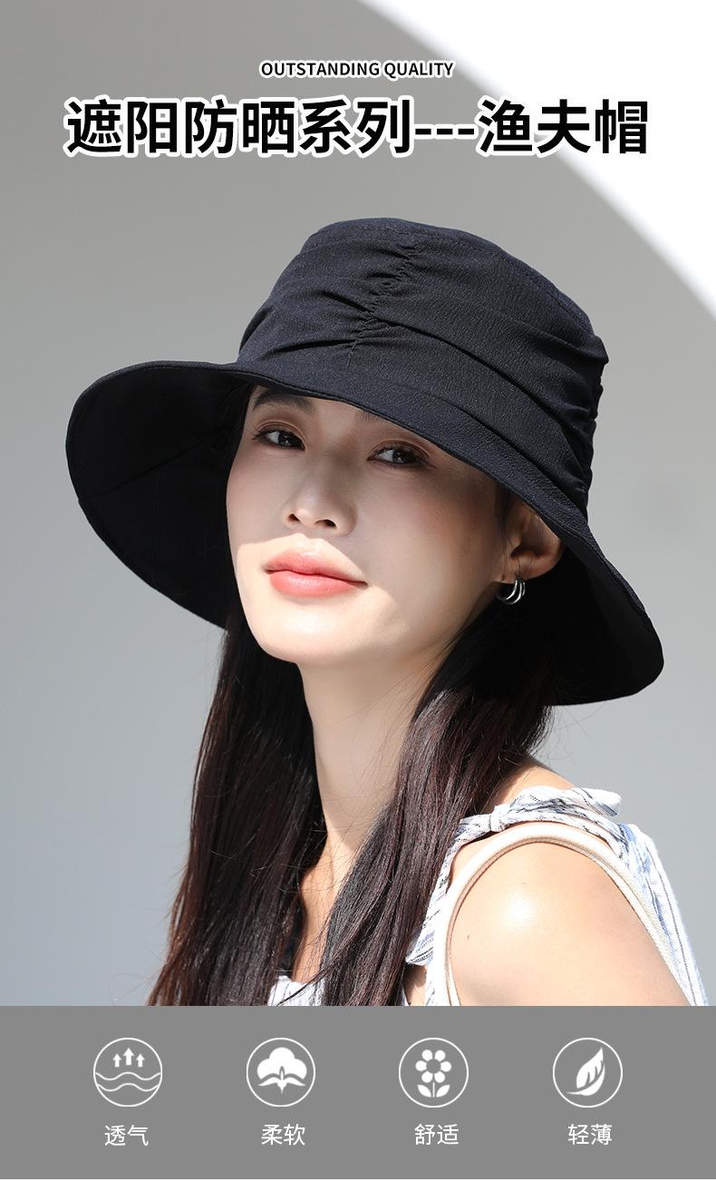 Sombrero de pescador de primavera y verano para mujer, sombrero de lavabo de estilo coreano con aspecto de cara que combina con todo, sombrero de protección solar de moda con almacenamiento plegable y plisado de estilo europeo y americano.
