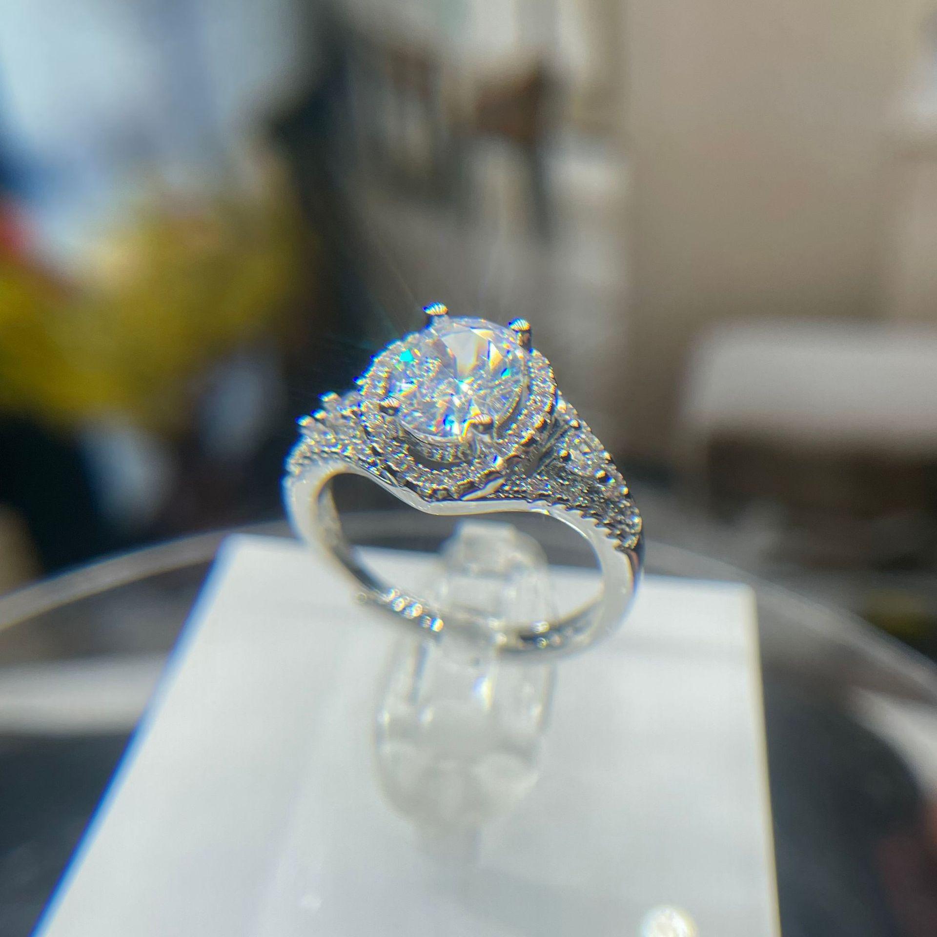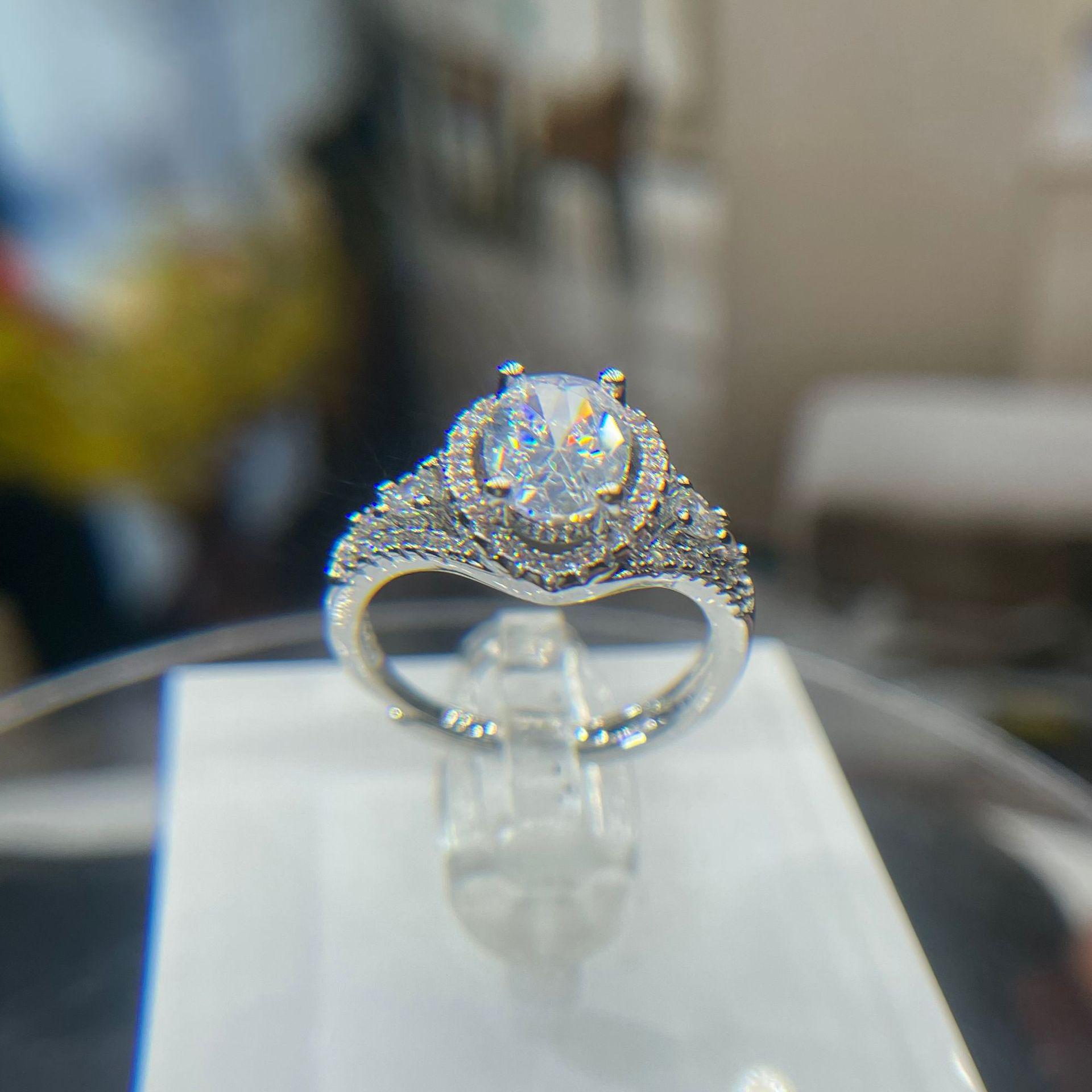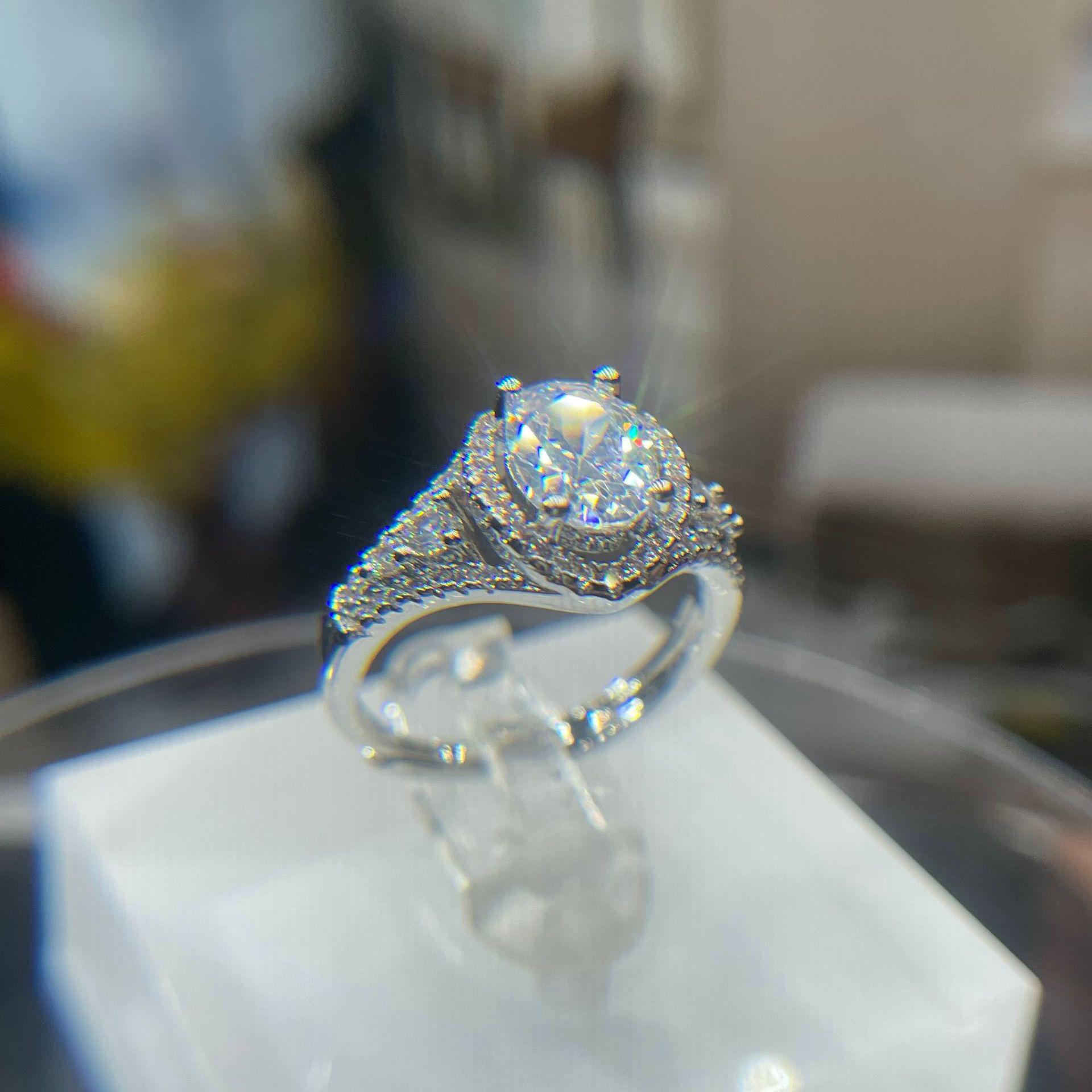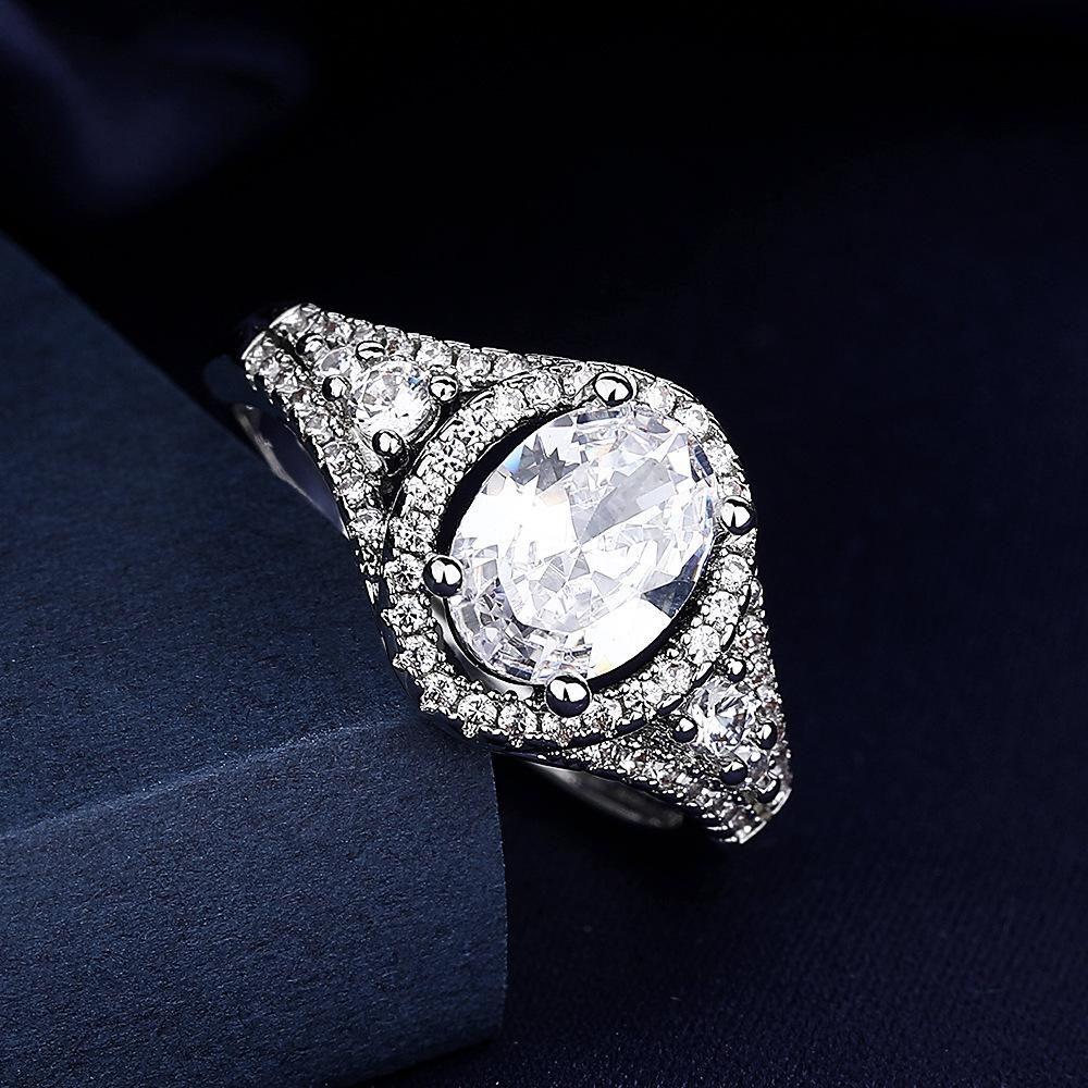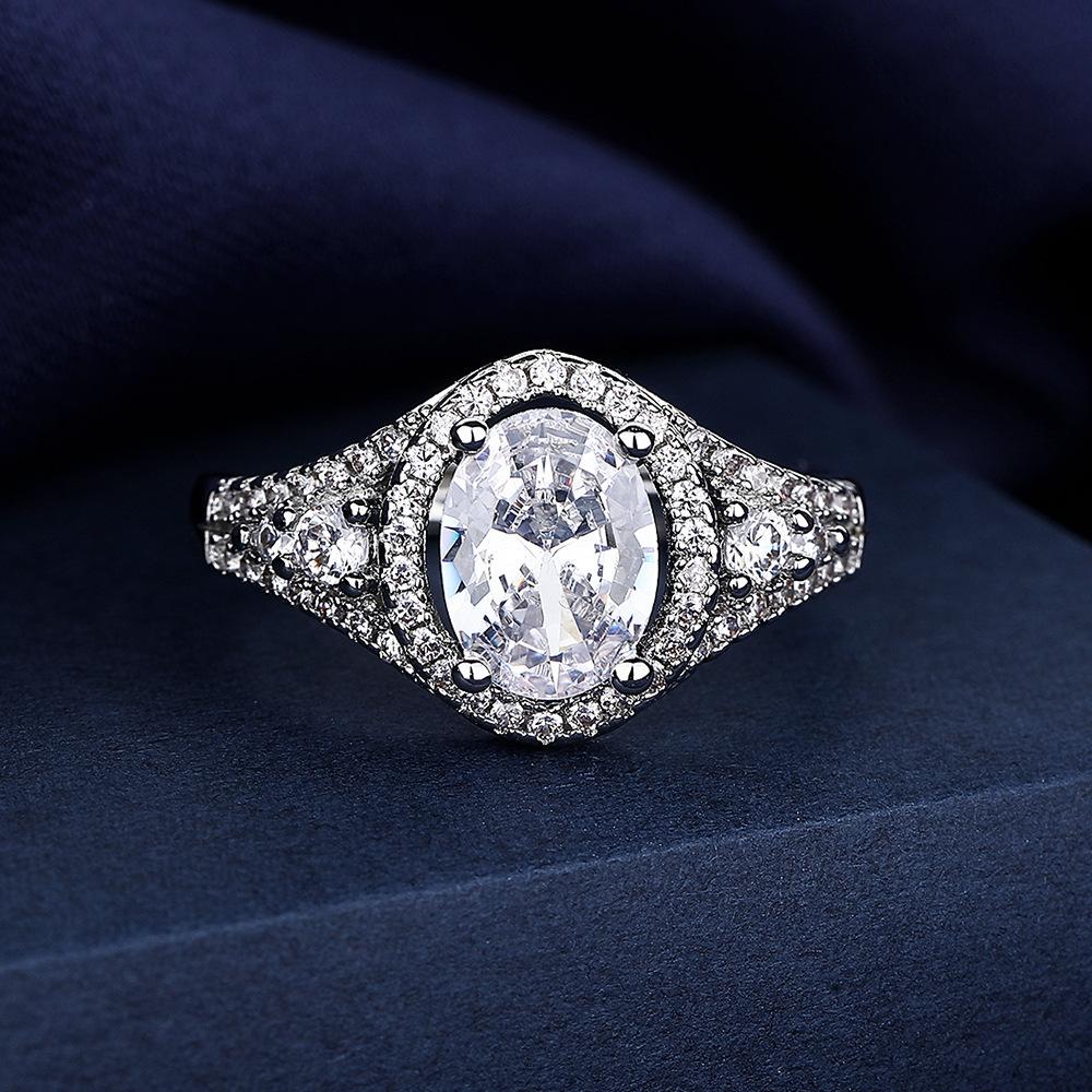 Anillo de diamantes redondos en forma de huevo de moda europea y americana transfronteriza Hao engastado con circonio temperamento de moda para damas anillo de bodas al por mayor