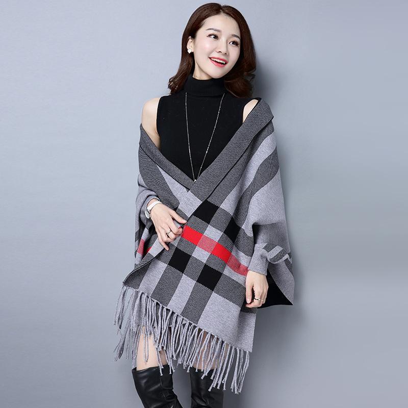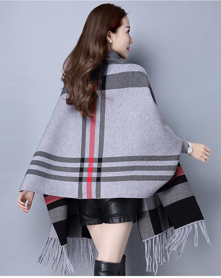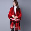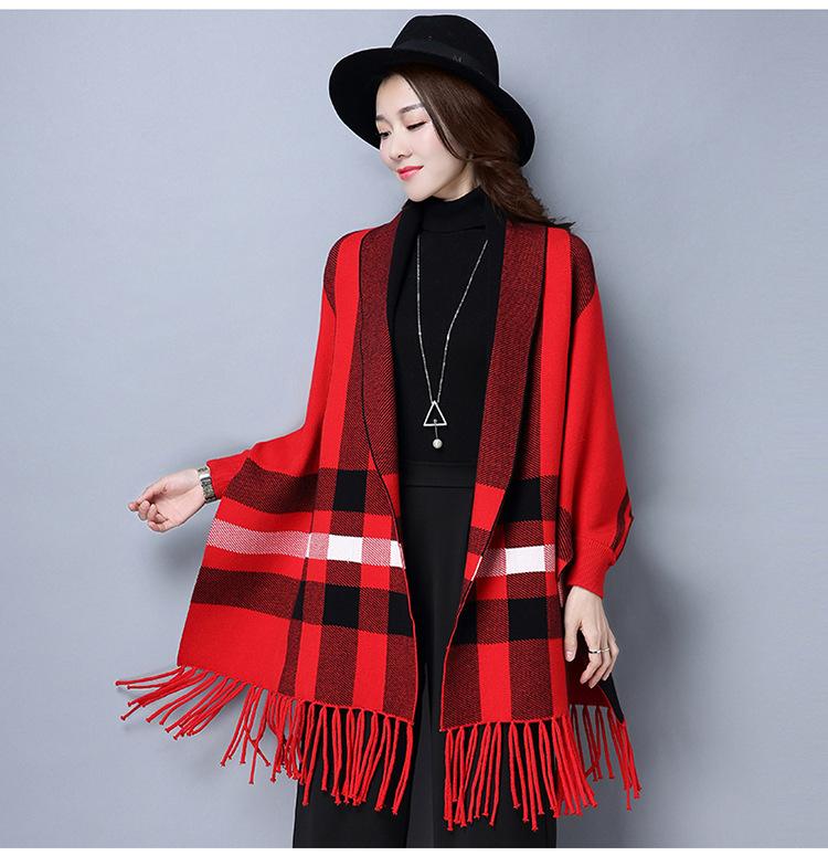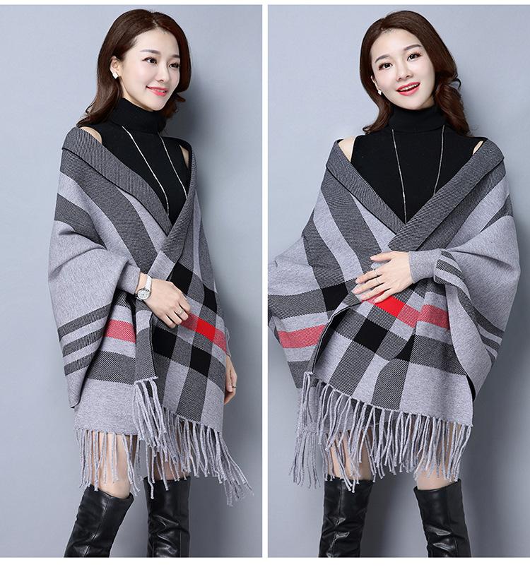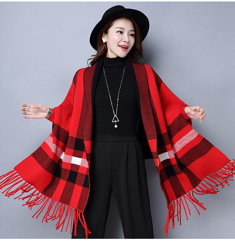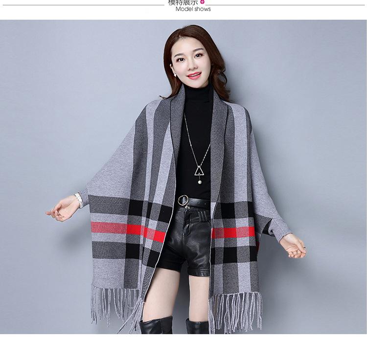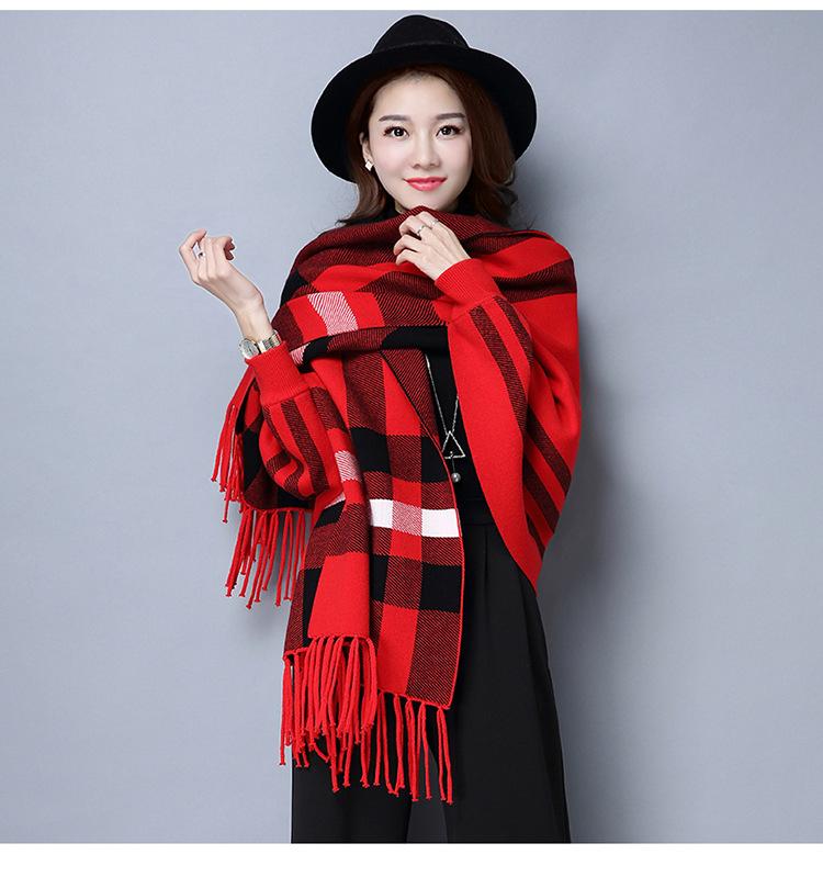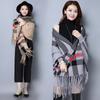 Bufanda de cachemira con mangas para mujer, capa gruesa con borlas a rayas, chal combinable para otoño e invierno, chaqueta de lana tejida