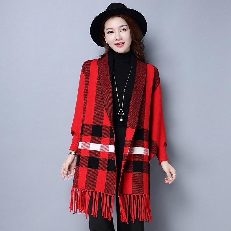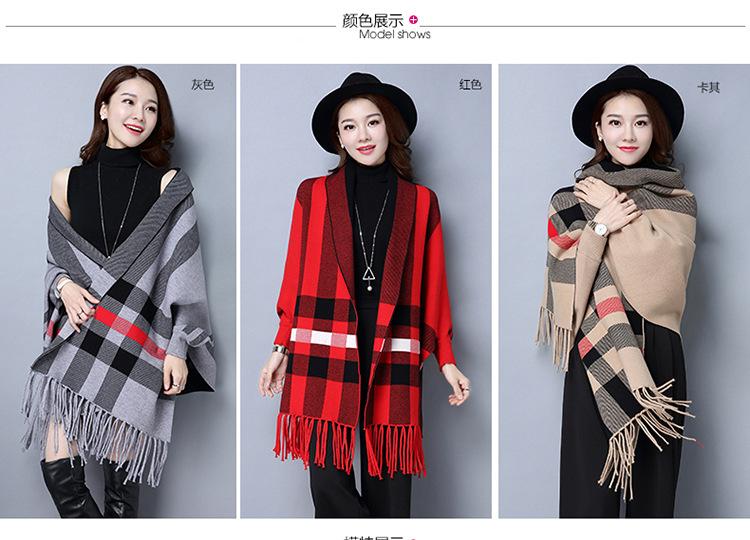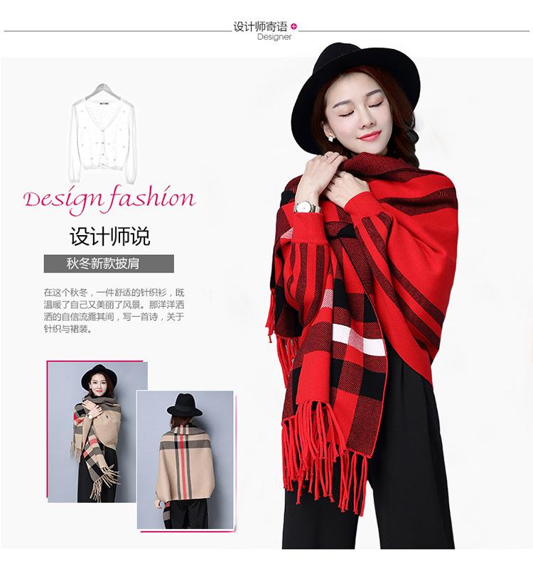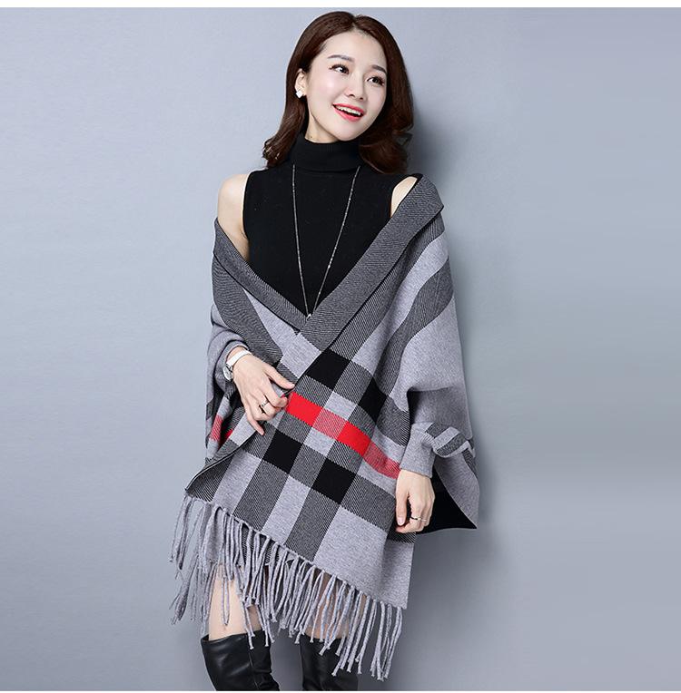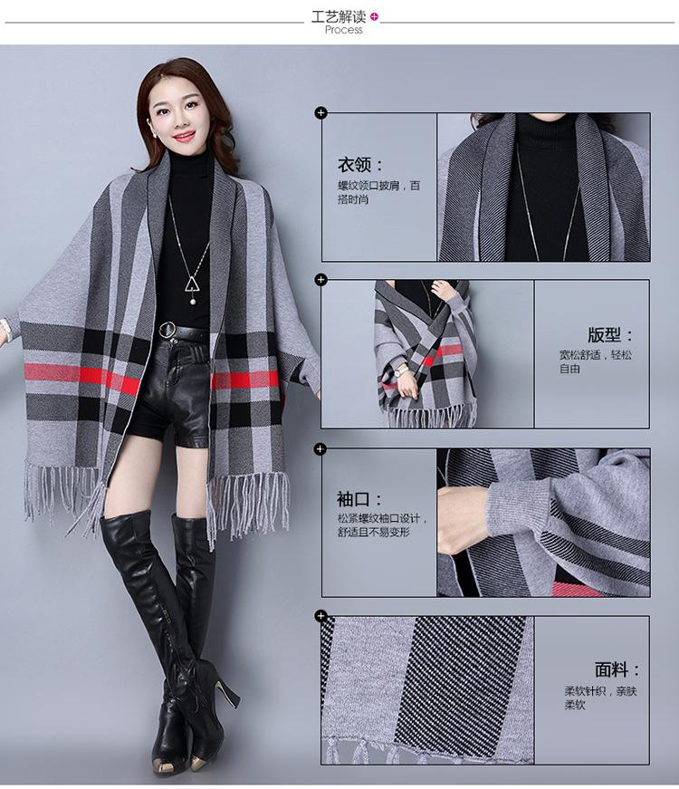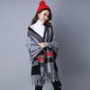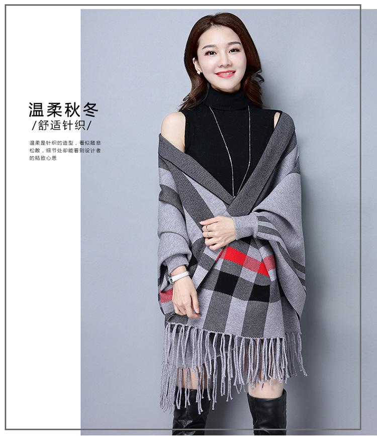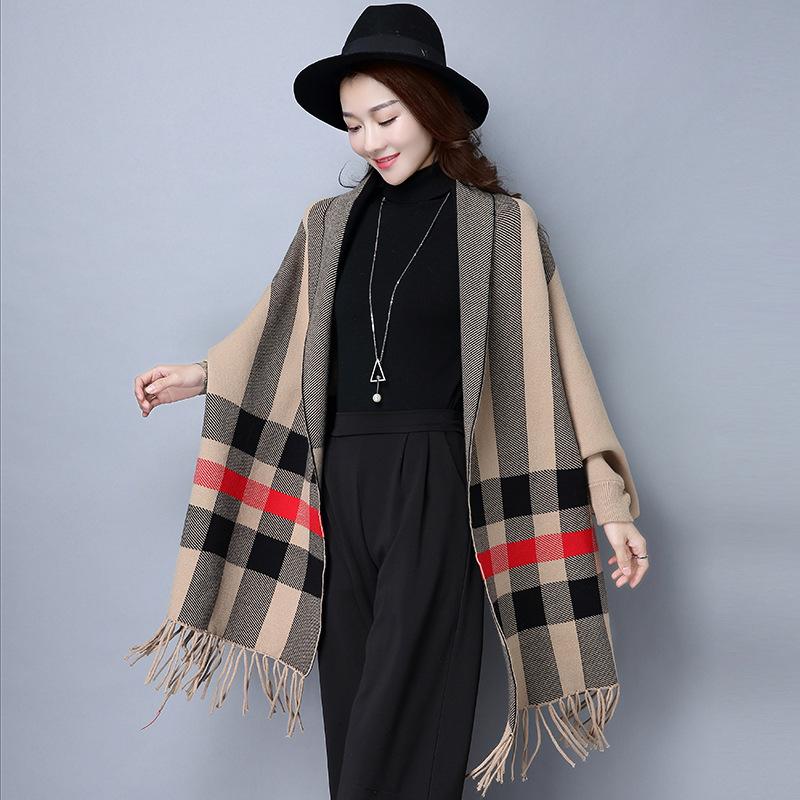 Bufanda de cachemira con mangas para mujer, capa gruesa con borlas a rayas, chal combinable para otoño e invierno, chaqueta de lana tejida
