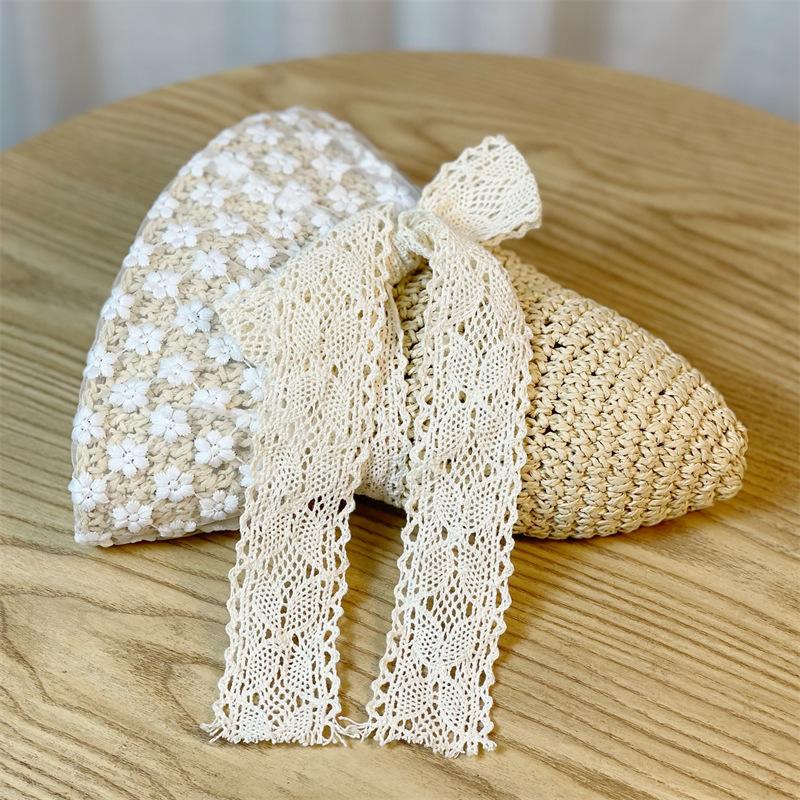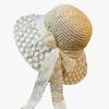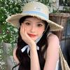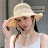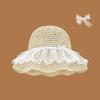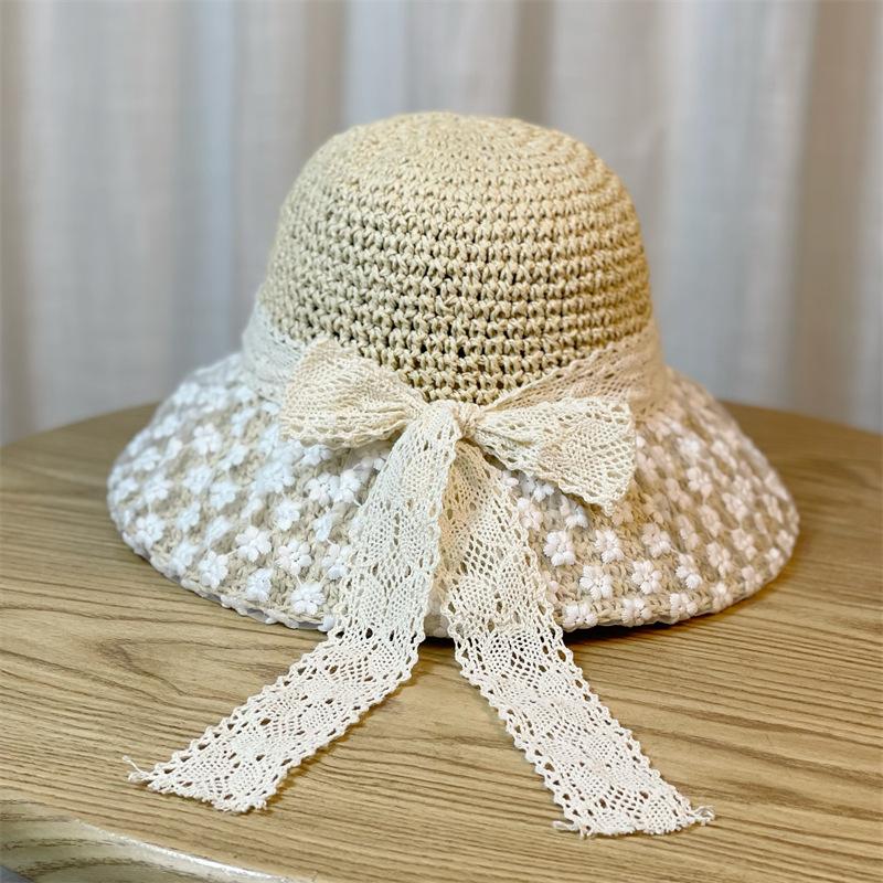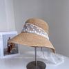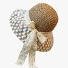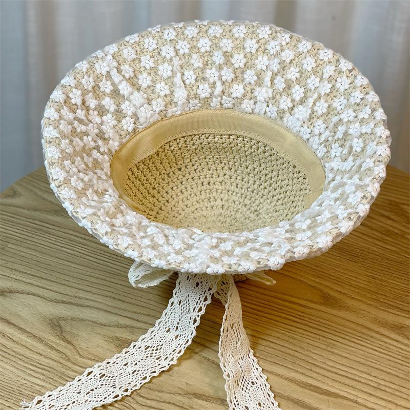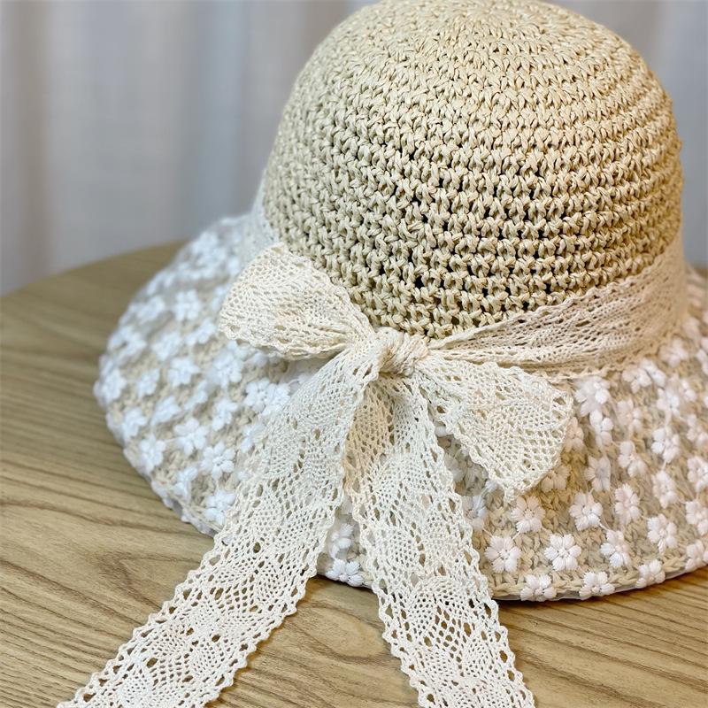 Sombrero de Paja Nuevo de Verano para Playa para Mujer con Ala Ancha, Paja, Cinta de Encaje Dulce, Parasol de Alta Gama, Sombrero de Pescador, Protección Solar