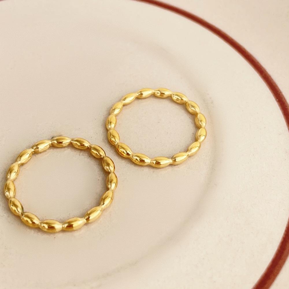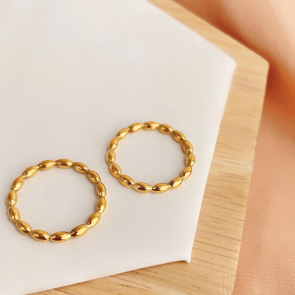 Anillo Simple Ins de Frijol Chapado en Oro de 18k Anillo de Acero de Titanio para Mujeres No se Desvanece Venta Directa al por Mayor de Fábrica Joker para Uso en Capas