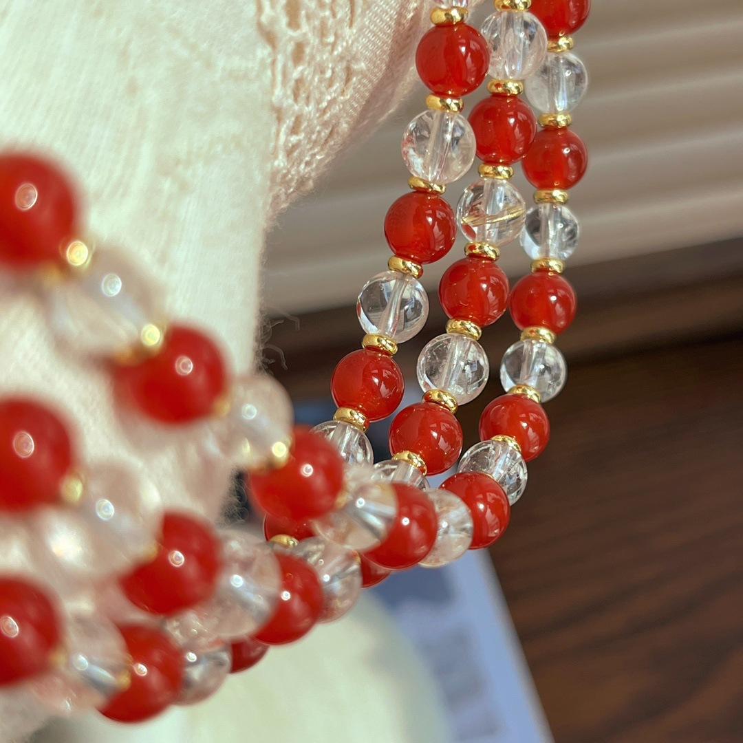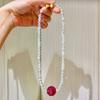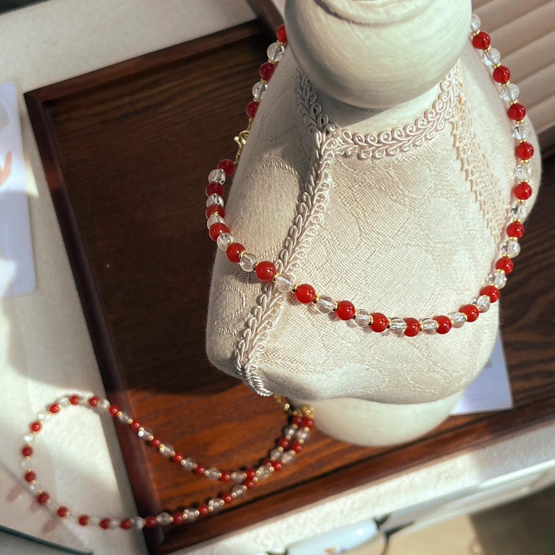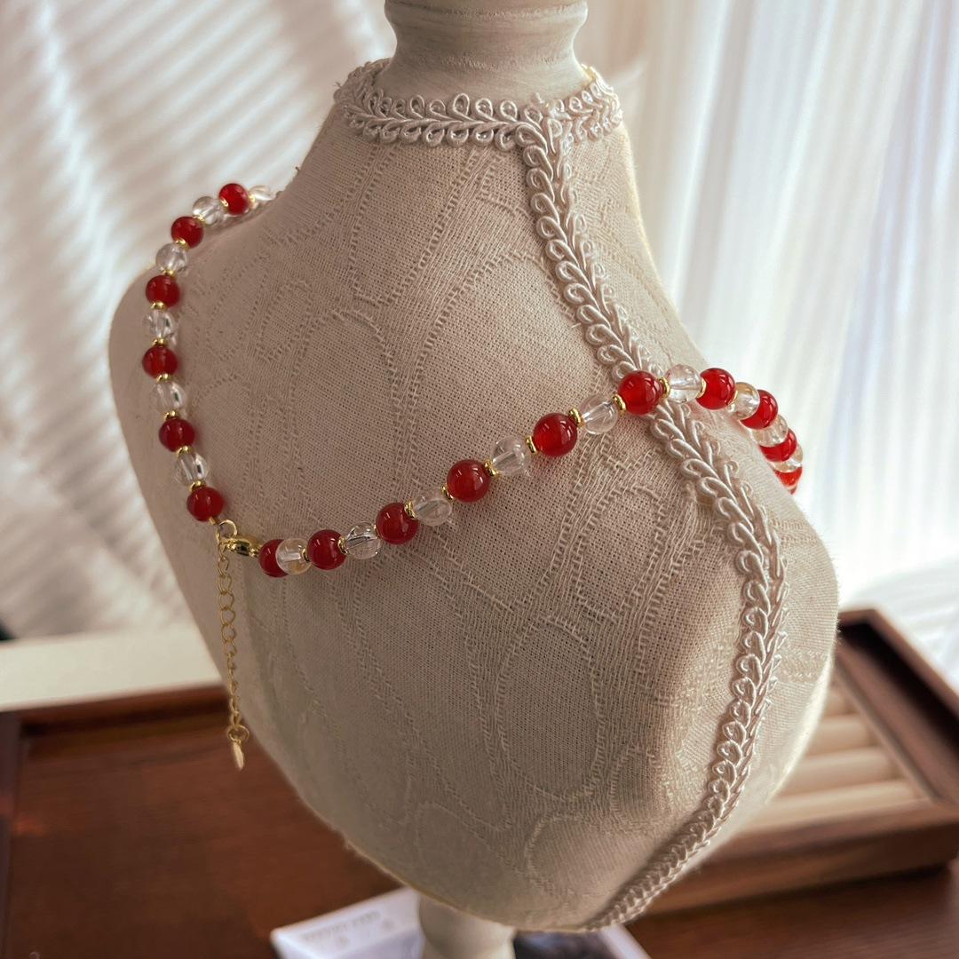 Collar con diseño de contraste de color de calcedonia roja natural y cristal blanco natural, cadena para clavícula y cuello.