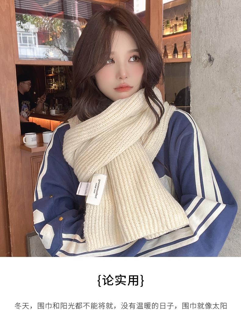 Bufanda de lana tejida de color sólido estilo coreano para mujer, de invierno, moderna, combina con todo, para otoño e invierno, para estudiantes, gruesa y cálida.