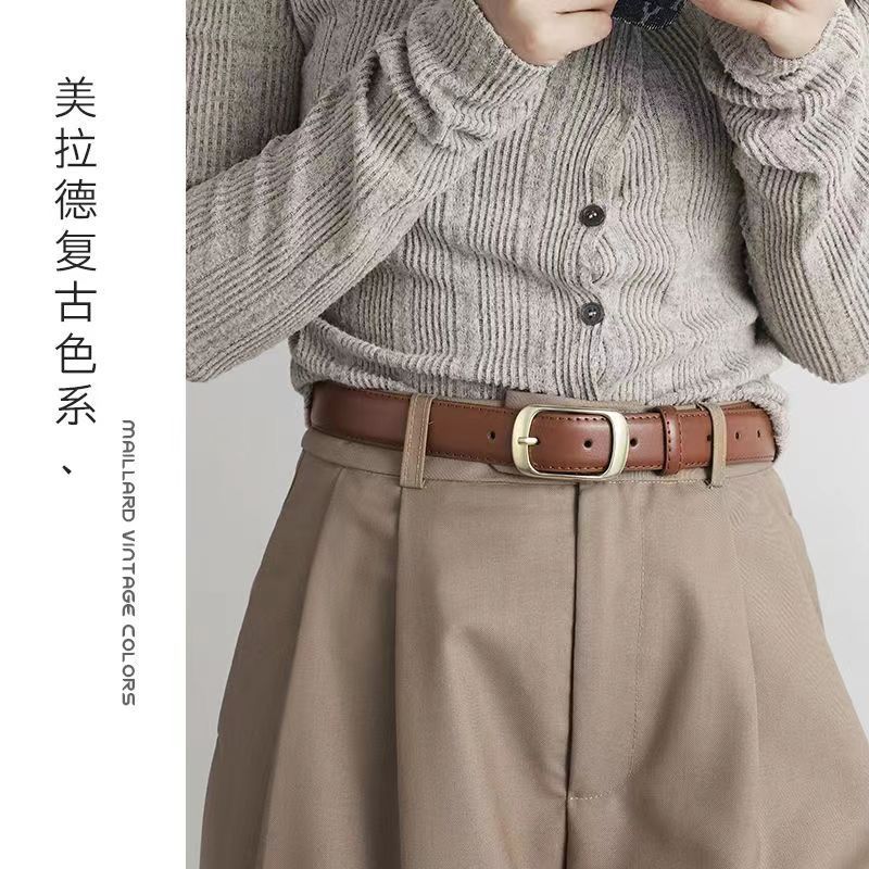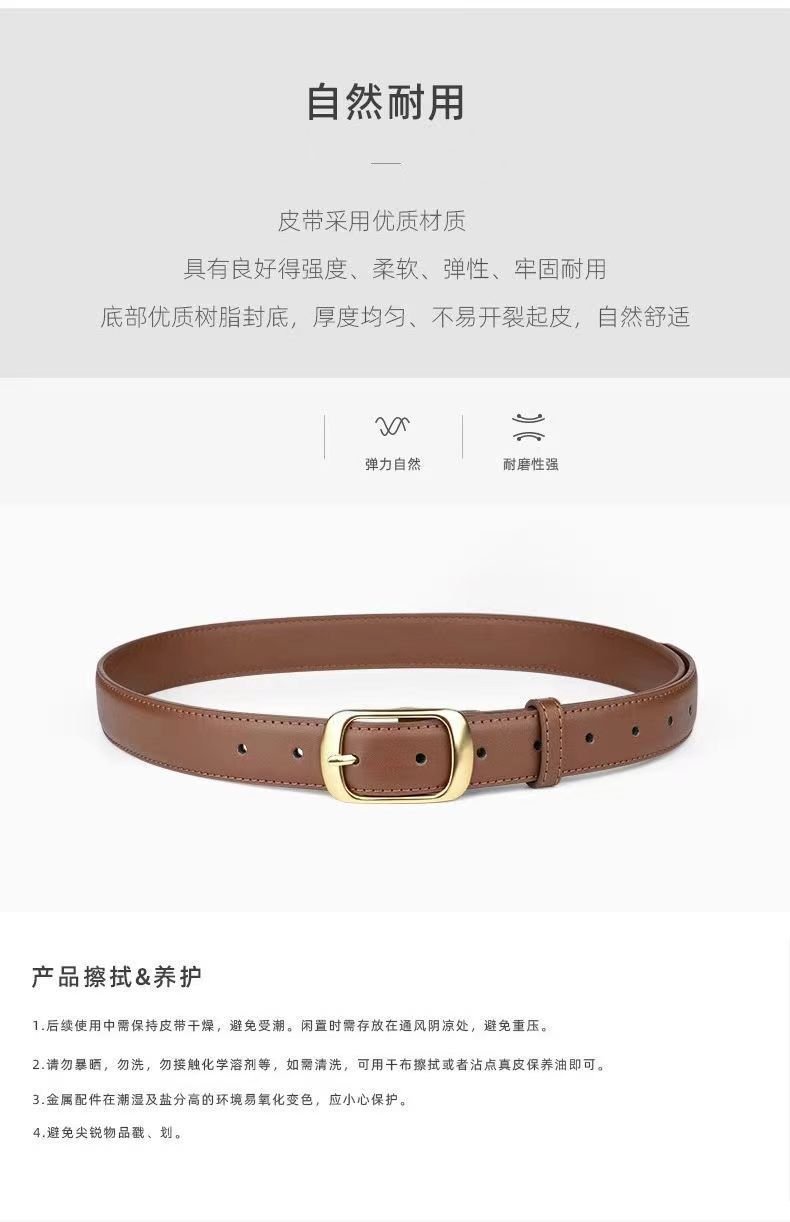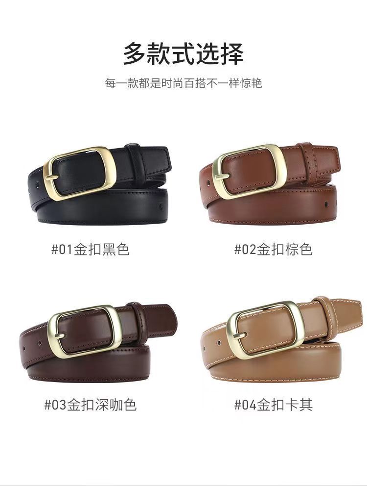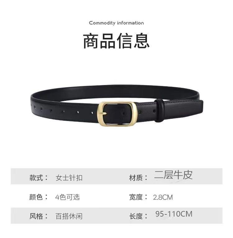 Cinturón para mujer nuevo pantalón hebilla de pin vestido falda decorativa casual combinable piel de vaca cinturón delgado para mujer en stock