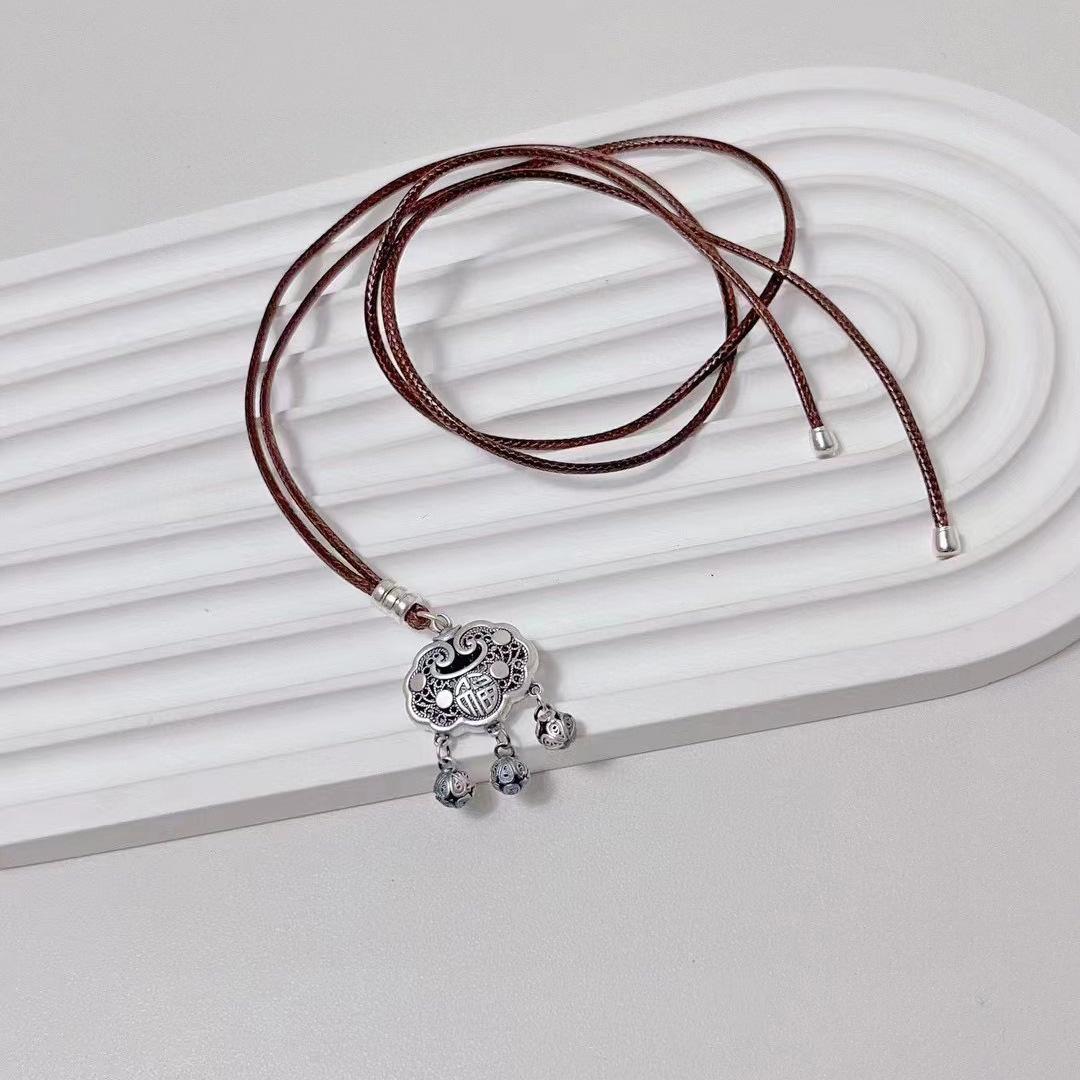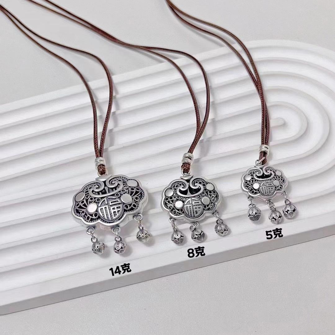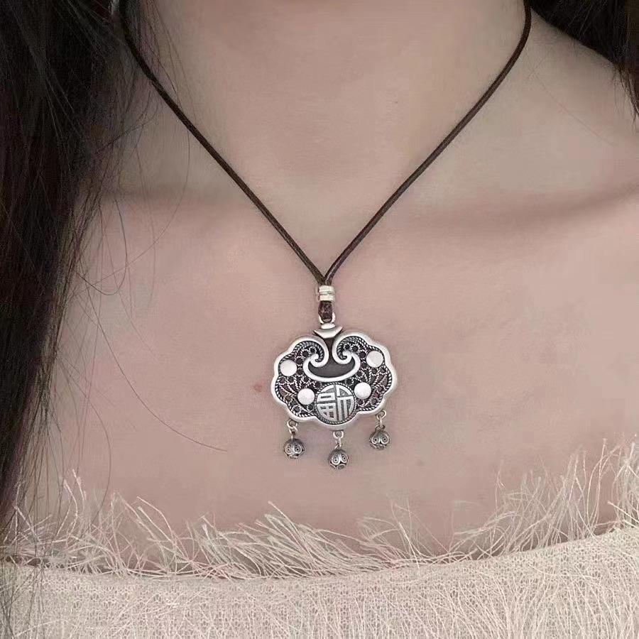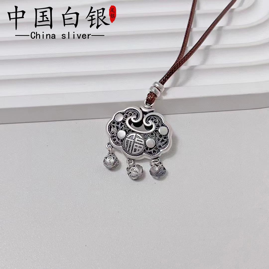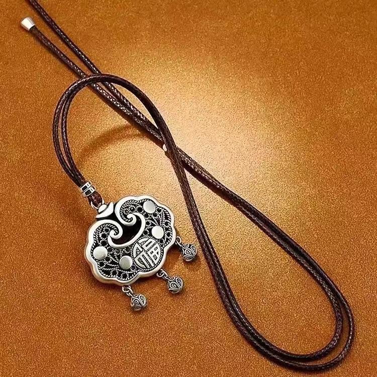 Collar con colgante de plata pura s999 con cerradura hueca, de larga duración, estilo vintage, para adultos, bebés y niños, cadena de plata para novias.