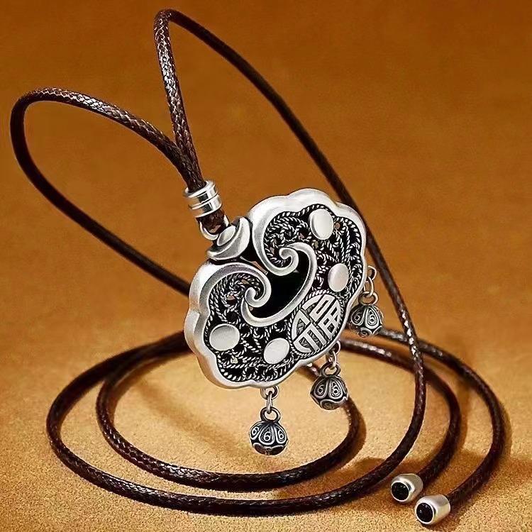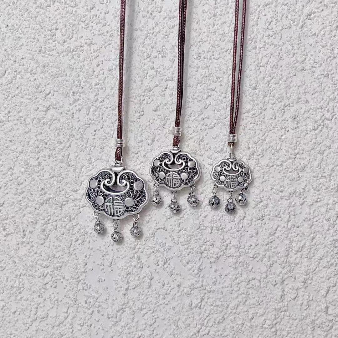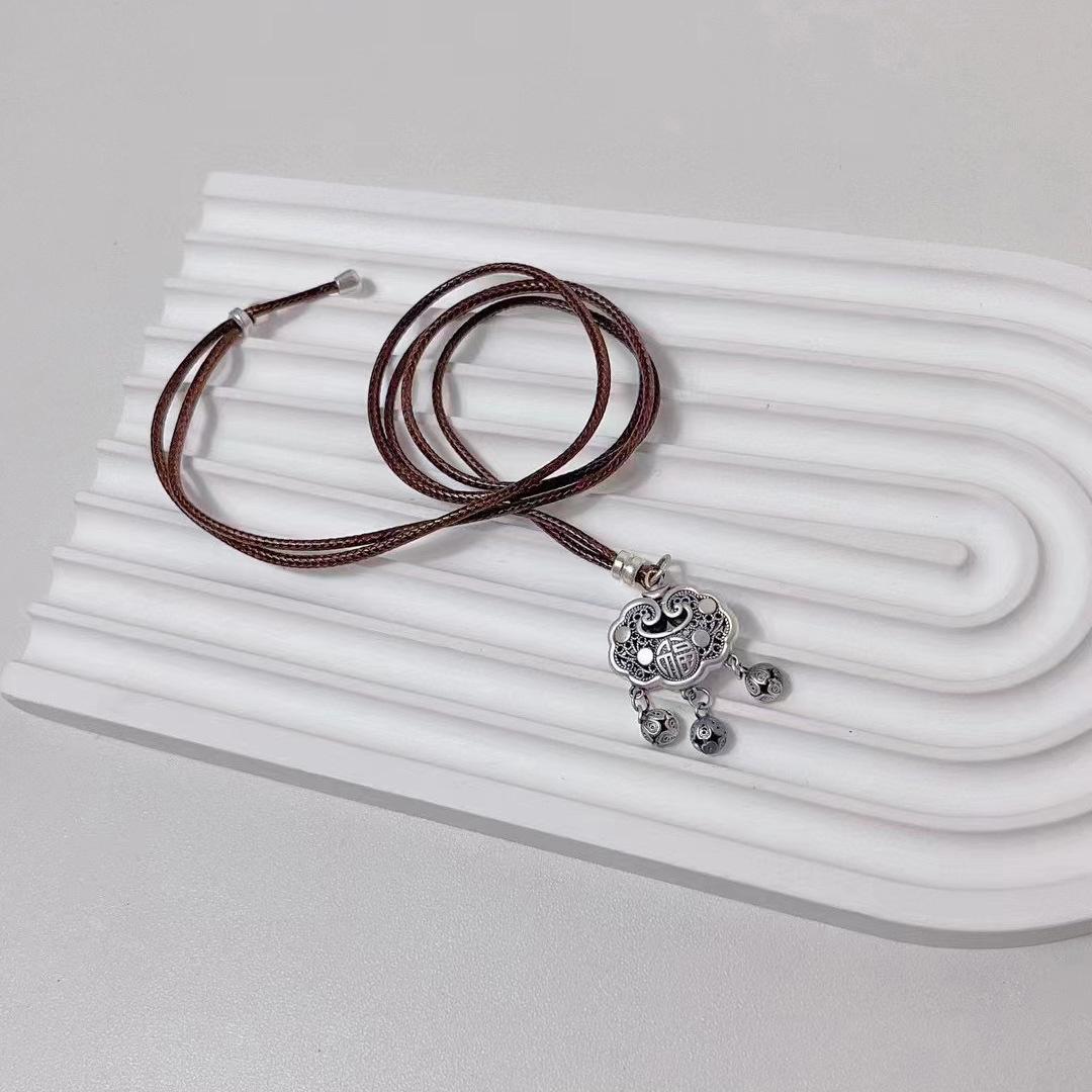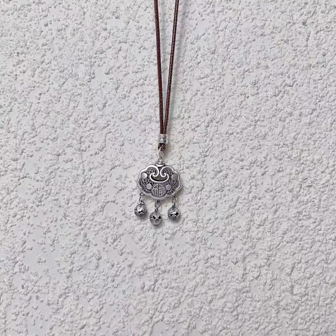 Collar con colgante de plata pura s999 con cerradura hueca, de larga duración, estilo vintage, para adultos, bebés y niños, cadena de plata para novias.