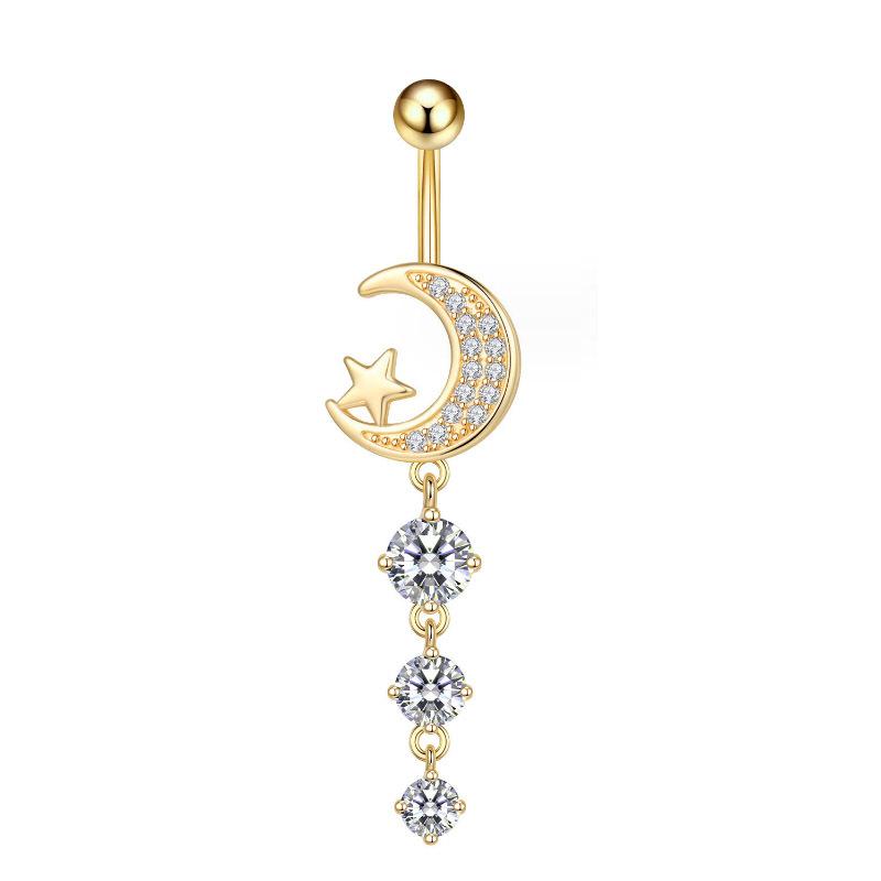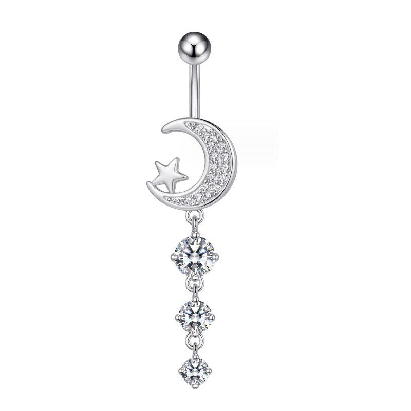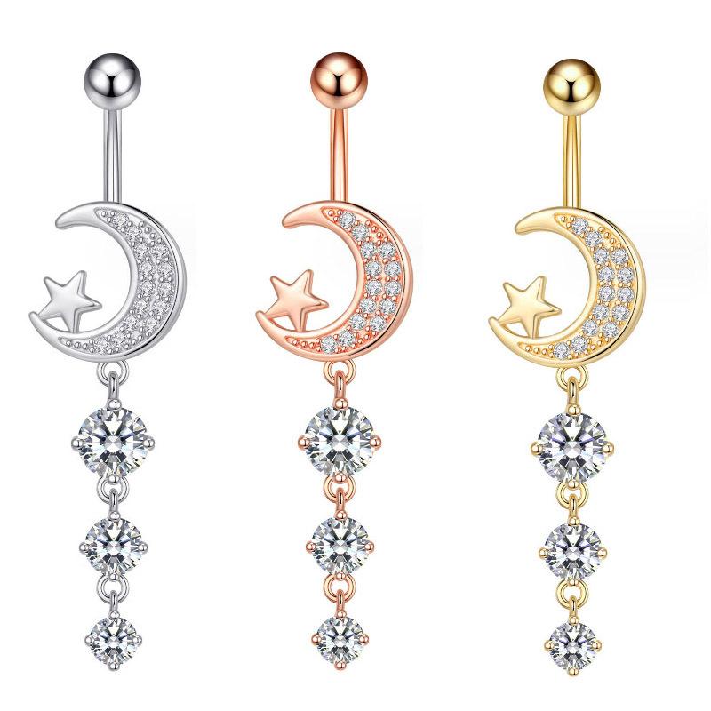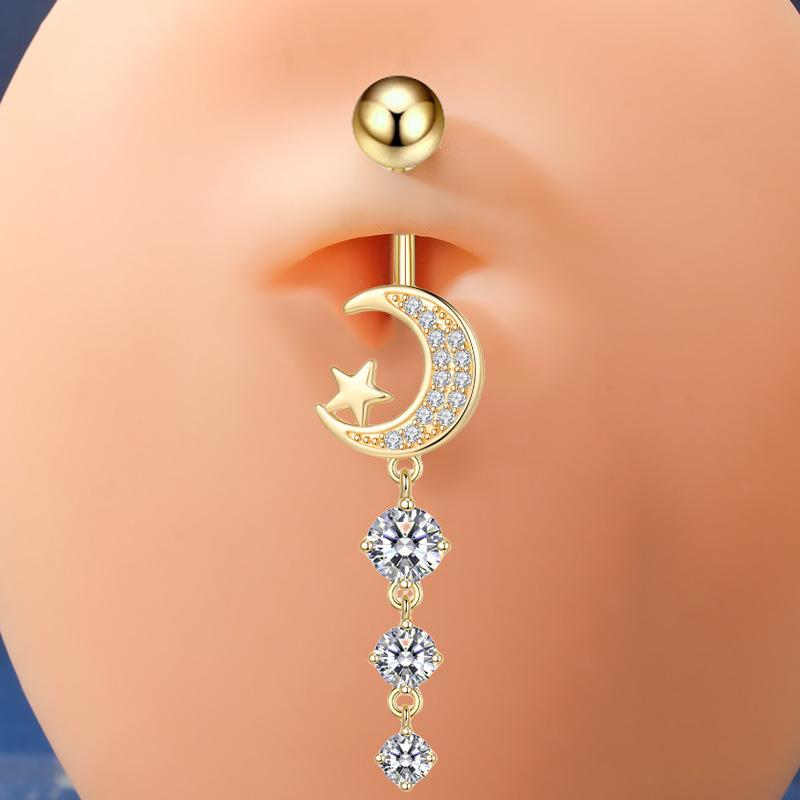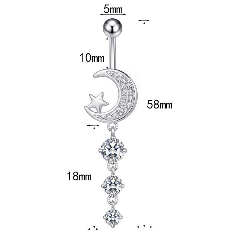 Venta caliente transfronteriza europea y americana, anillo de ombligo de circón de luna nueva, borla, piercing para el ombligo, joyería al por mayor