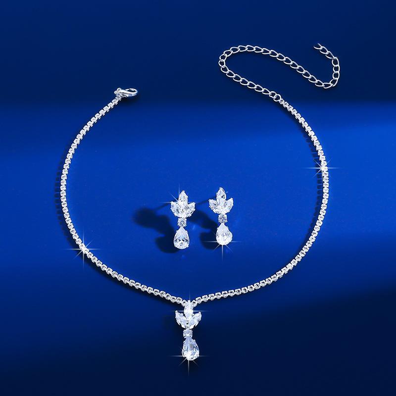 [Nombre]: Conjunto de collar y pendientes de cristales de colores.