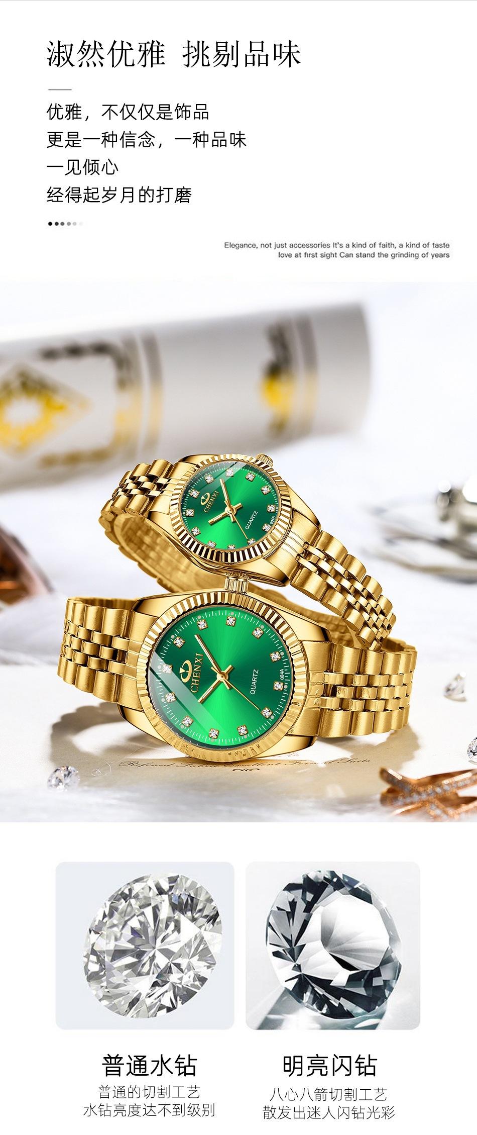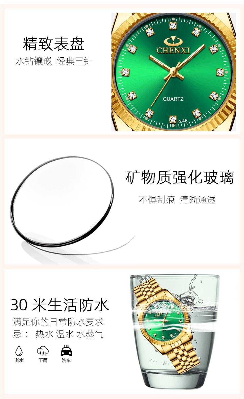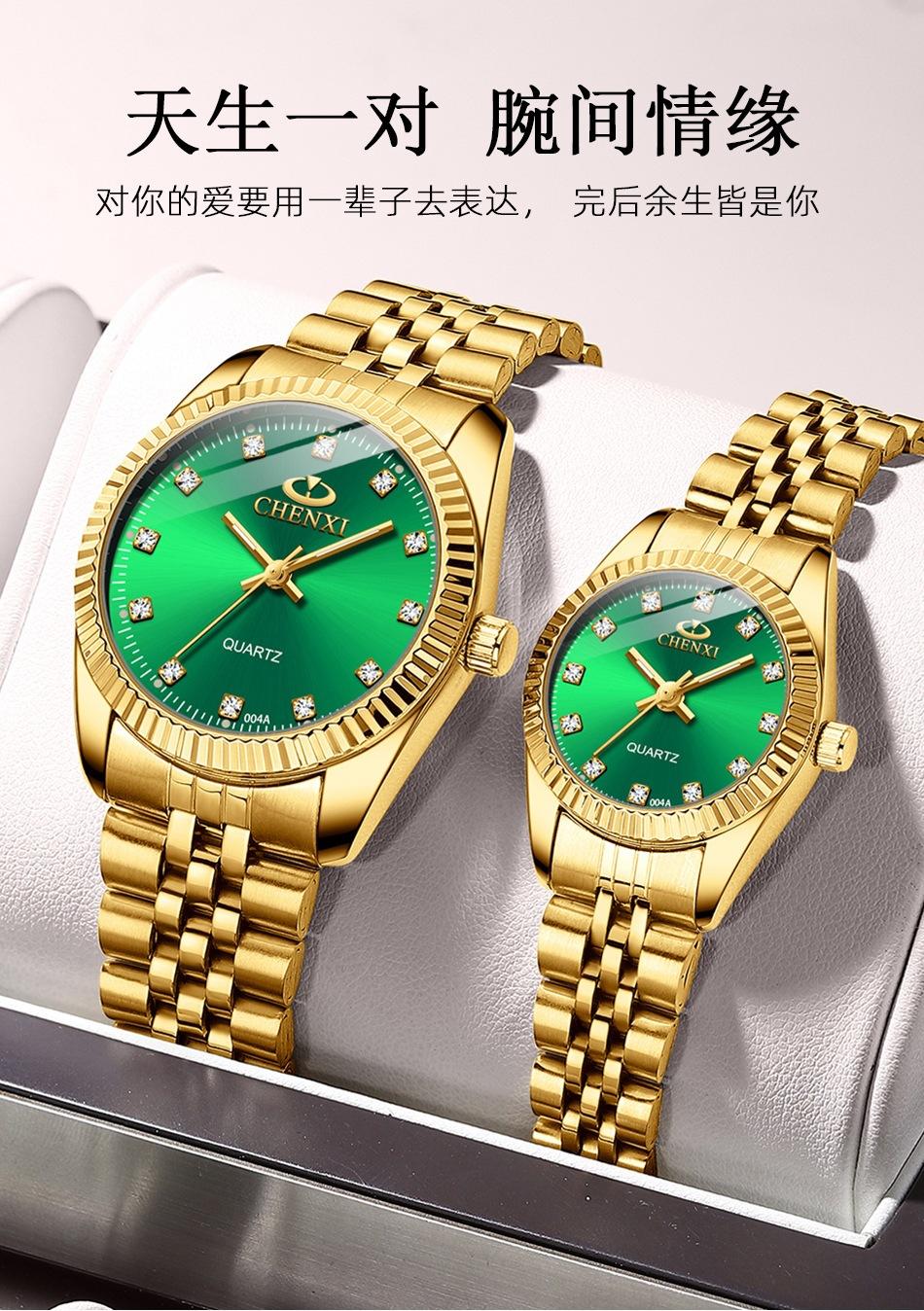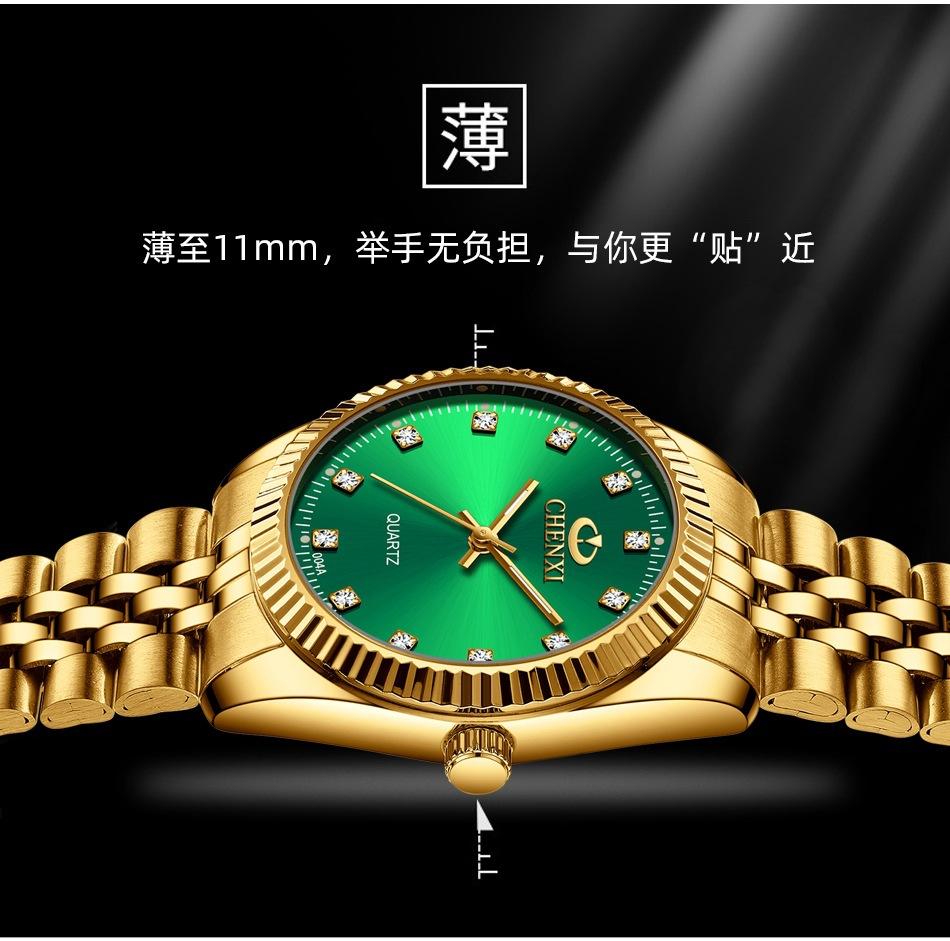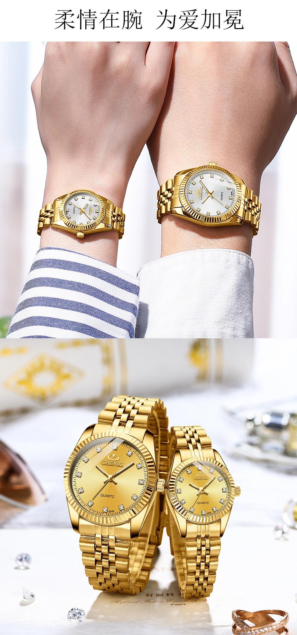 Reloj CHENXI Dawn para hombre, resistente al agua, de negocios, para mujer, dorado, para parejas, 004A