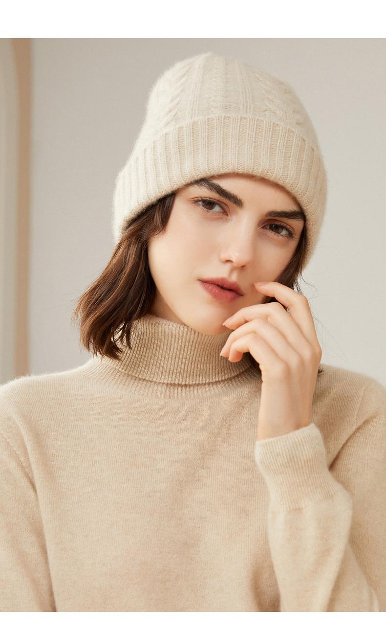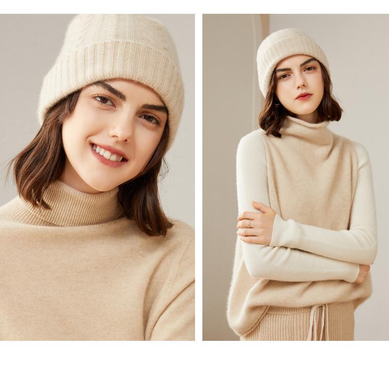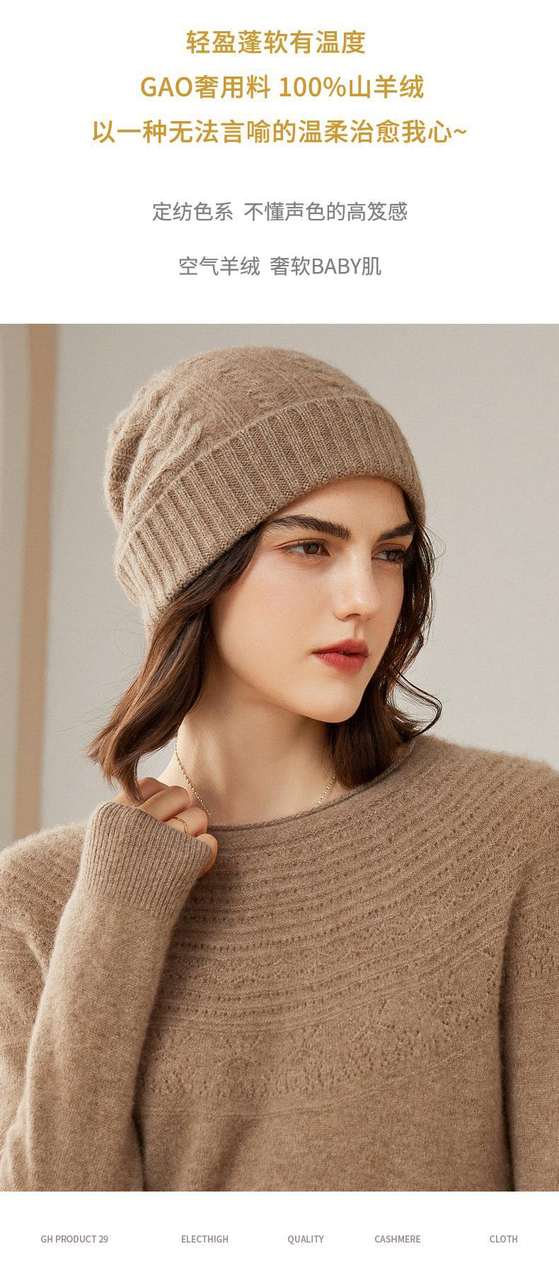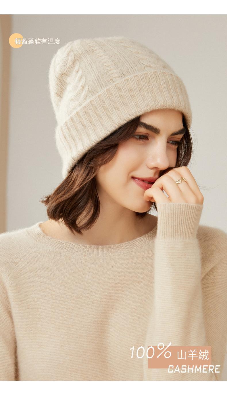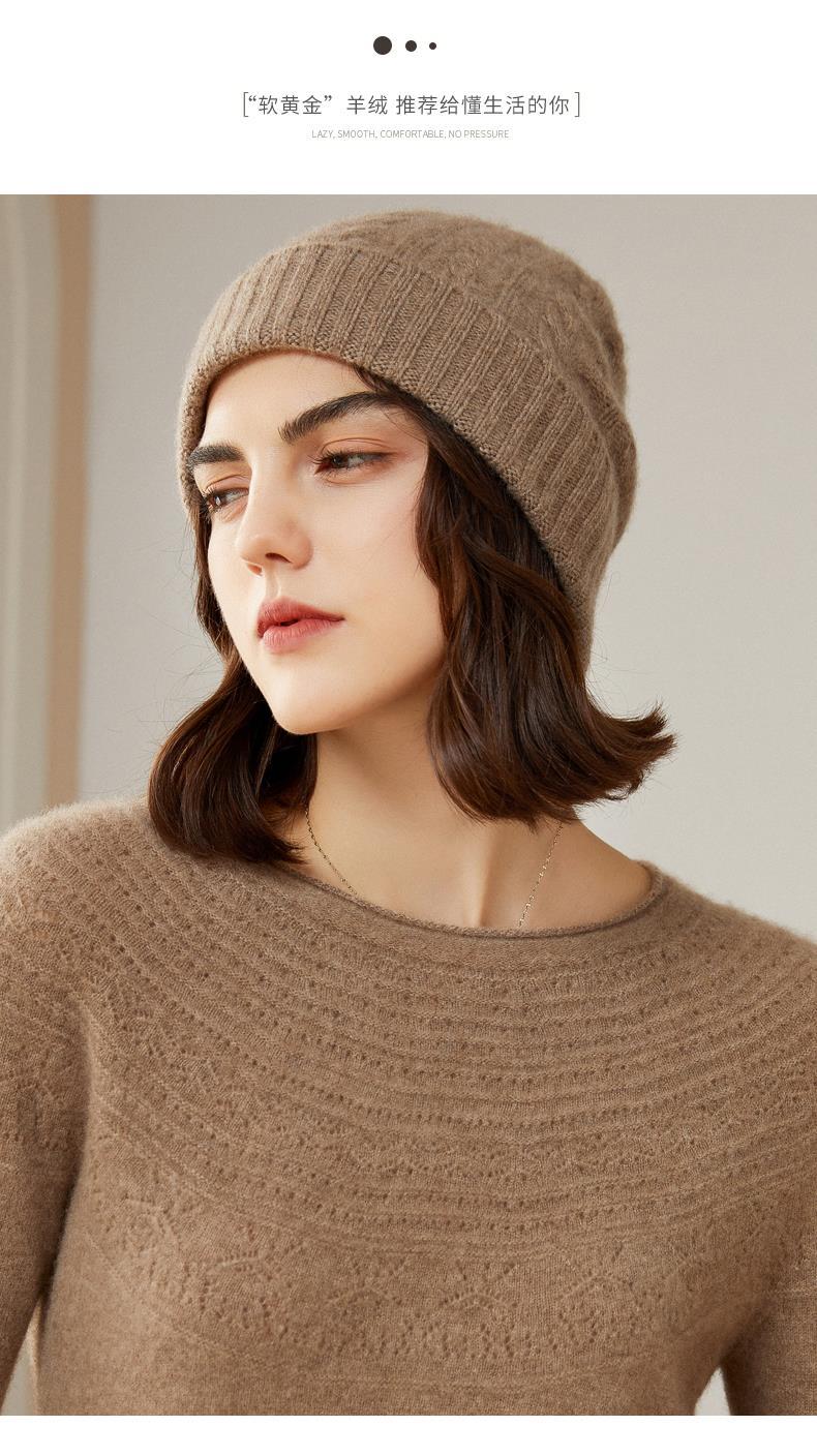 Moda Otoño e Invierno 2025 Nuevo Gorro de Cachemira Pura para Mujer Color Sólido Cálido Casual Domo Tejido Gorro