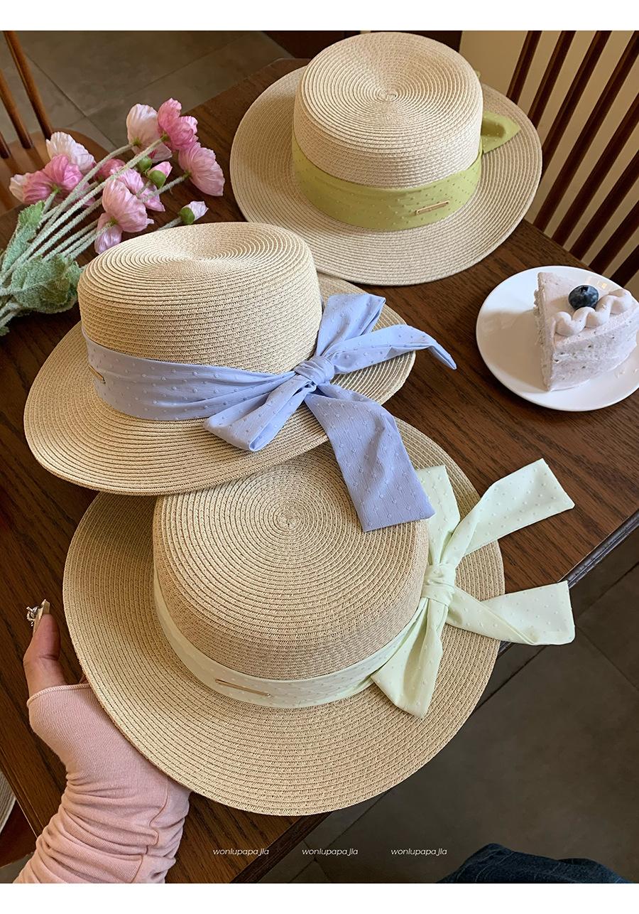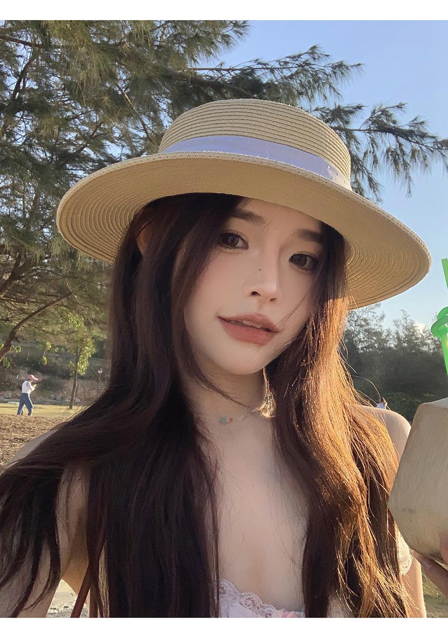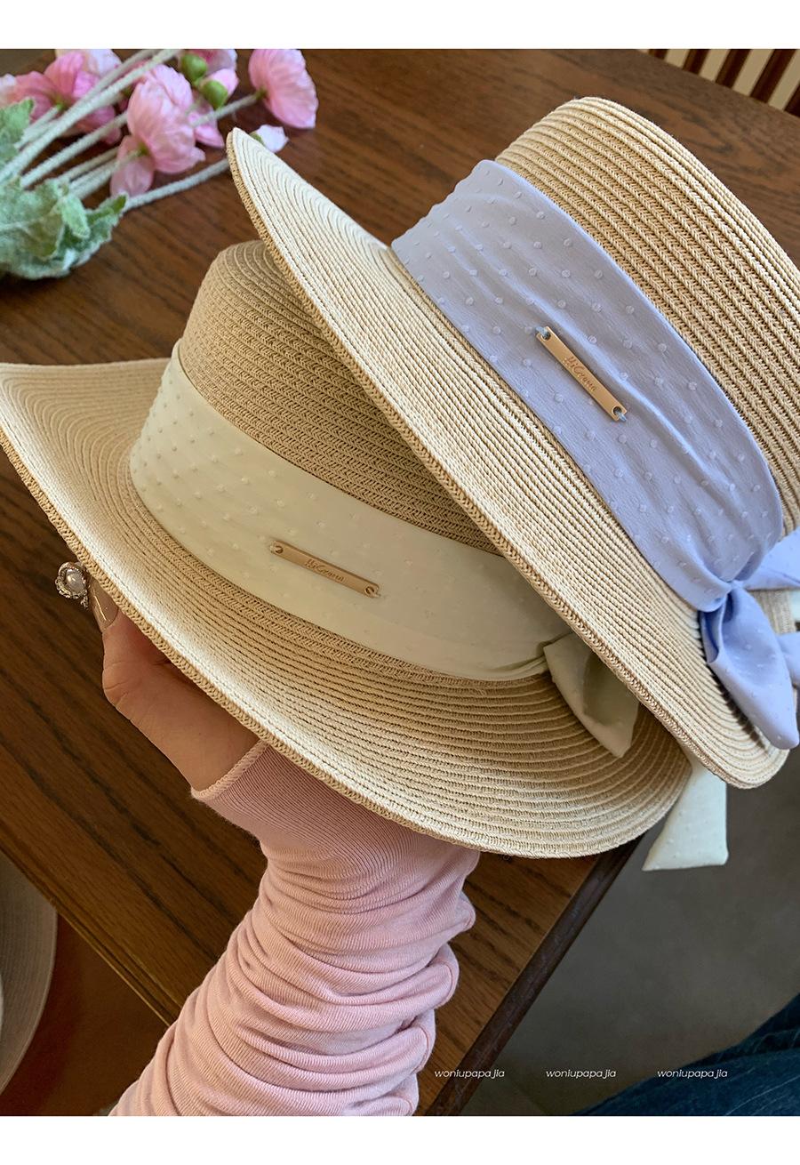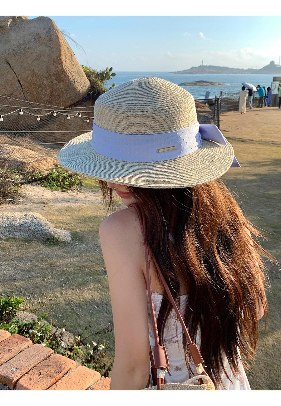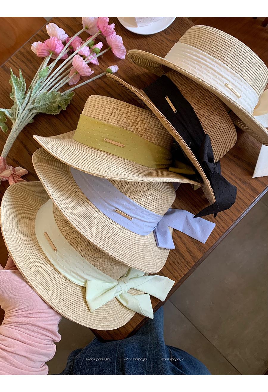 Sombrero de paja con lazo de cinta, sombrero de paja Lafite nuevo de verano para mujer, copa plana, ala ancha, sombrero para protección solar