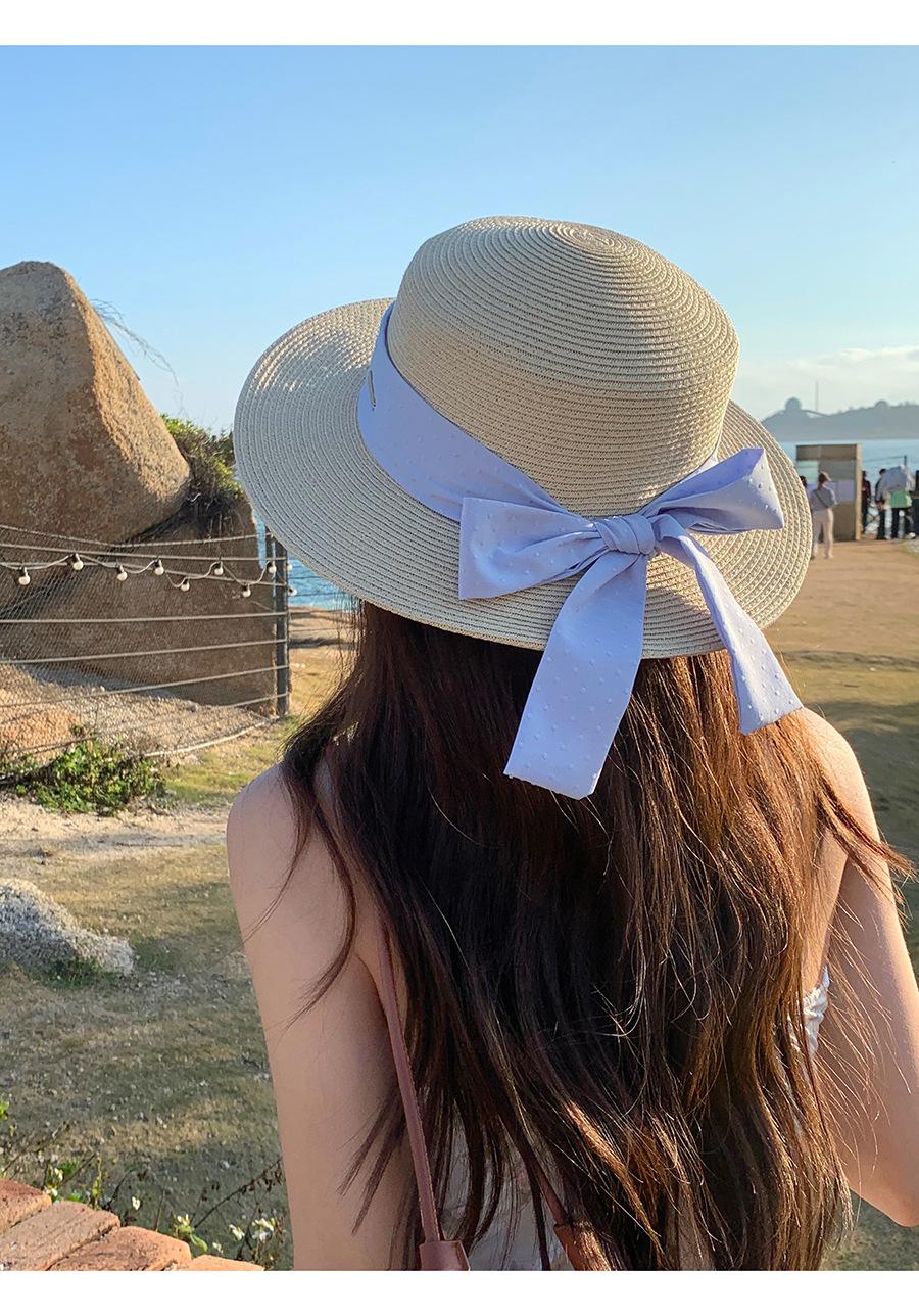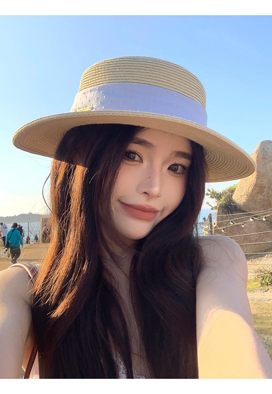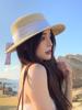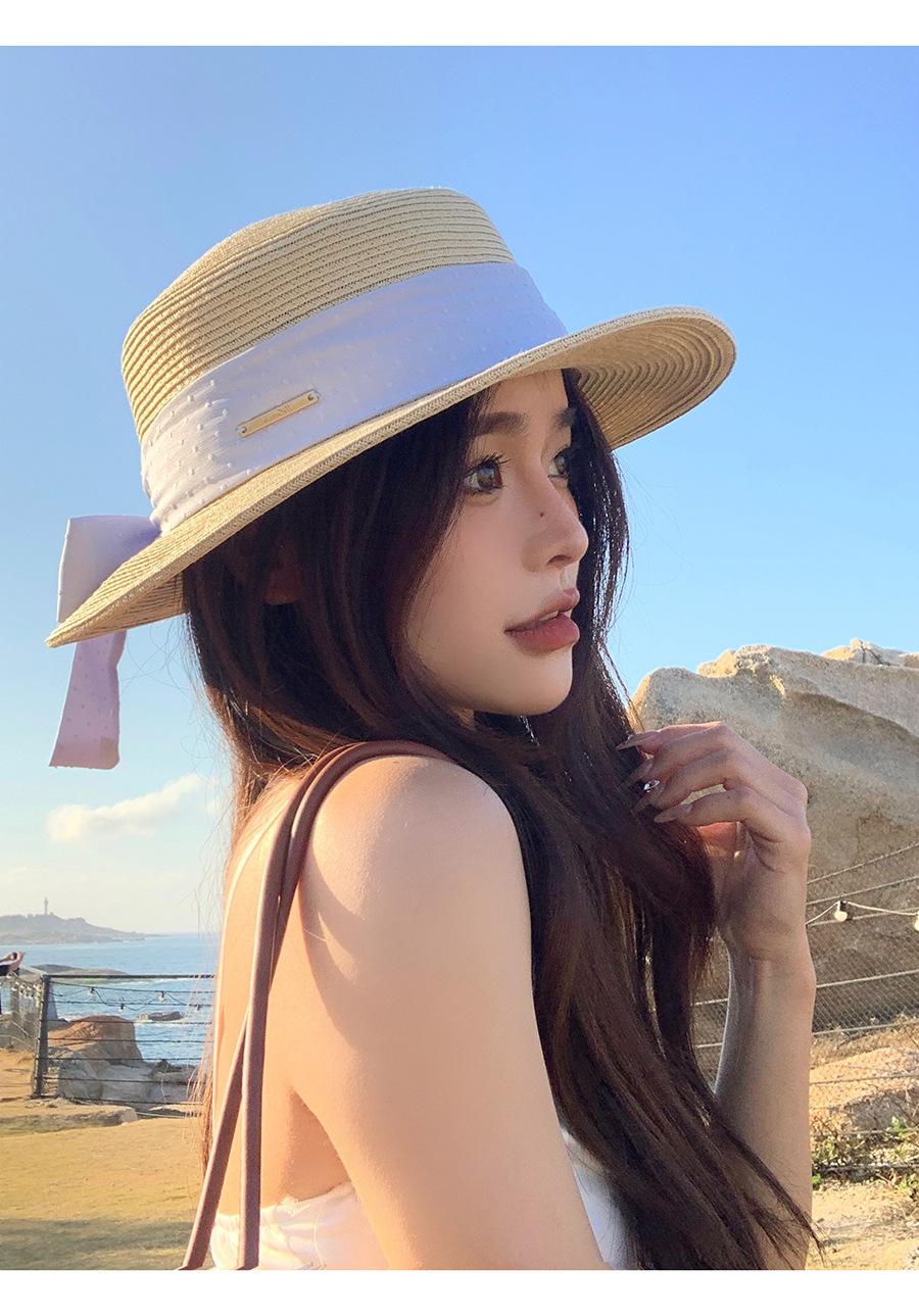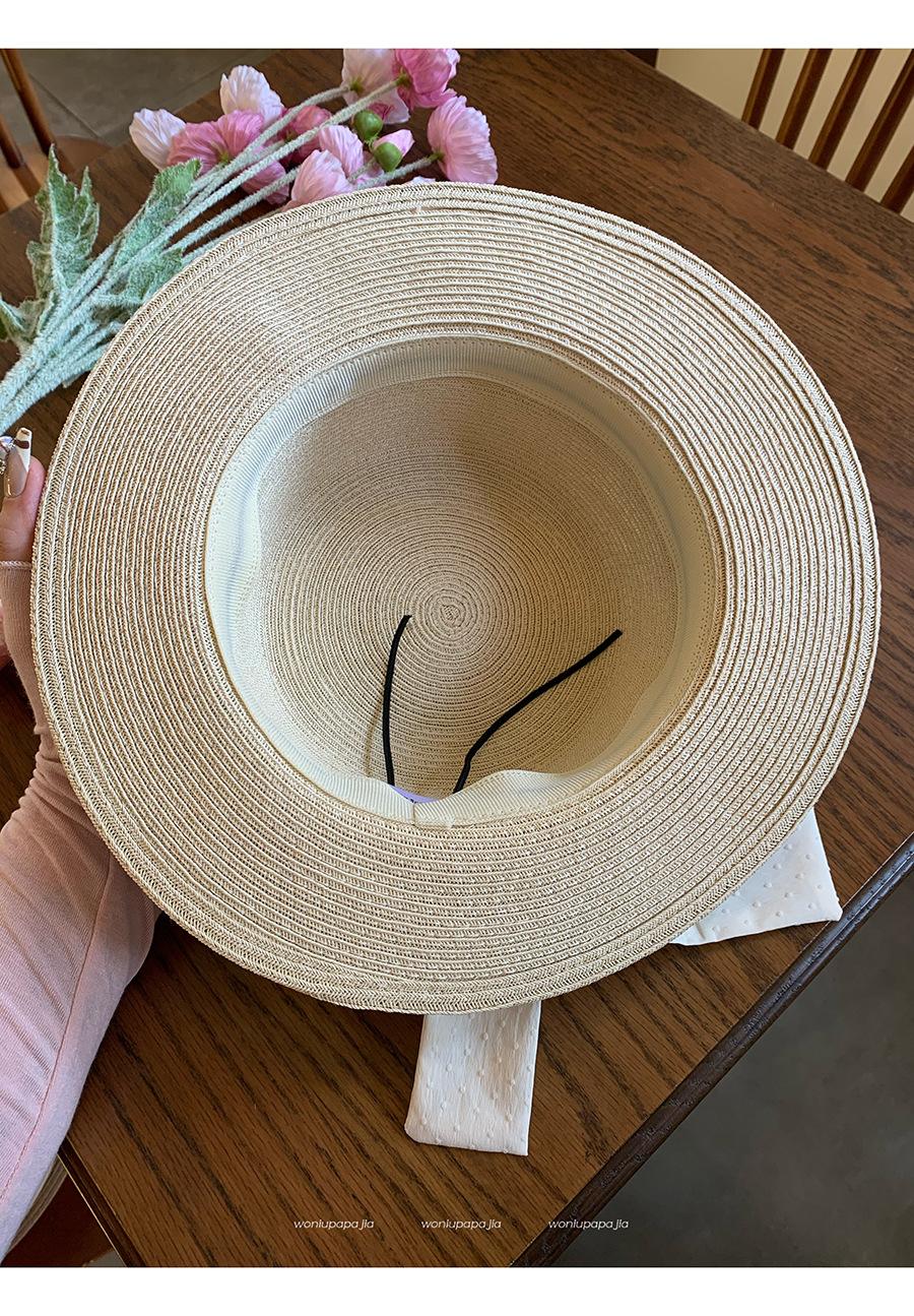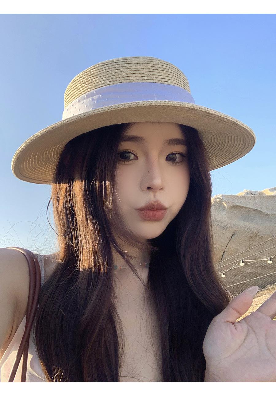 Sombrero de paja con lazo de cinta, sombrero de paja Lafite nuevo de verano para mujer, copa plana, ala ancha, sombrero para protección solar