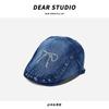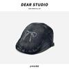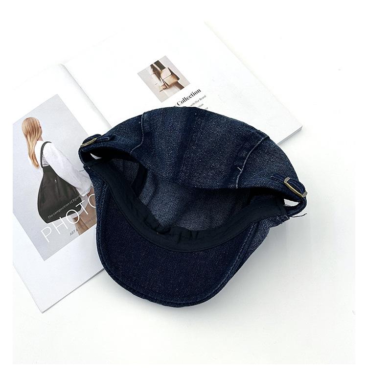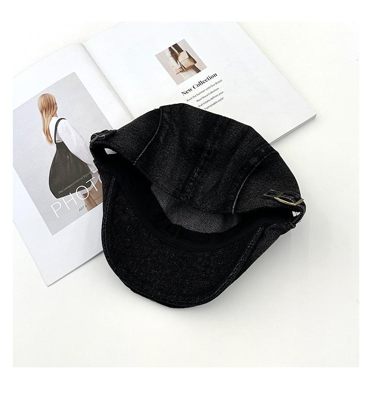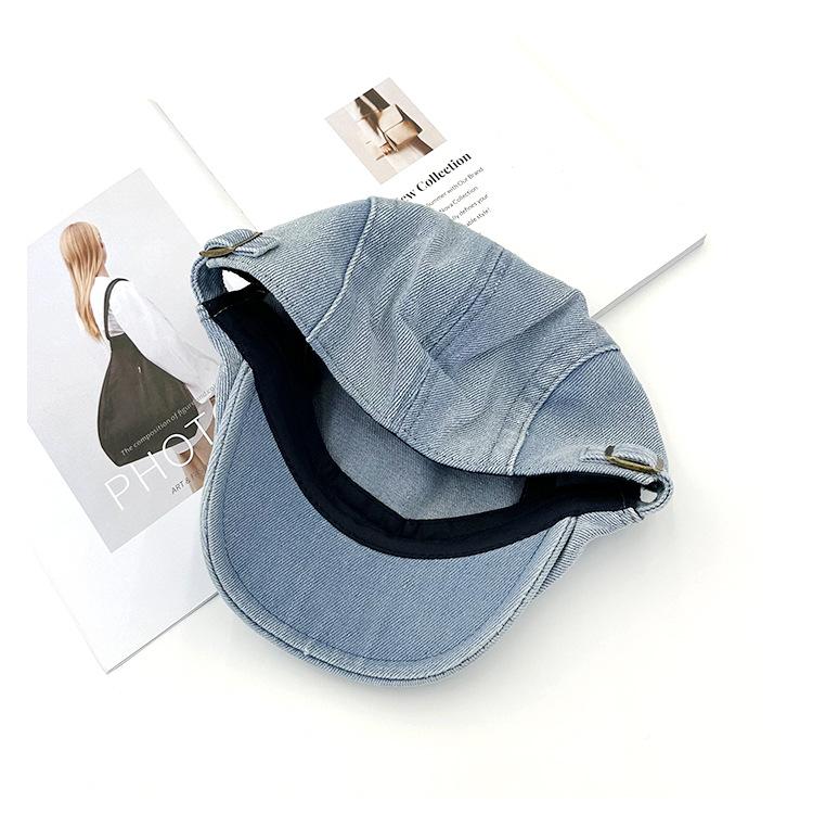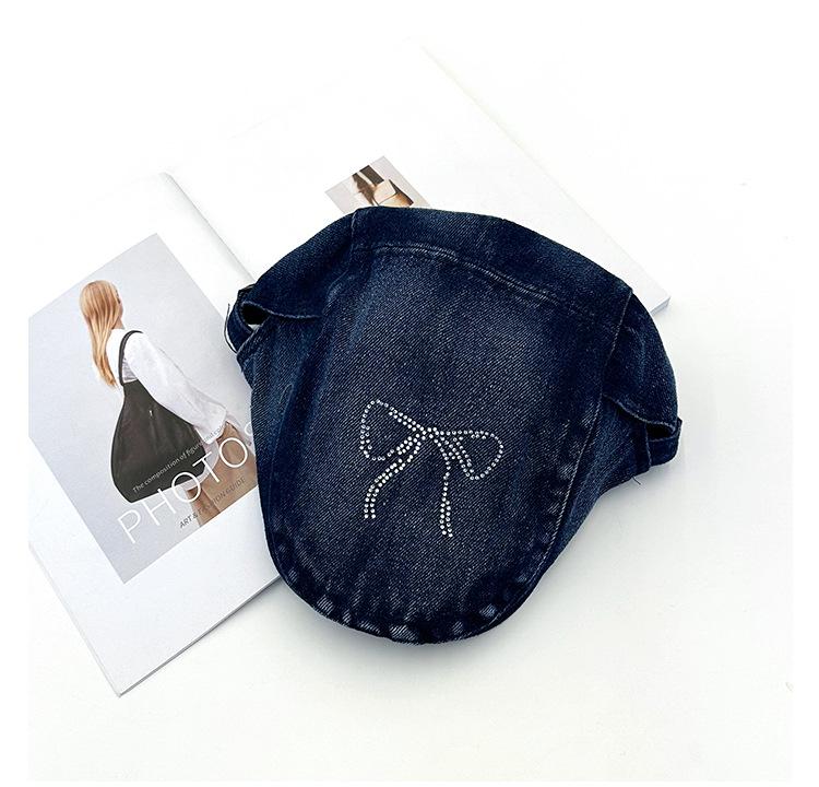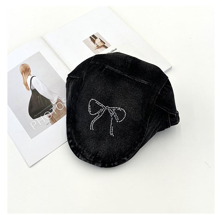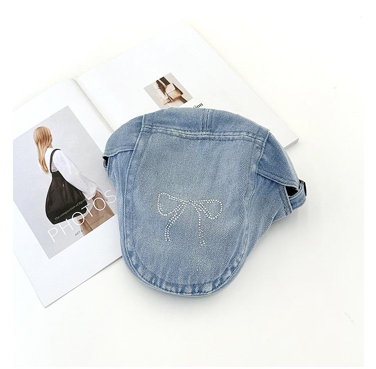 Sombrero de mezclilla con lazo de diamante brillante retro japonés para mujer primavera y verano dulce genial casual versátil cara pequeña sombrero de pintor