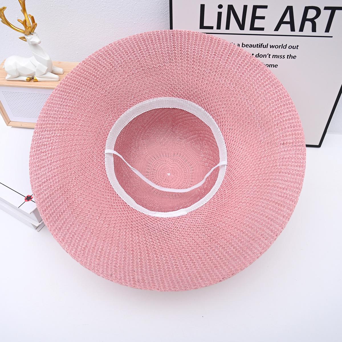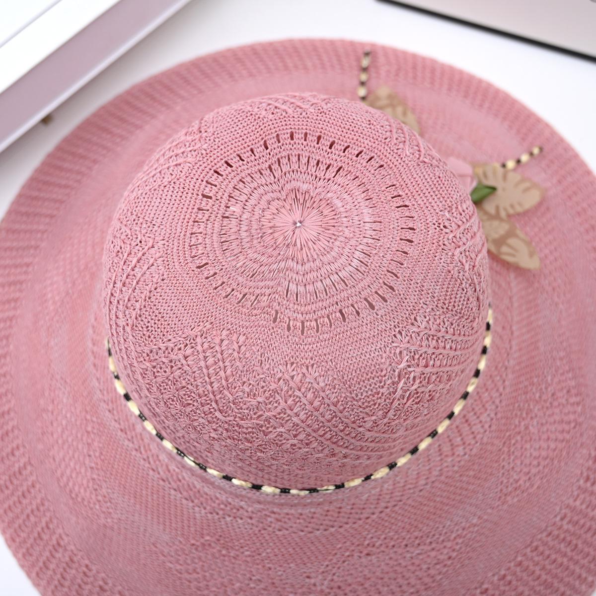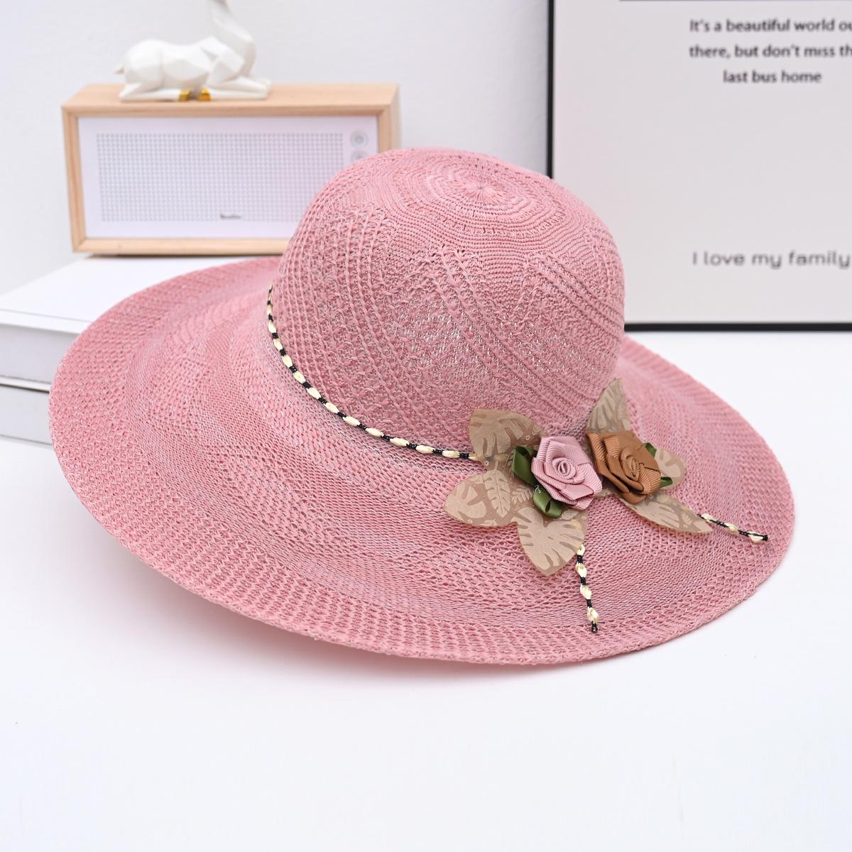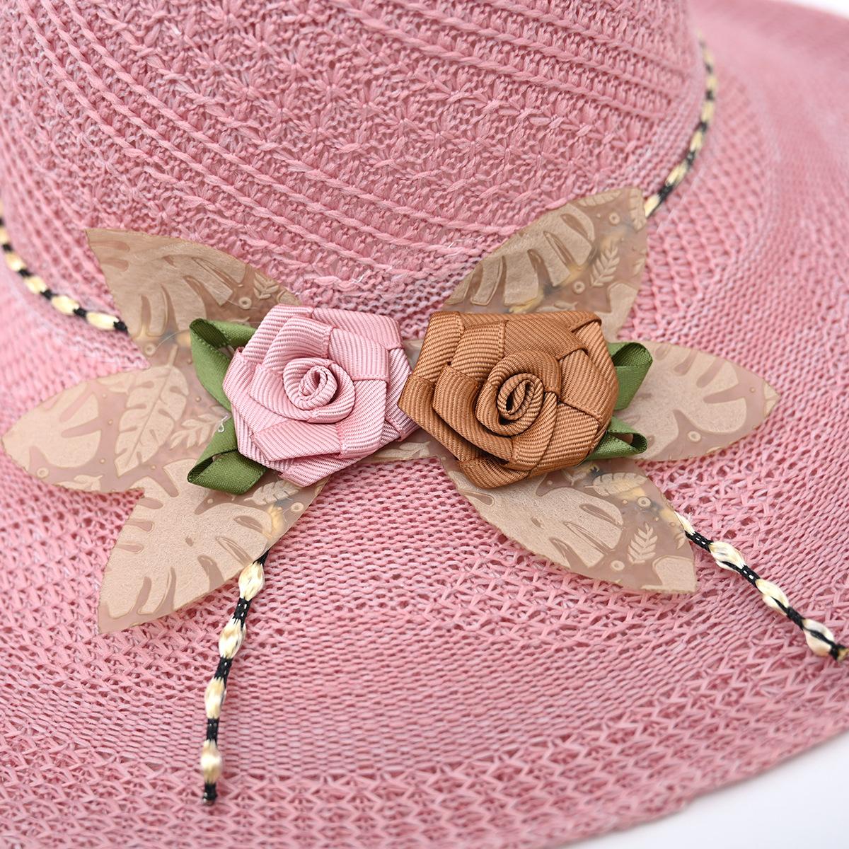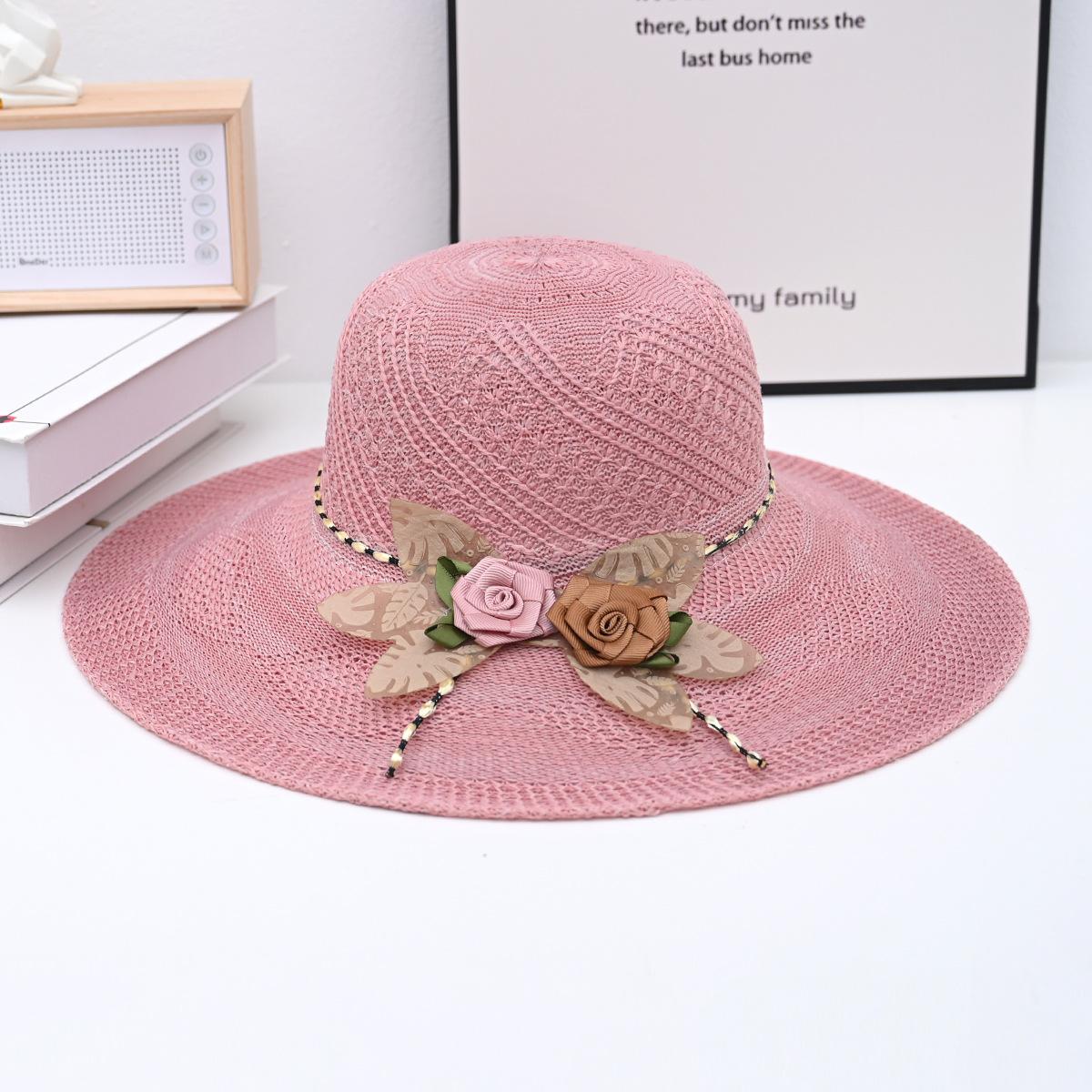 Two-color big flower big brim straw hat pink