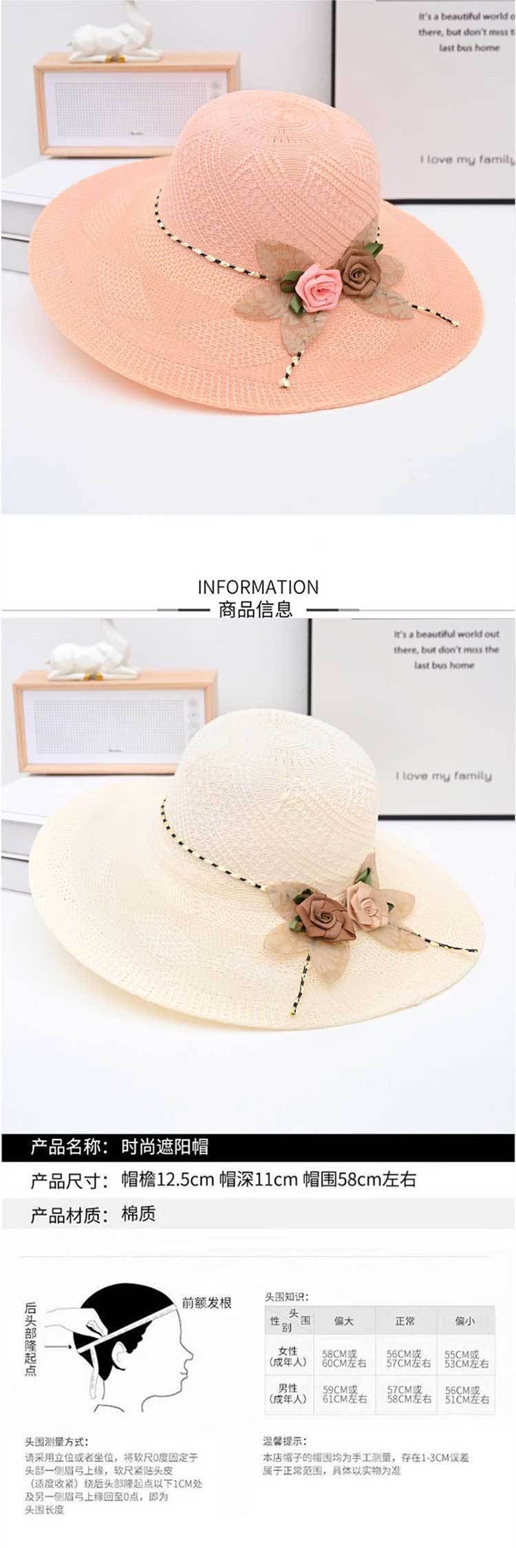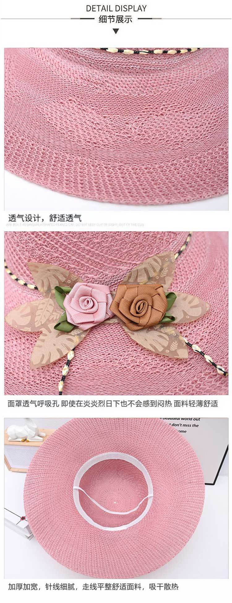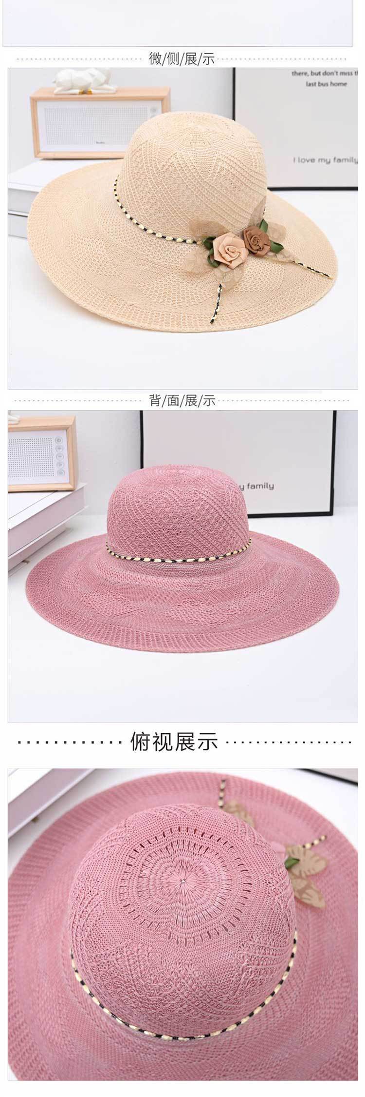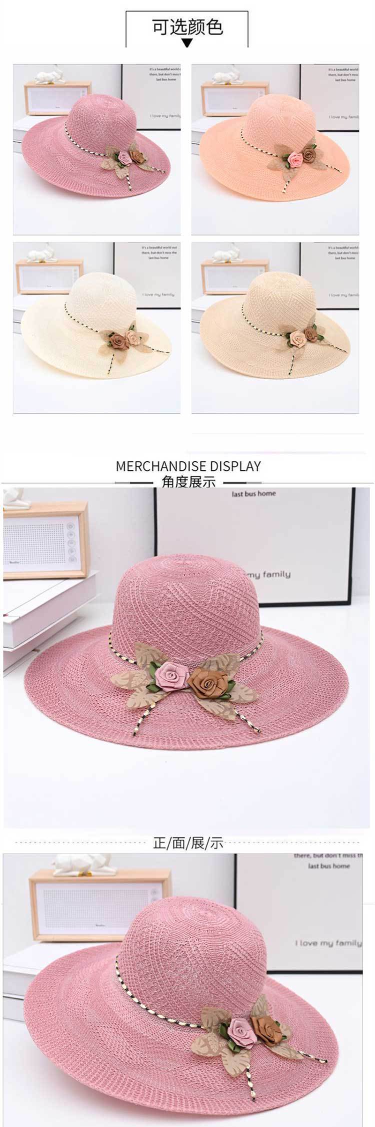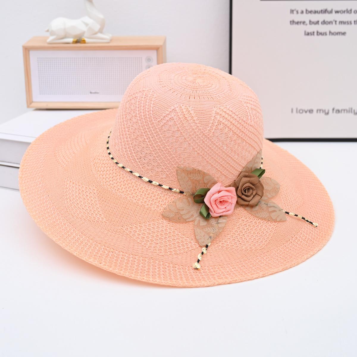 Two-color big flower big brim straw hat pink